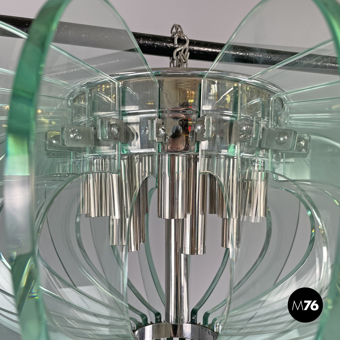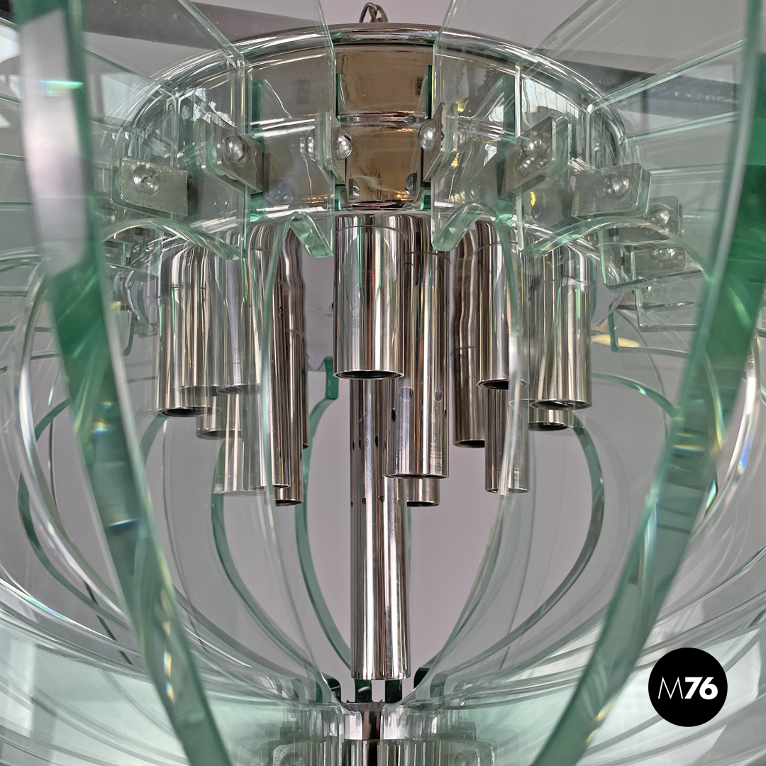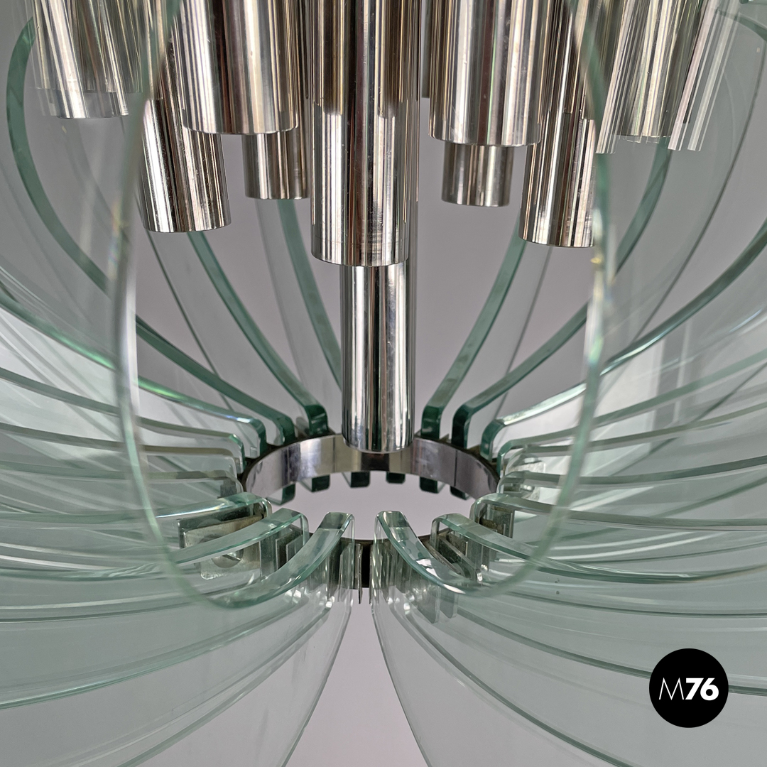 Lampadario in vetro e metallo cromato, 1970 ca.