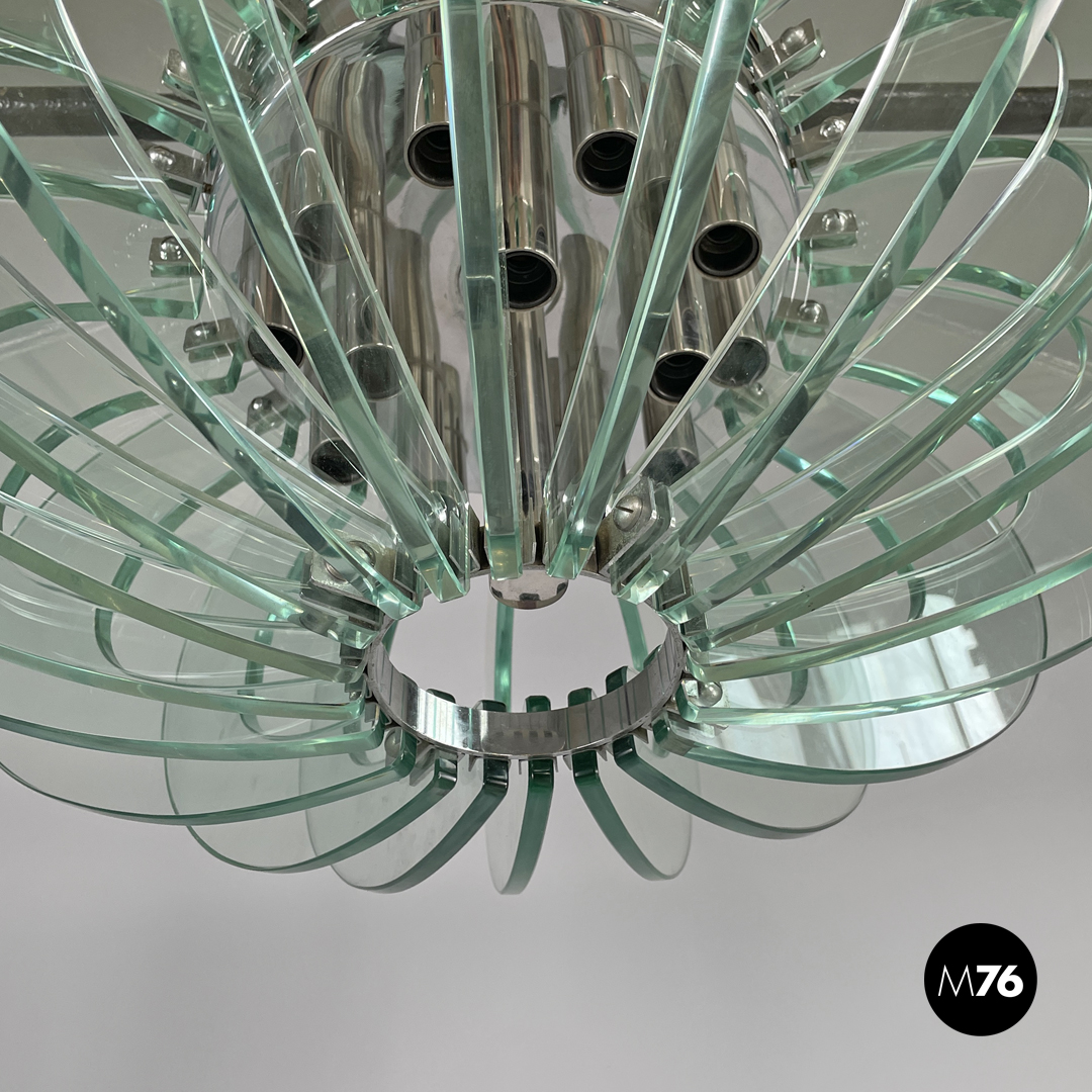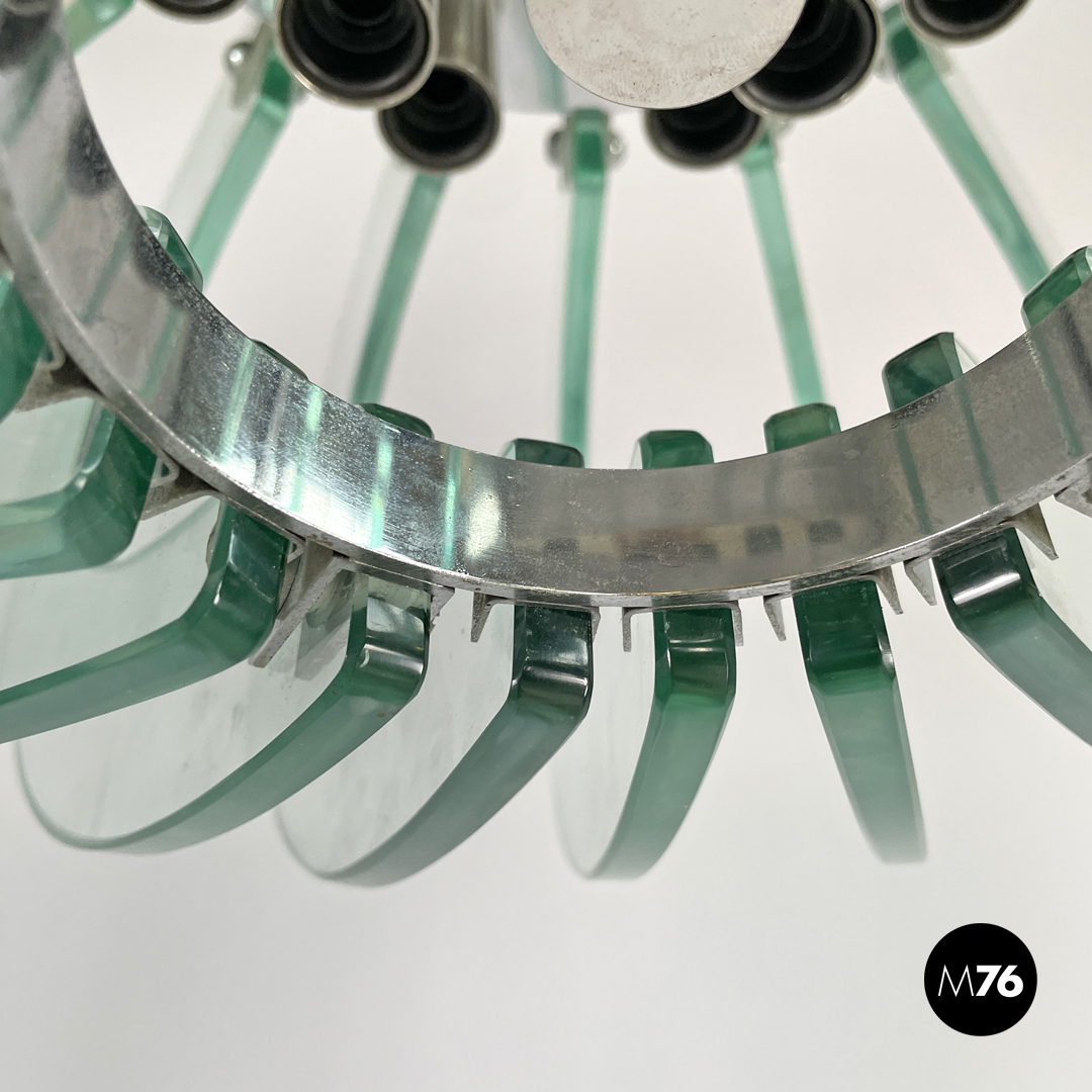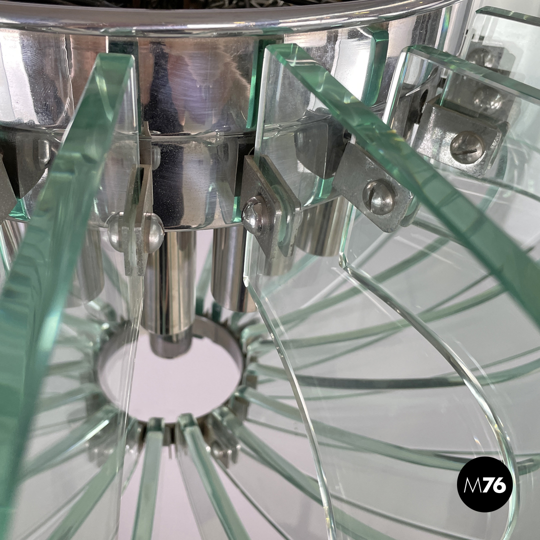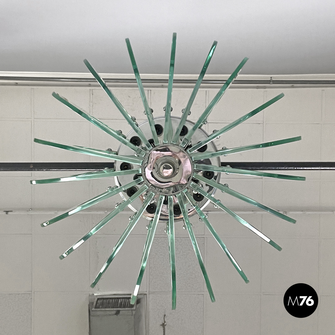 Lampadario in vetro e metallo cromato, 1970 ca.