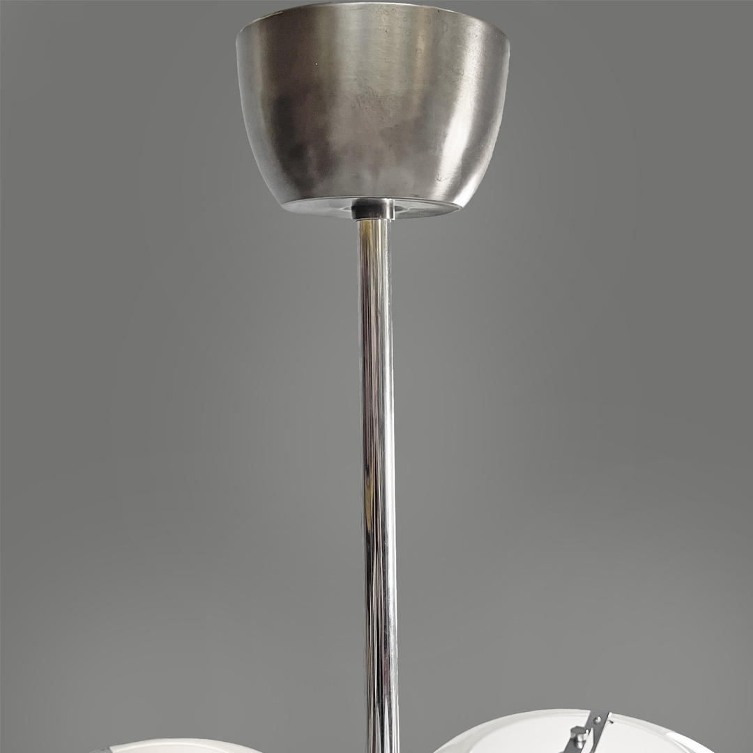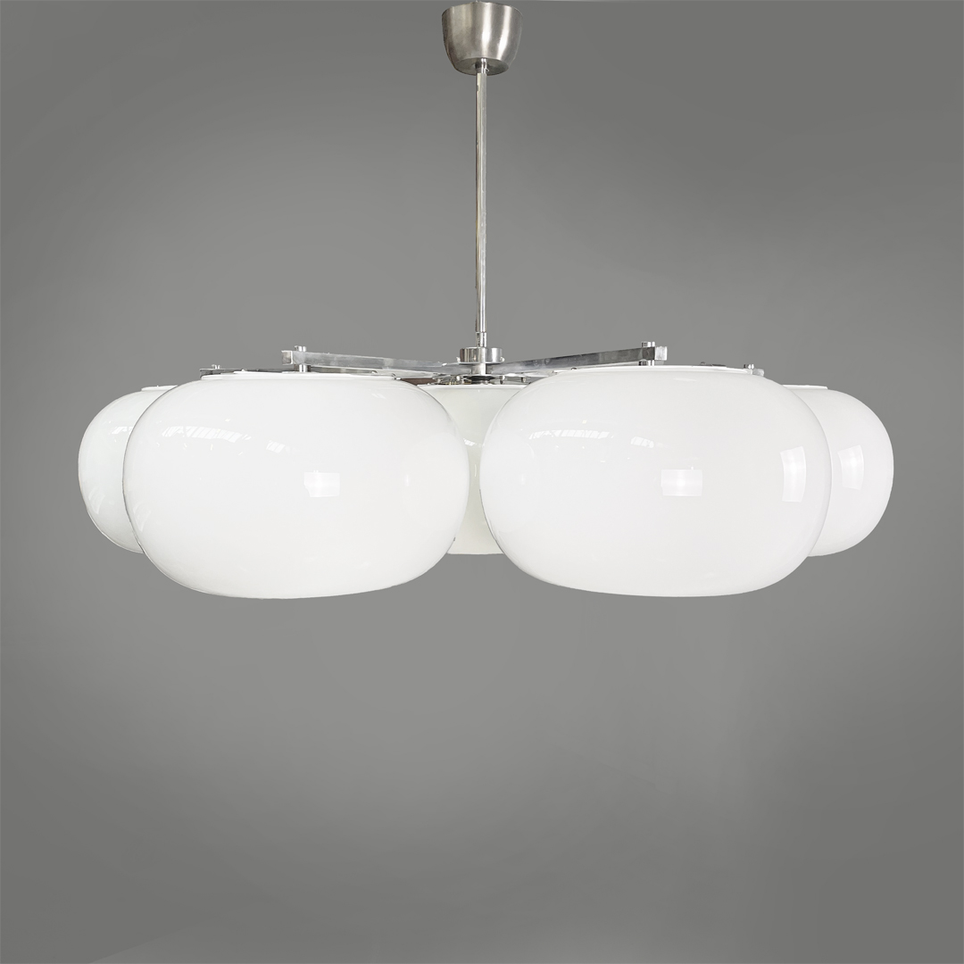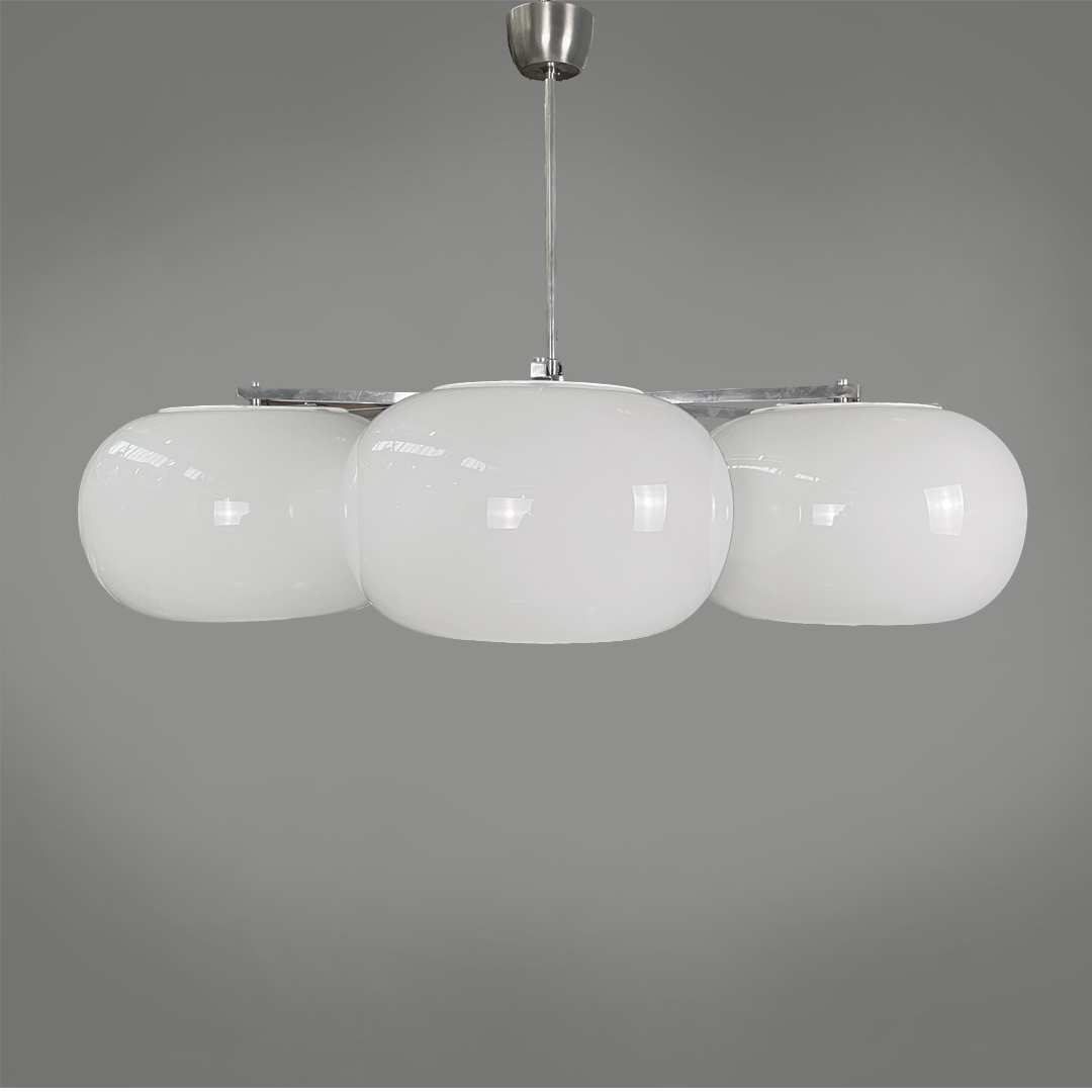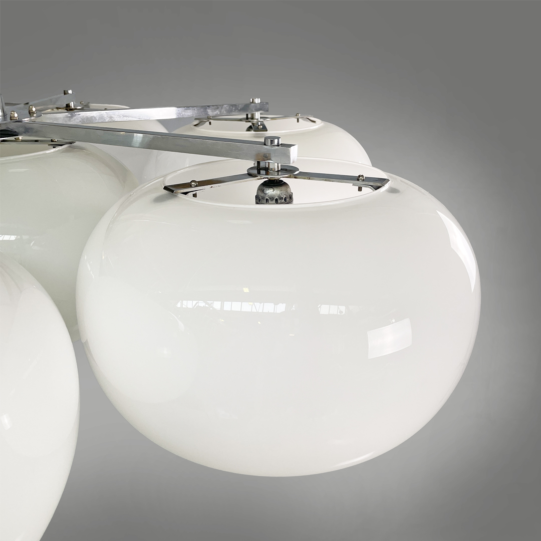 Lampadario in vetro opalino e metallo, 1970 ca.
