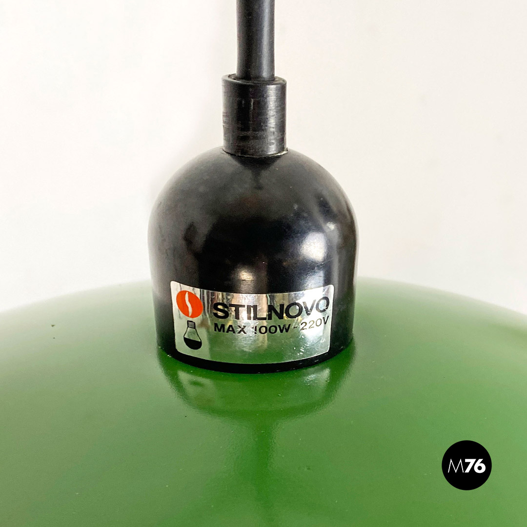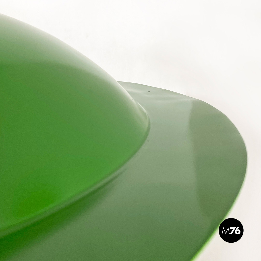 Lampadario modello Lampiatta tondo con struttura in metallo verde all’esterno e verniciato a nuovo in bianco all’interno.