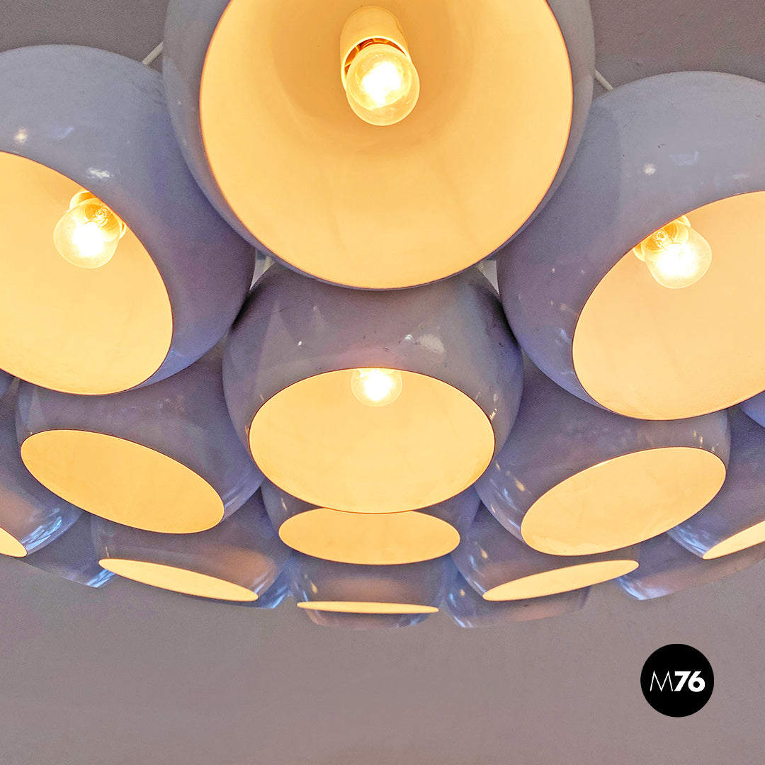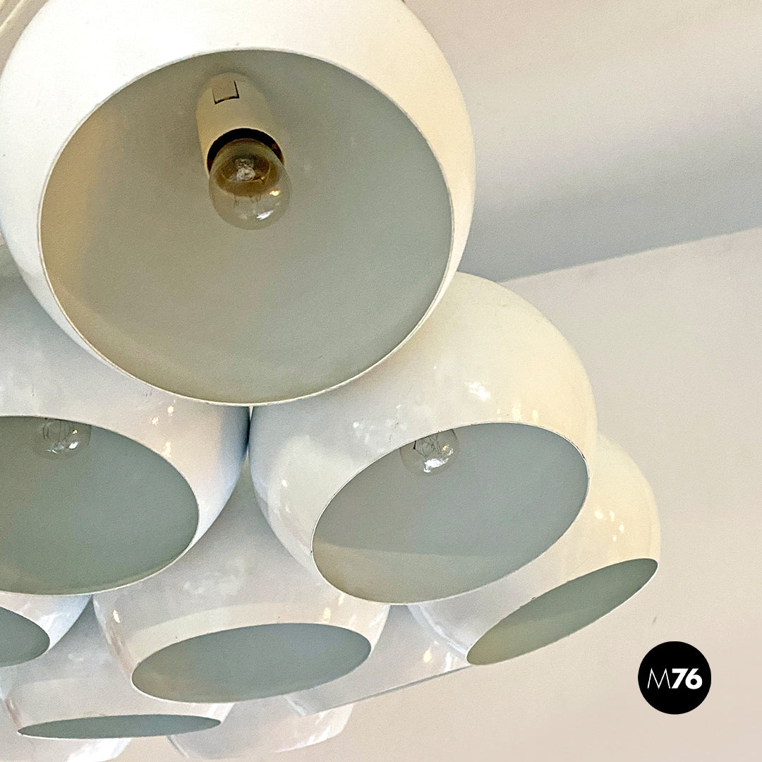Lampadario multiluce in metallo bianco, 1970 ca.