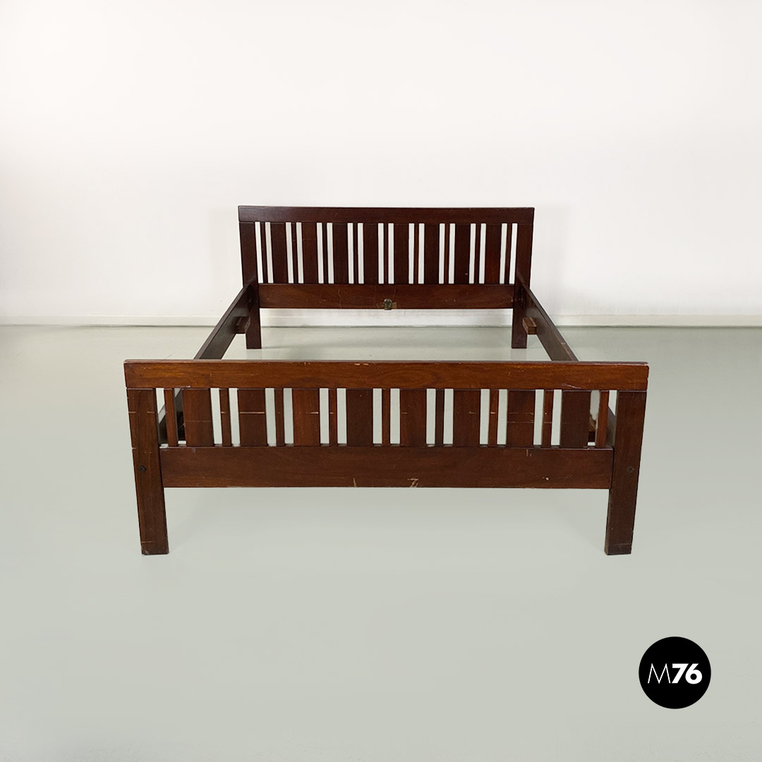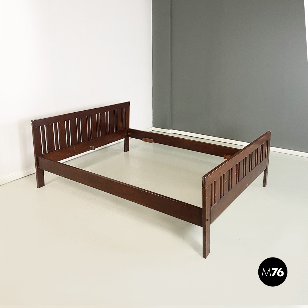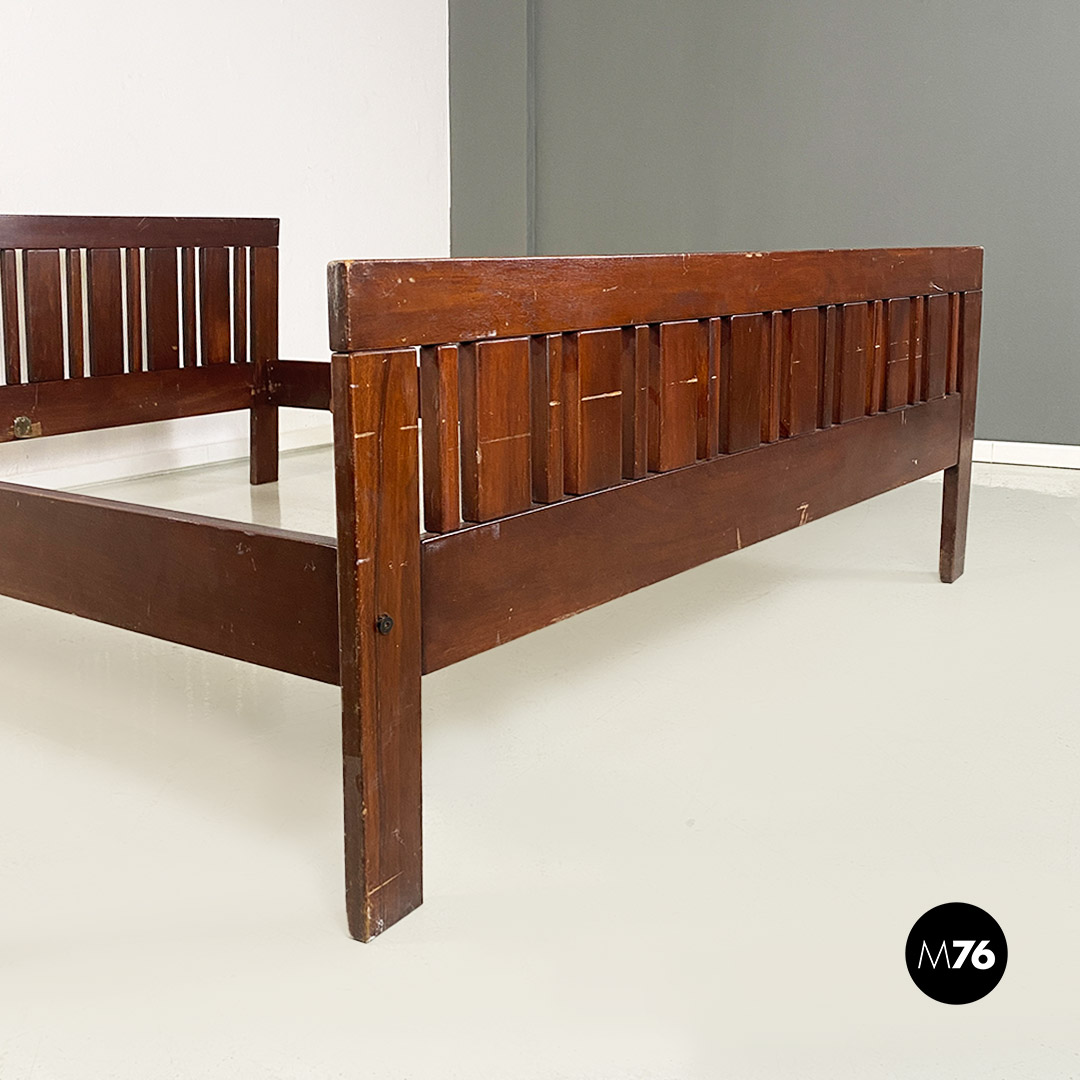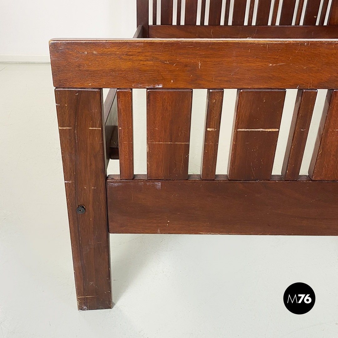 Letto modello Califfo con struttura interamente in legno massello con misura francese o a una piazza e mezzo. Componenti a sezione rettangolare con listelli di varie misure su tutta la testiera e la spalliera.