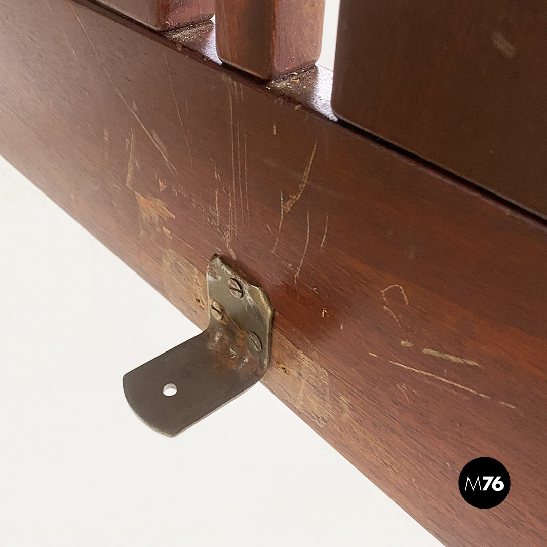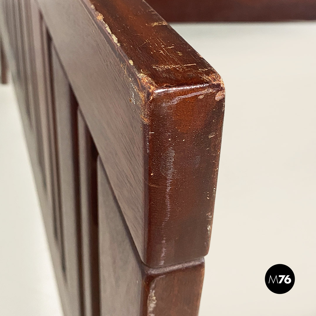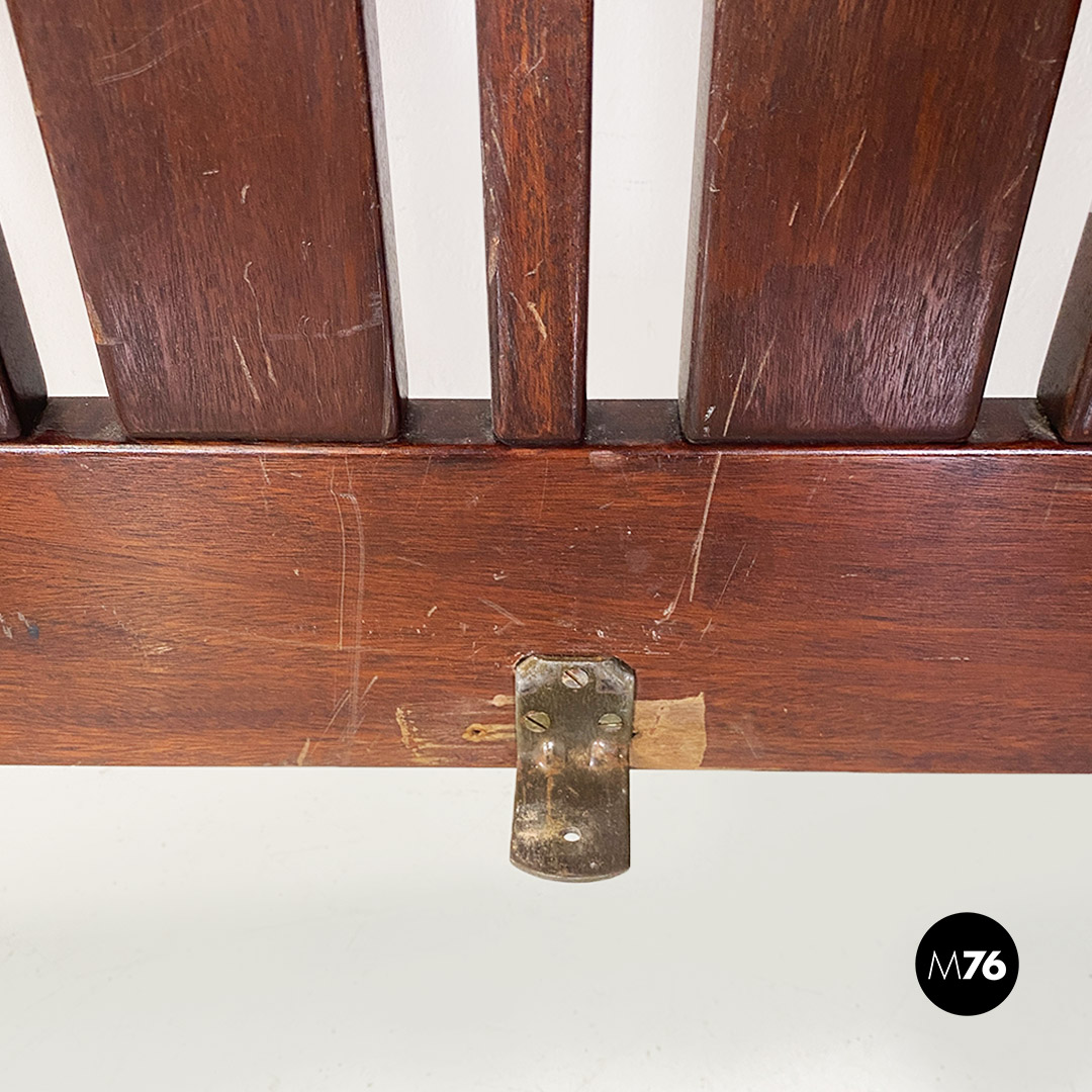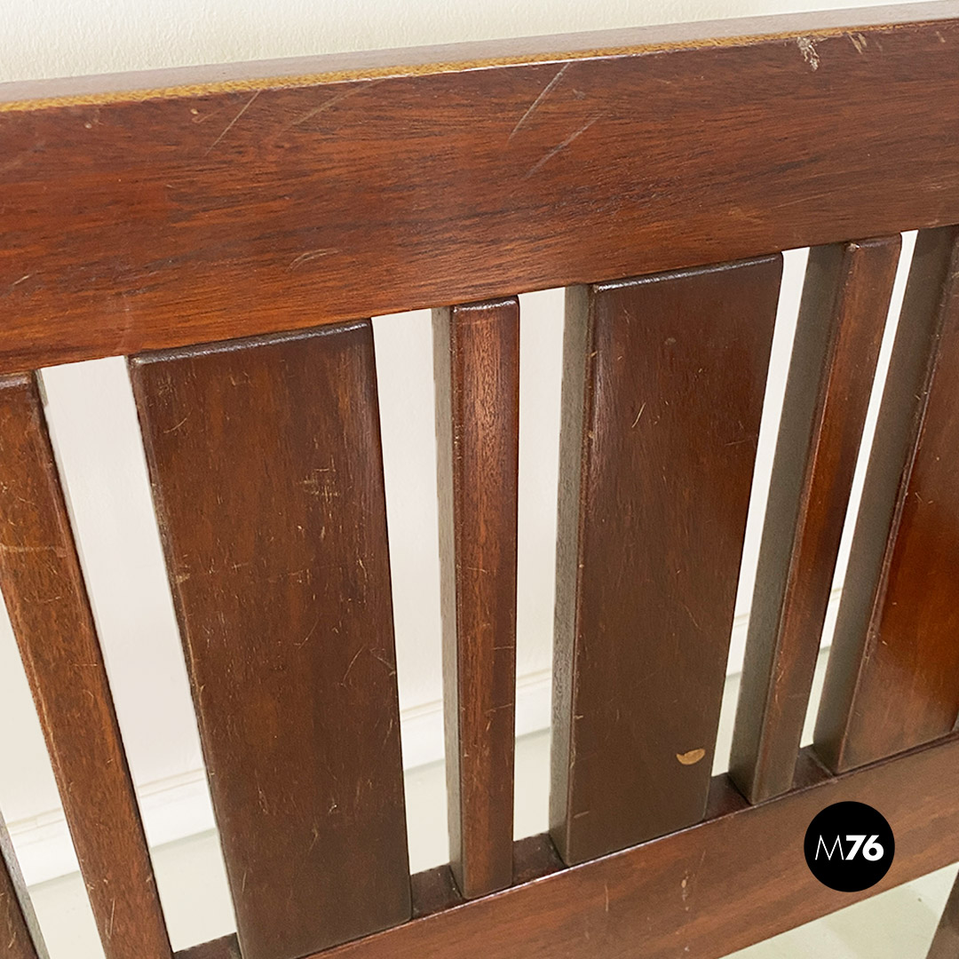Letto modello Califfo con struttura interamente in legno massello con misura francese o a una piazza e mezzo. Componenti a sezione rettangolare con listelli di varie misure su tutta la testiera e la spalliera.