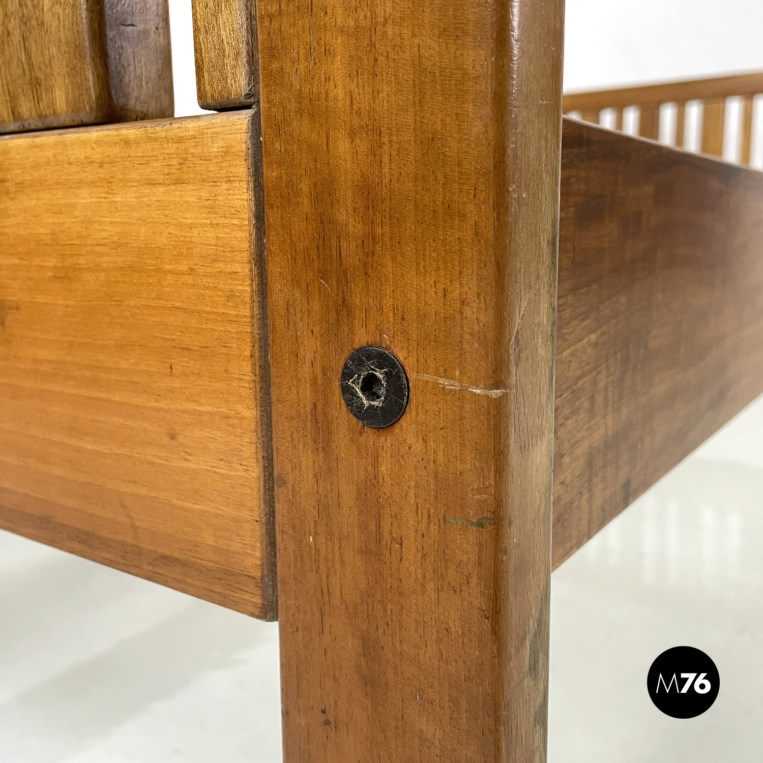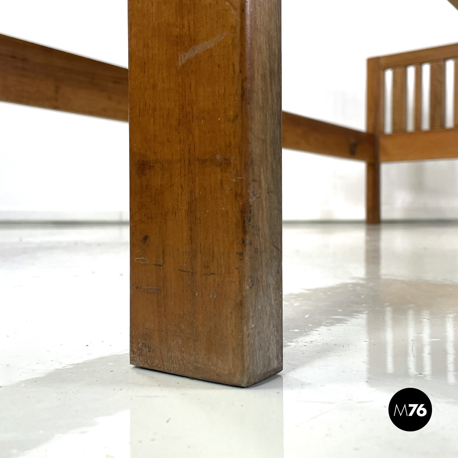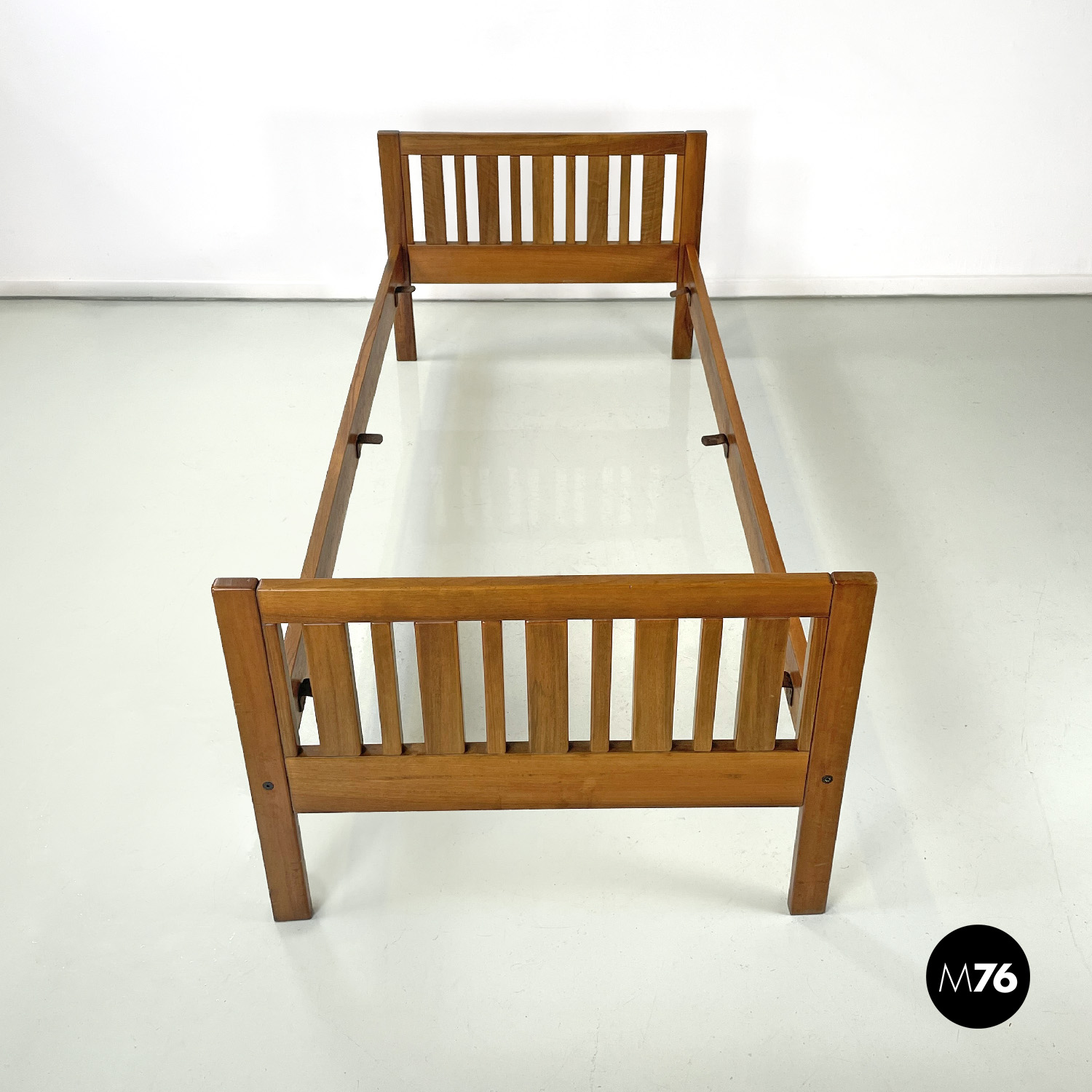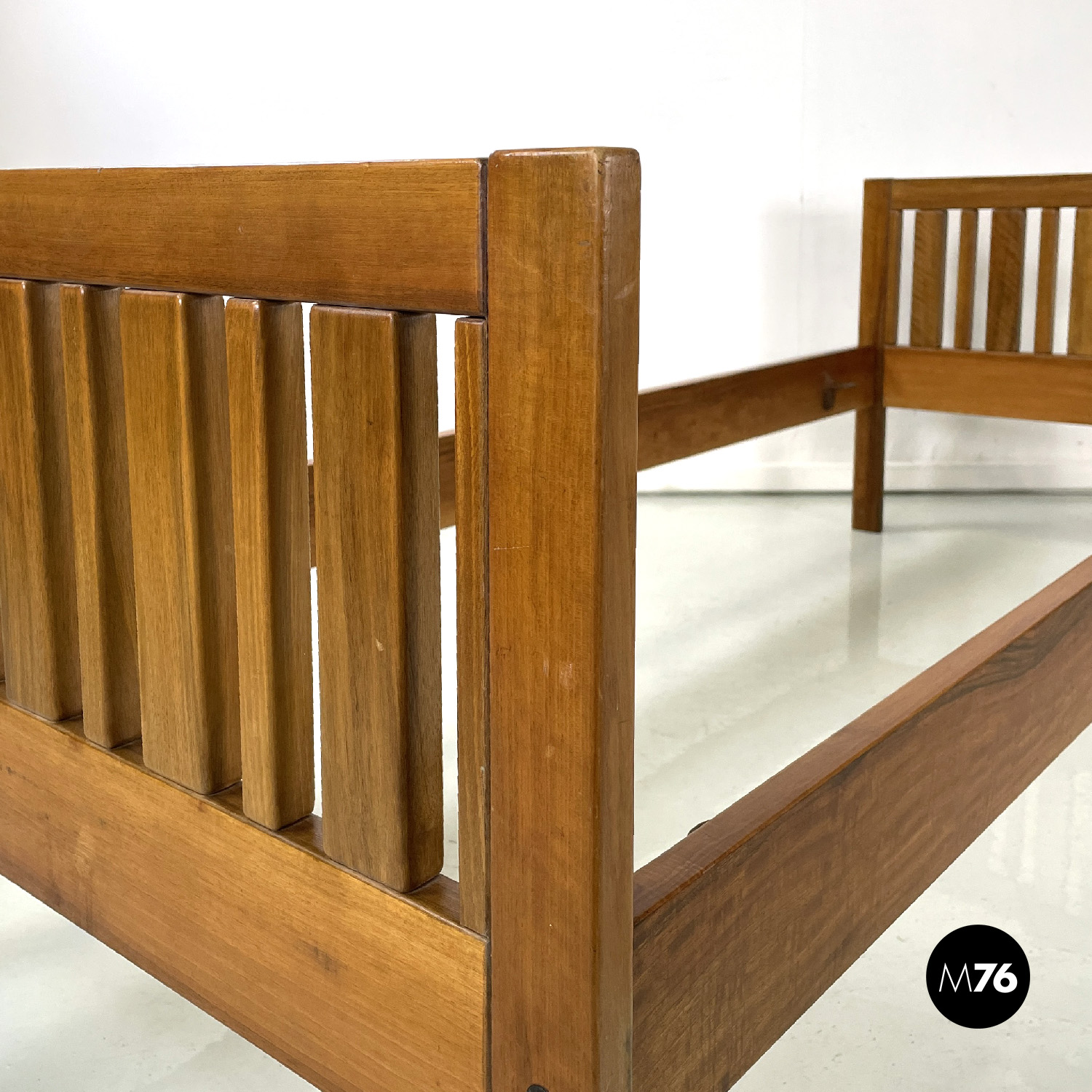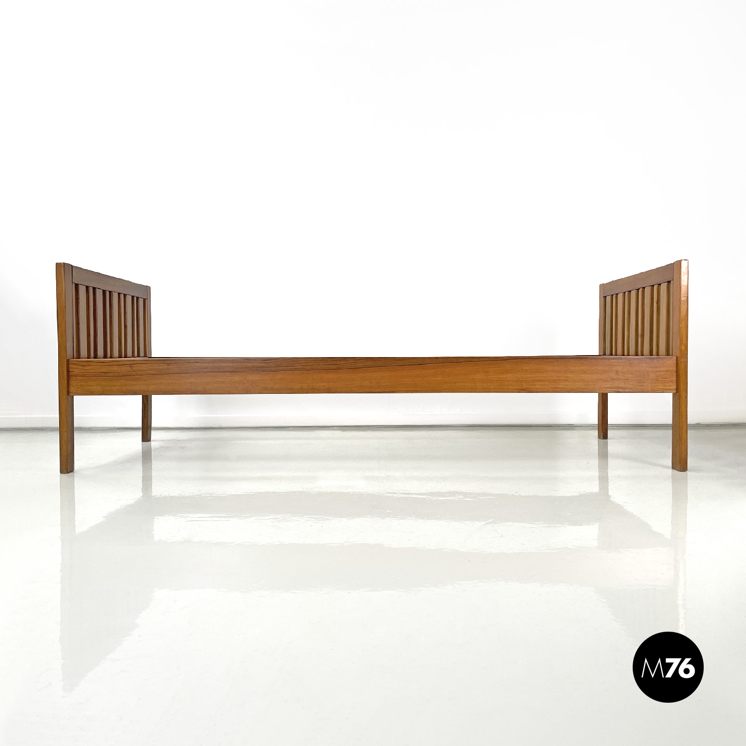 Letto ad una piazza o daybed interamente in legno. Le strutture della testiera e della spalliera sono composte da listelli a sezione rettangolare di varie misure.