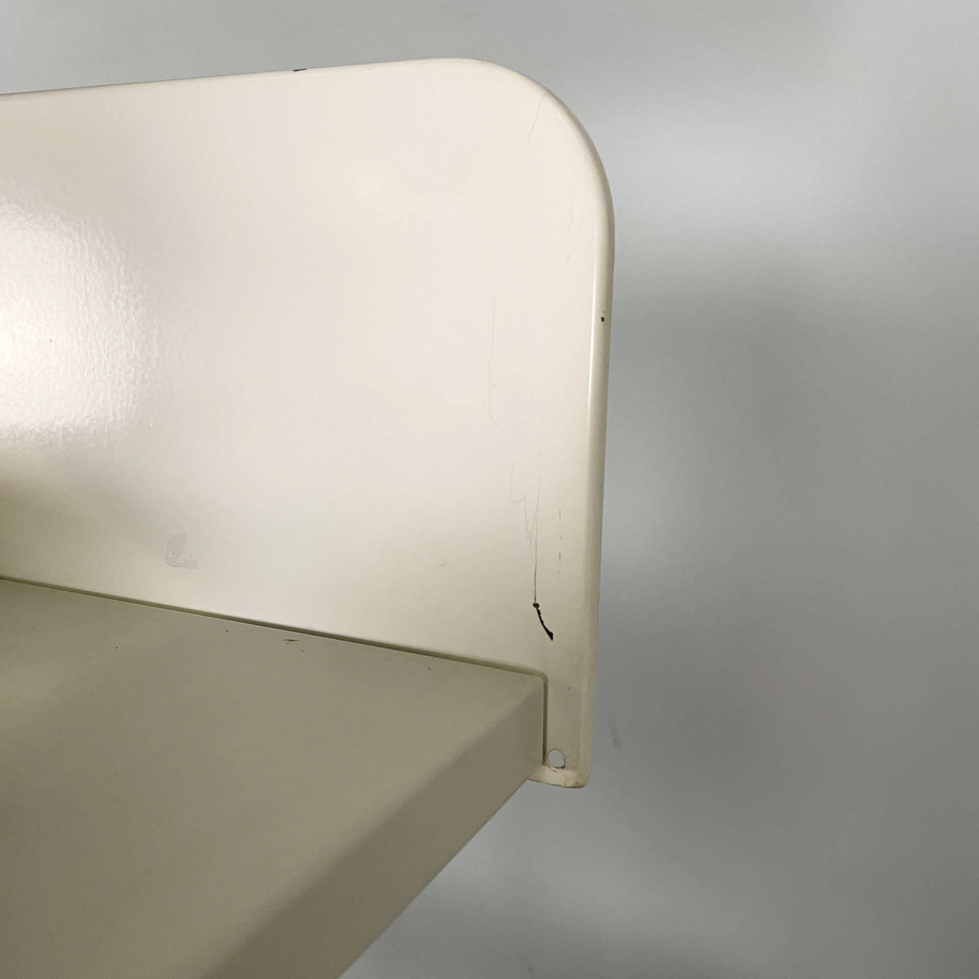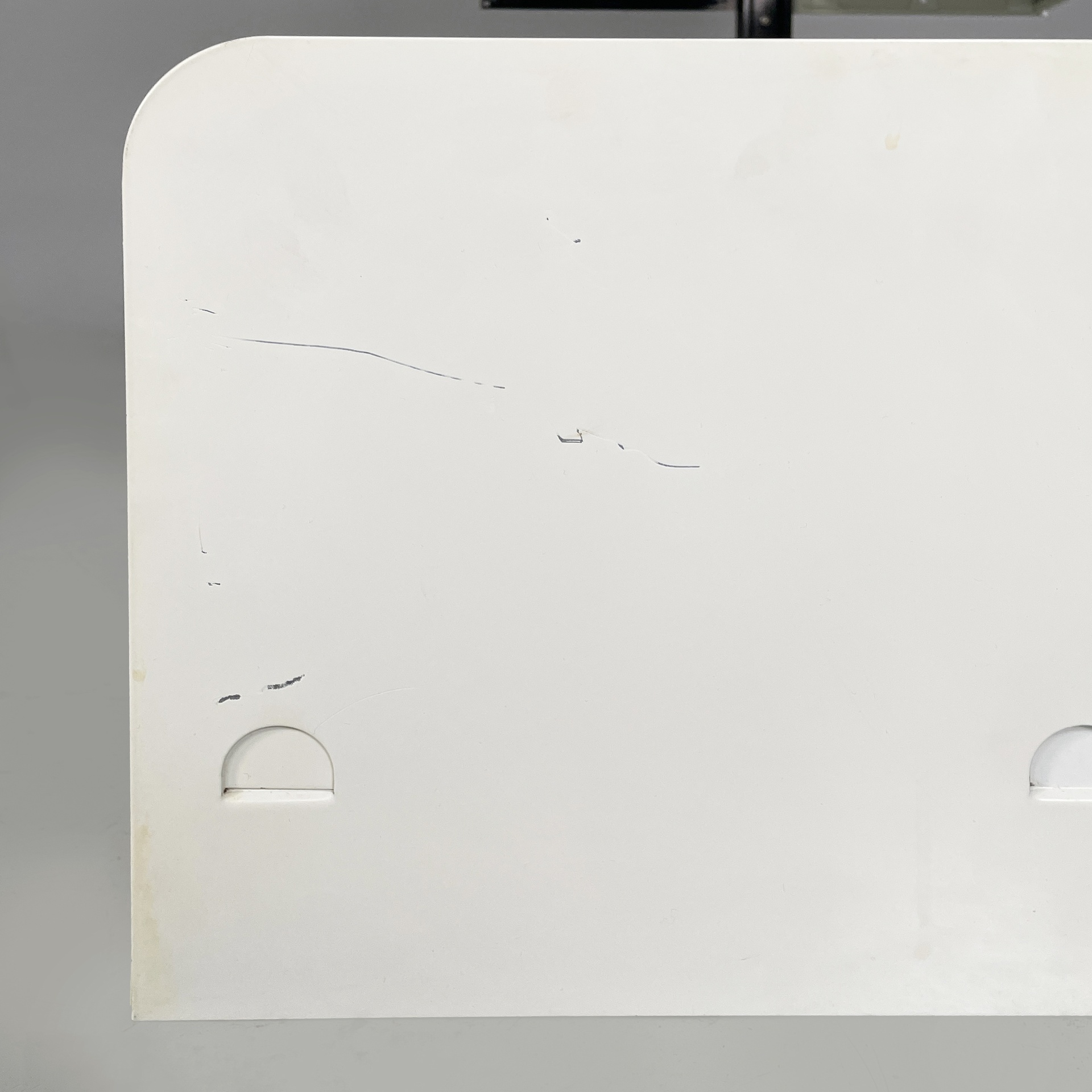 Buone condizioni, presenta diversi graffi sparsi e piccole mancanze di vernici. Il bianco è ingiallito dal tempo in alcuni punti.