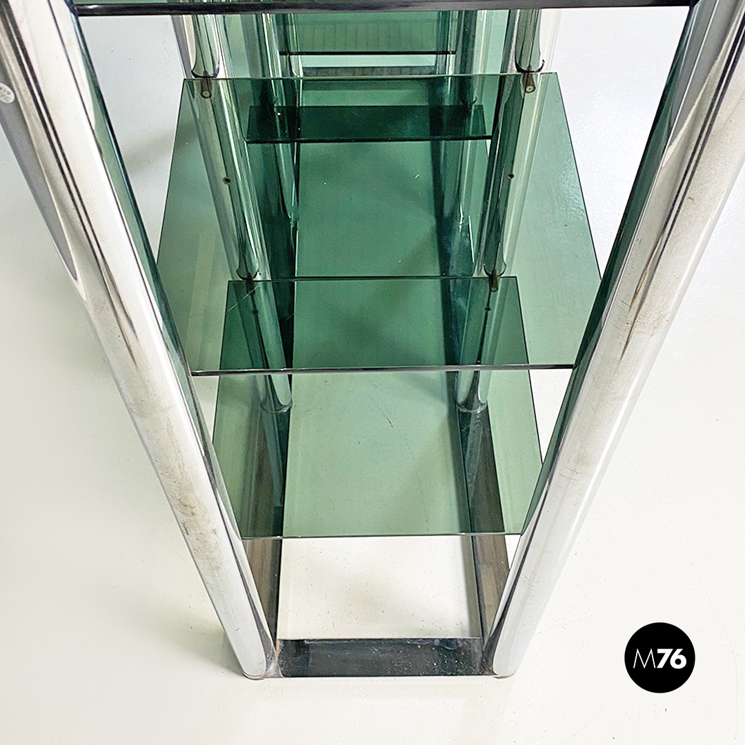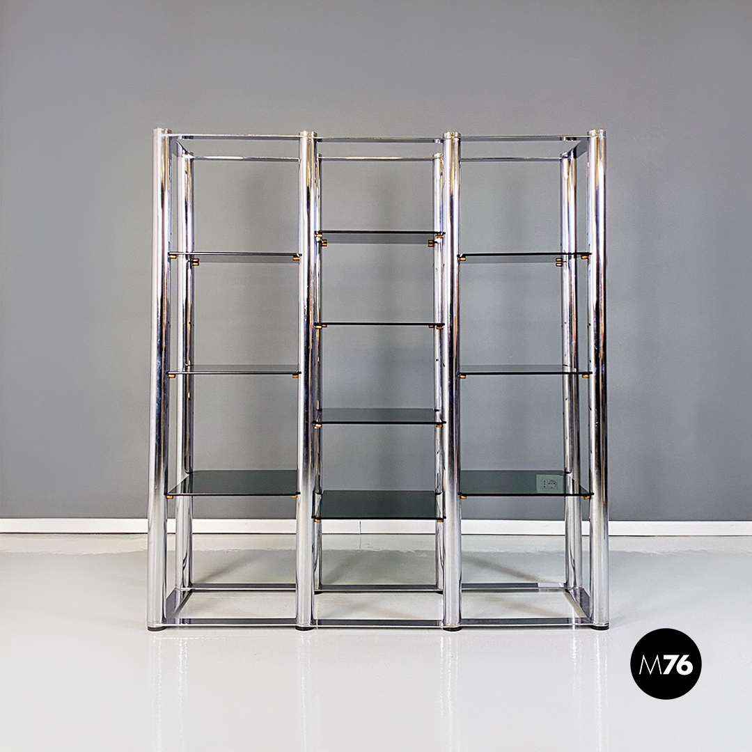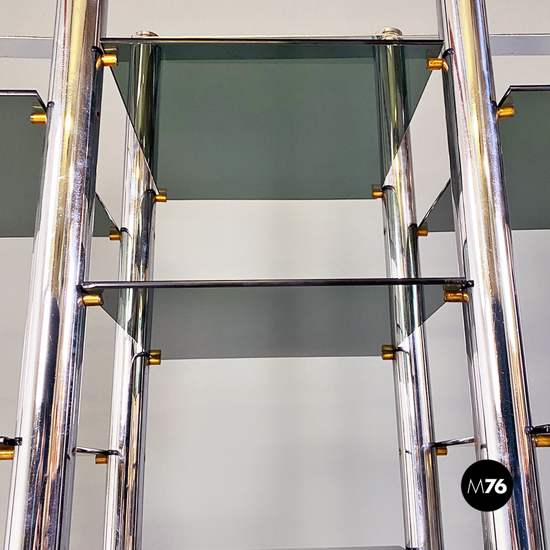 Libreria in acciaio e vetri fumè, 1970 ca.
