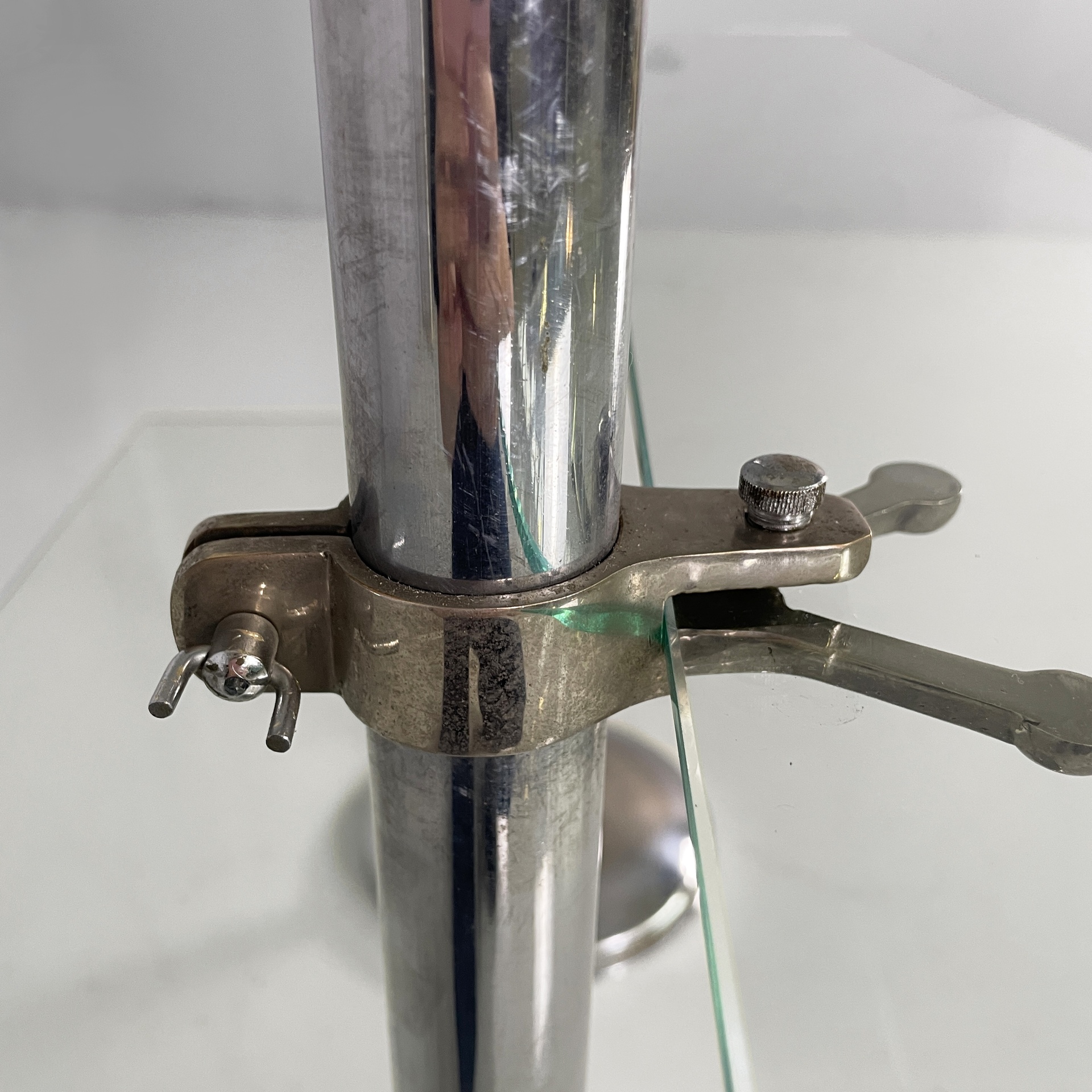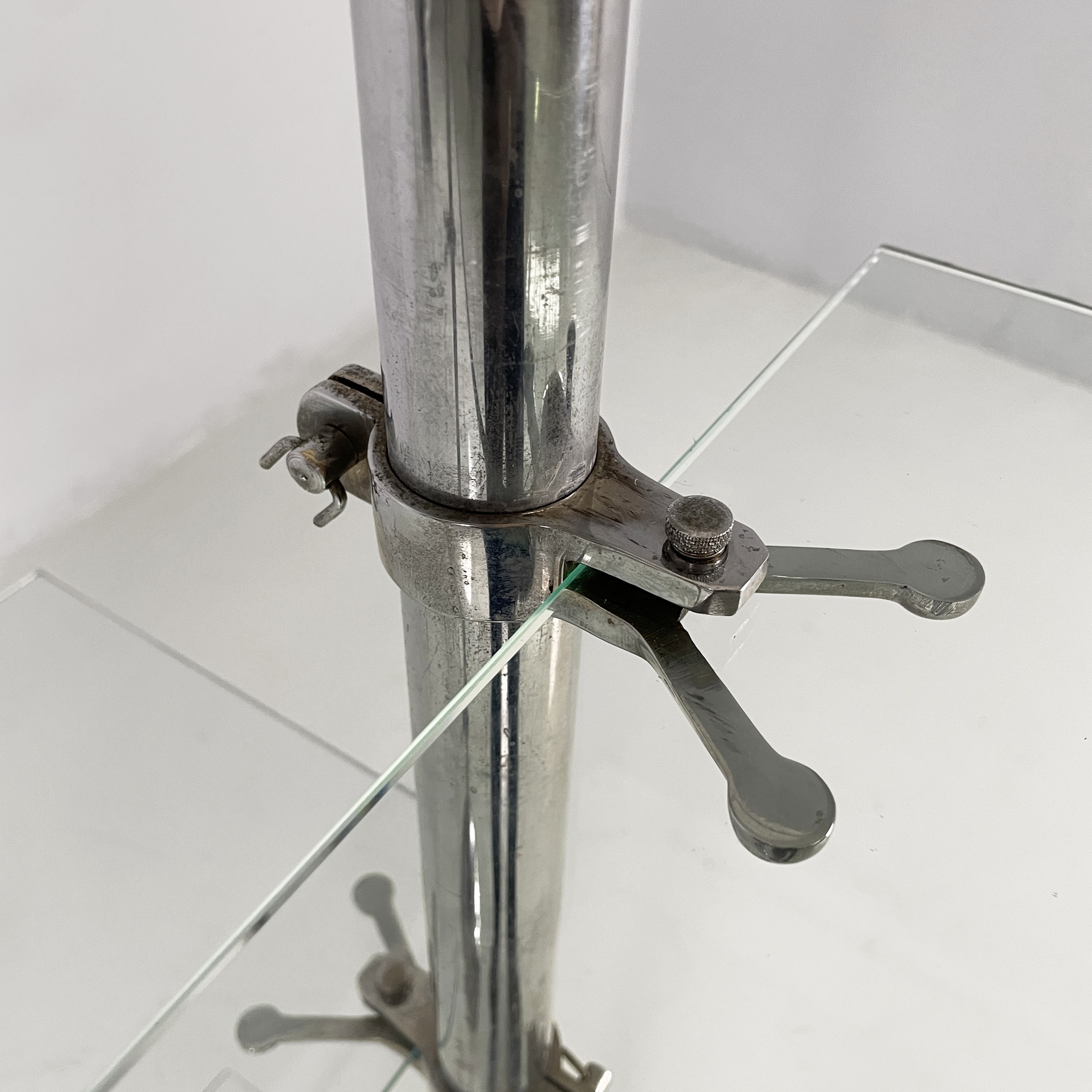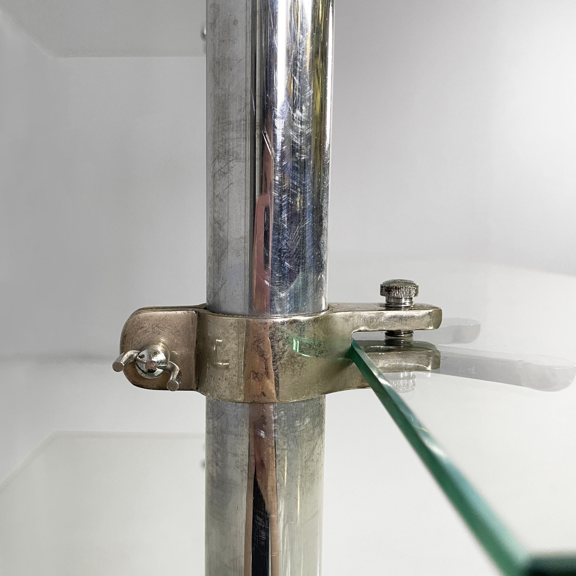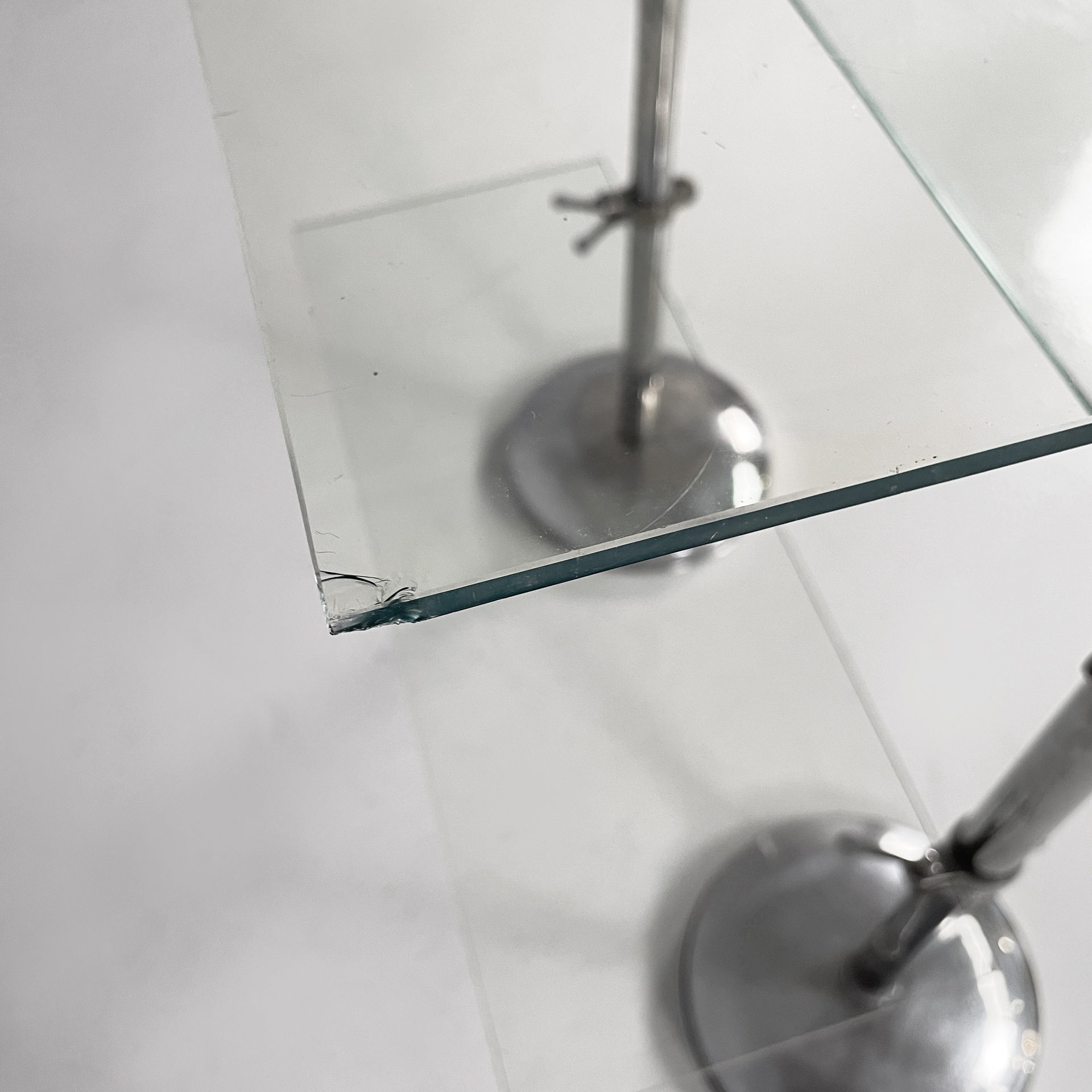 Condizioni discrete. Le mensole in vetro presentano piccole mancanze sul profilo. Segni del tempo sul metallo.