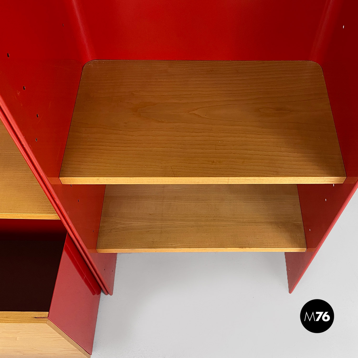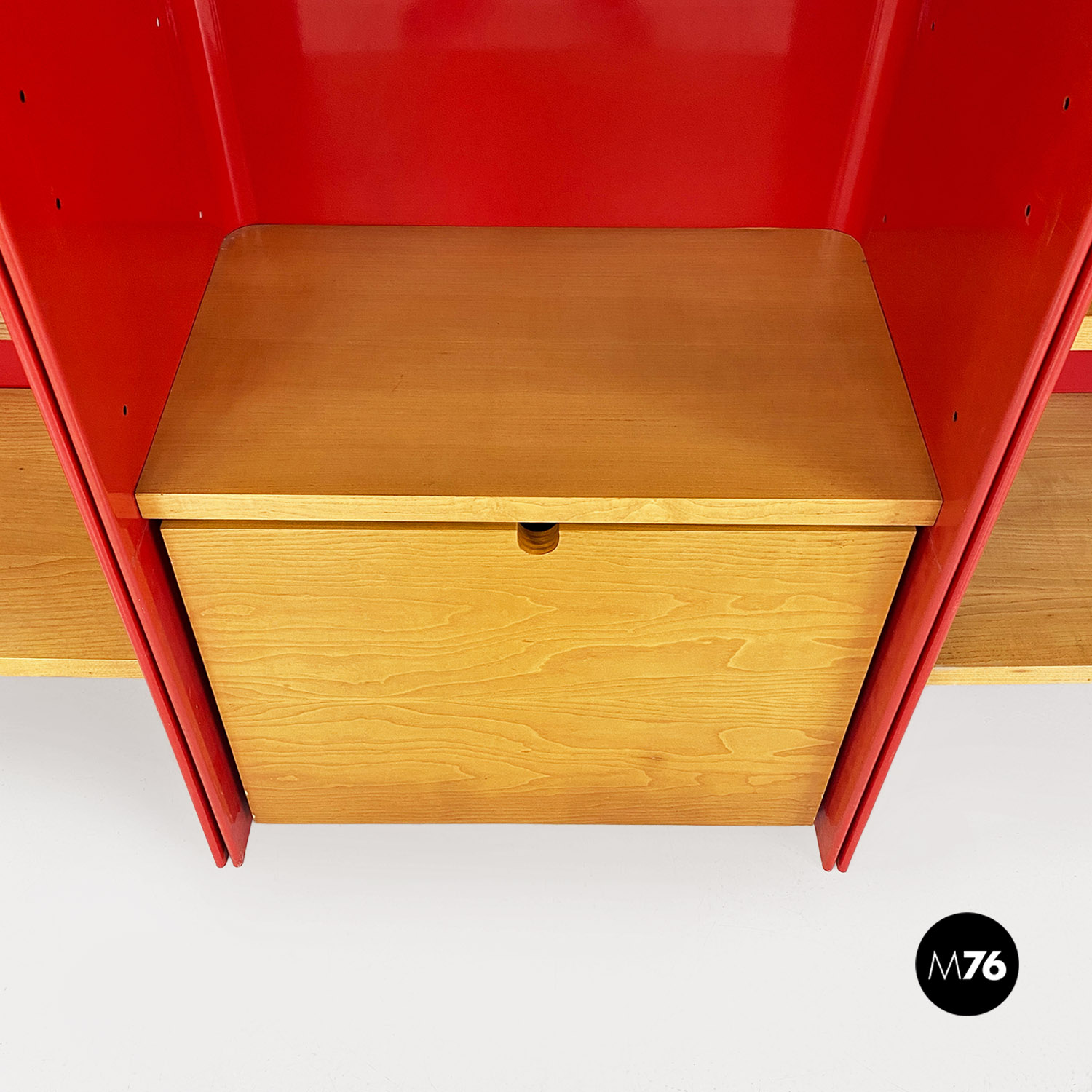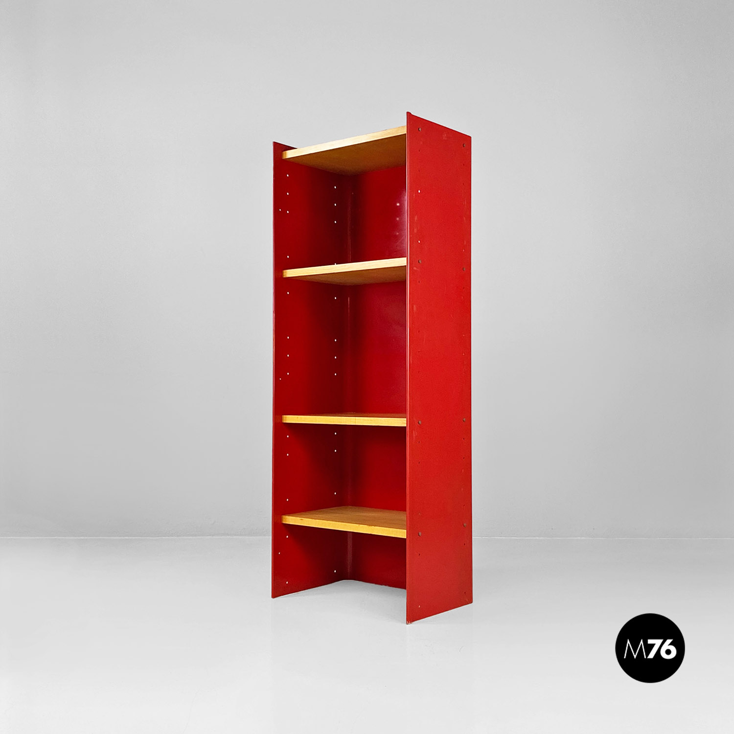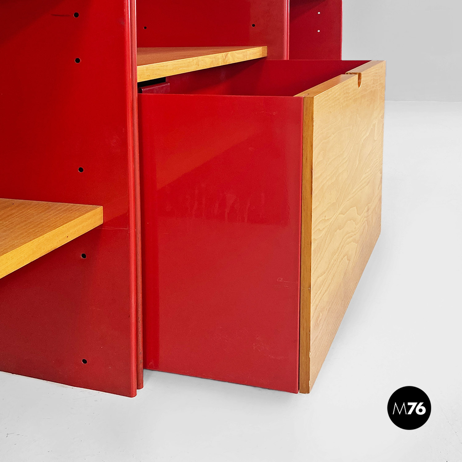 Libreria in metallo rosso e legno di Arflex, 1970 ca.