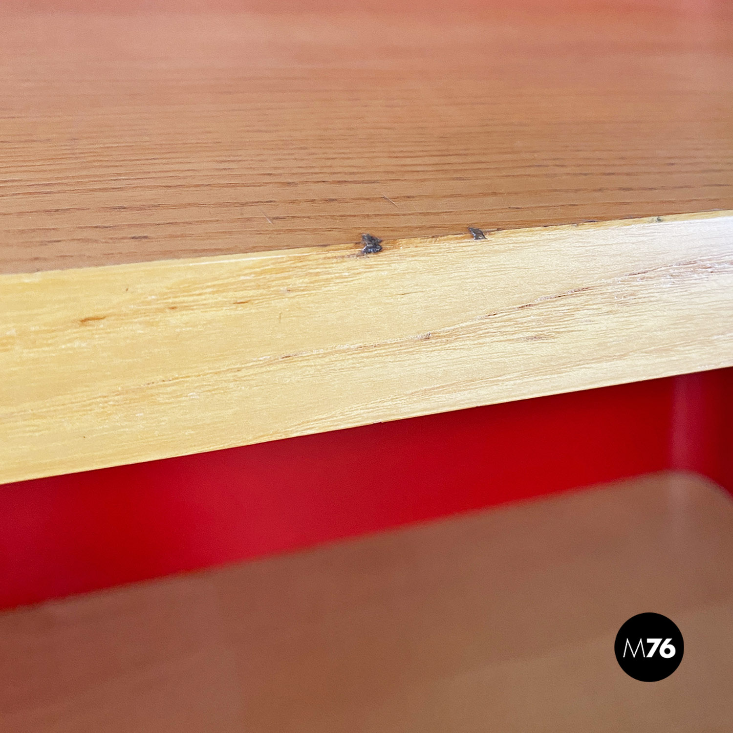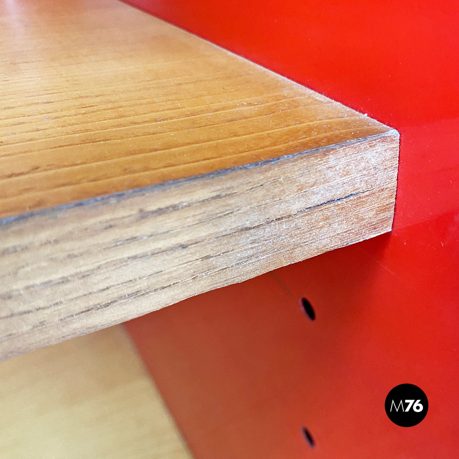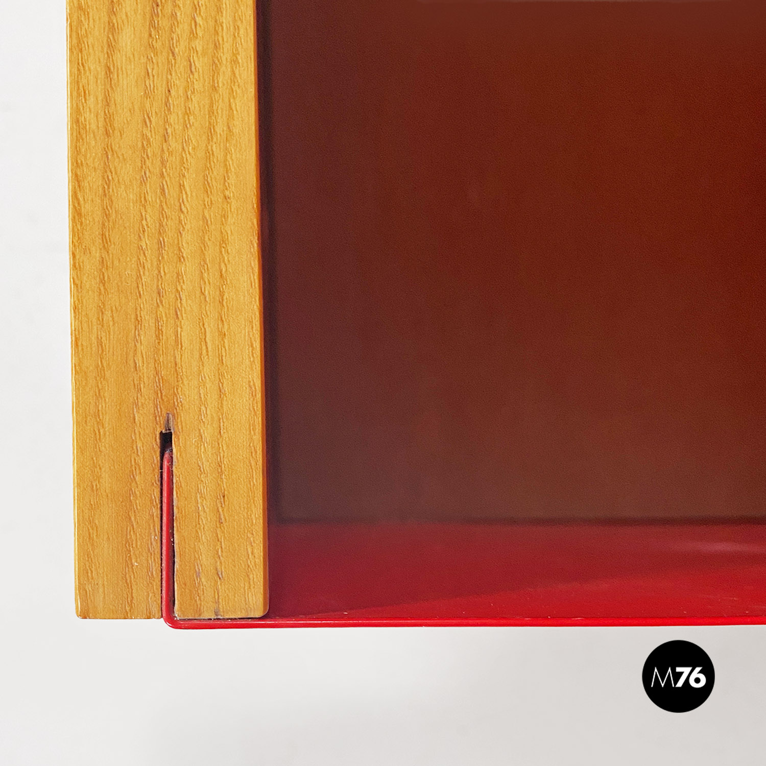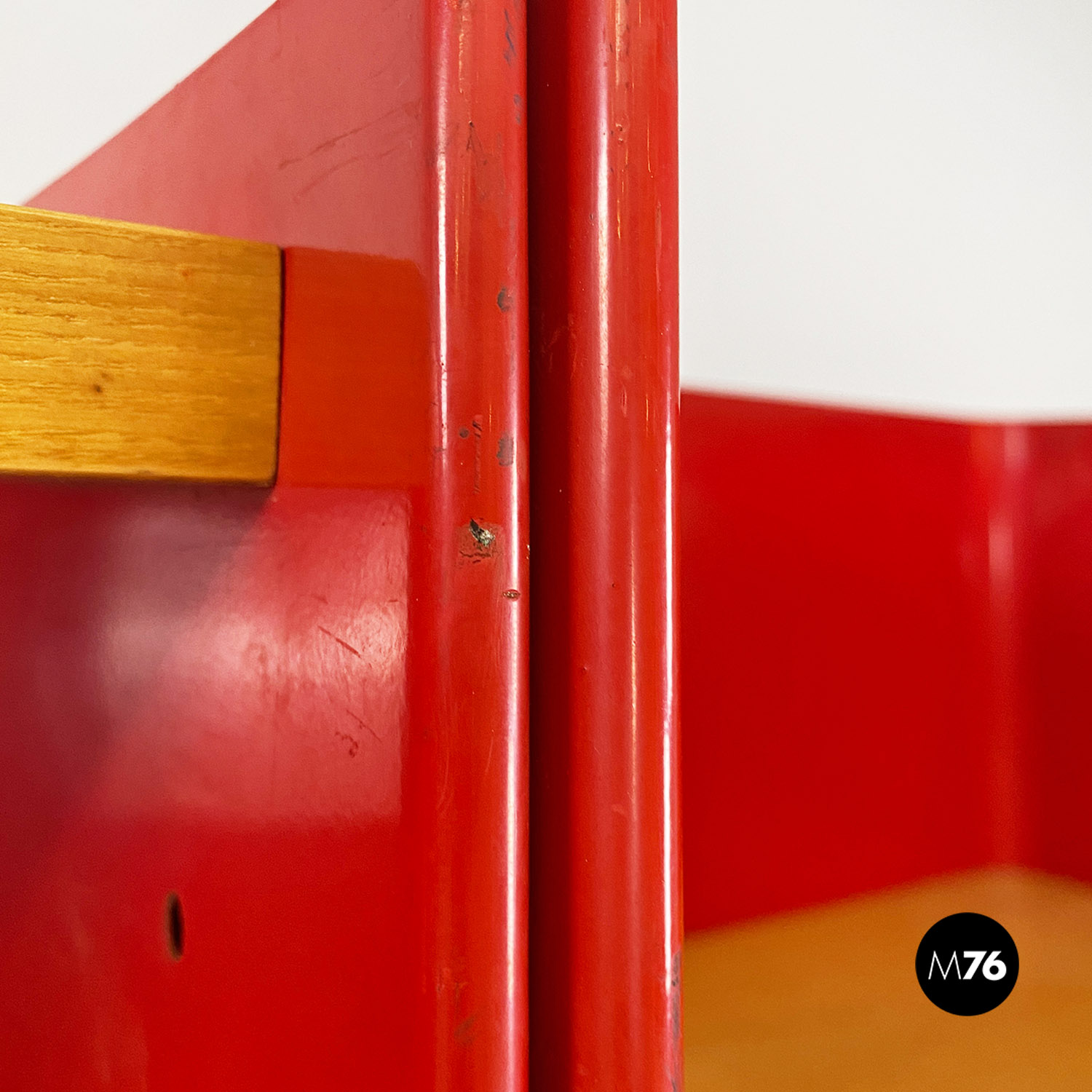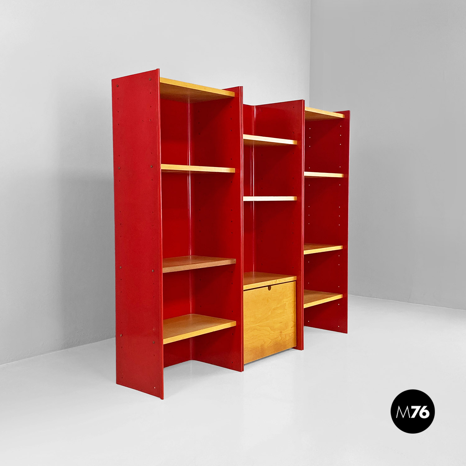 Libreria in metallo rosso e legno di Arflex, 1970 ca.