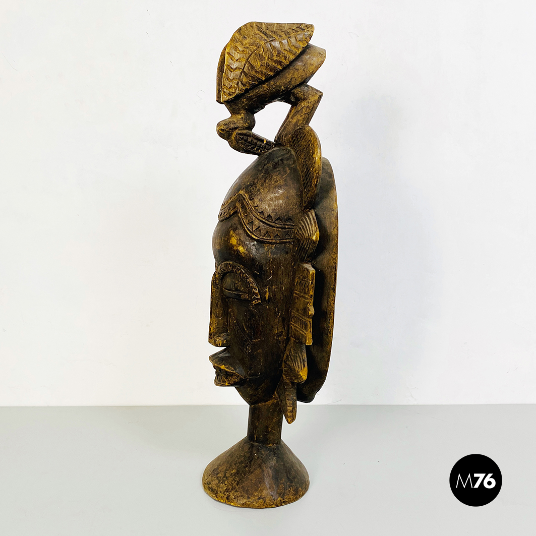 Maschera etnica raffigurante un volto, realizzata su legno intagliato a mano.