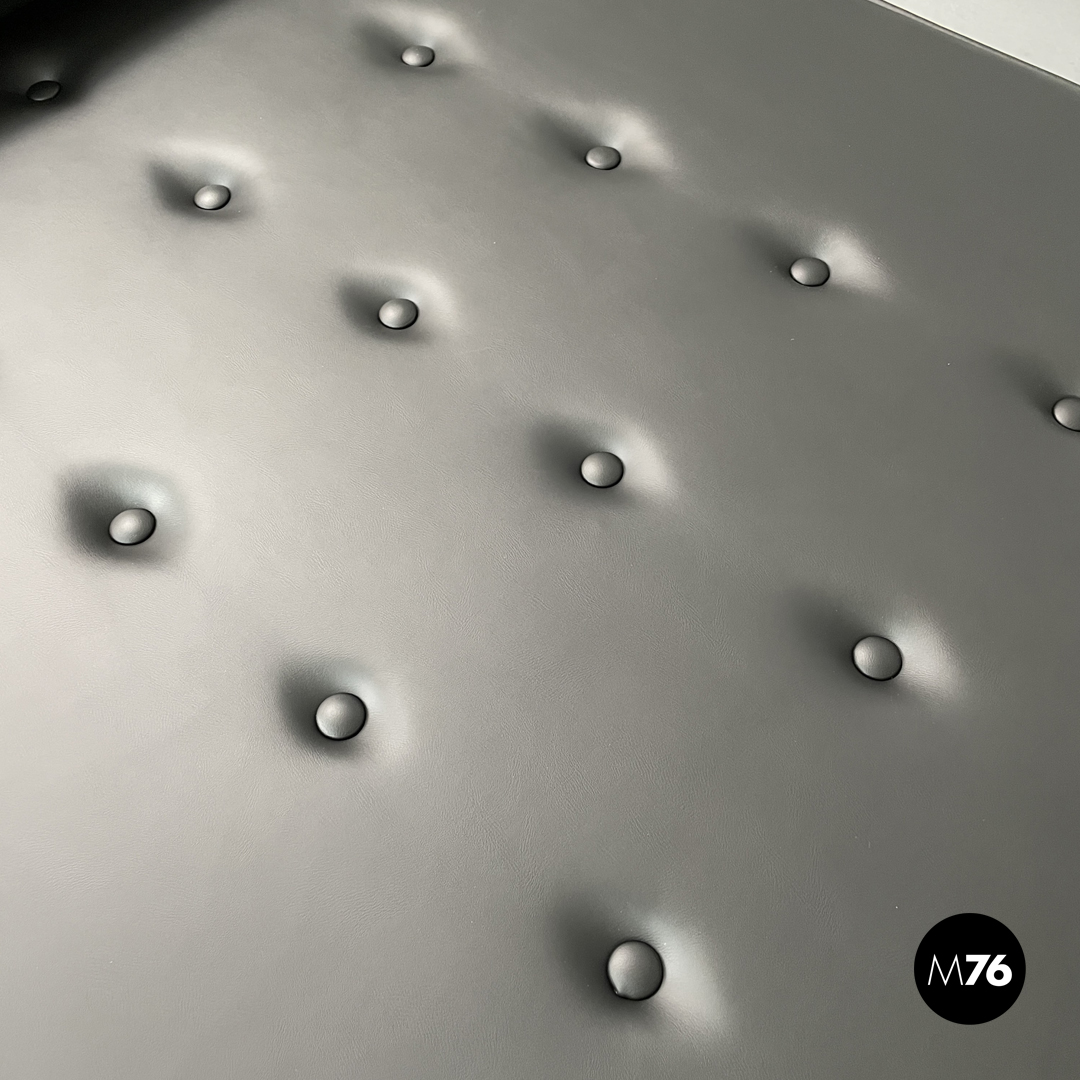 Materasso per daybed rettangolare, in simil pelle nera con bottoni. Presenta due cuscini cilindrici con fascia che possono essere disposti a piacimento.