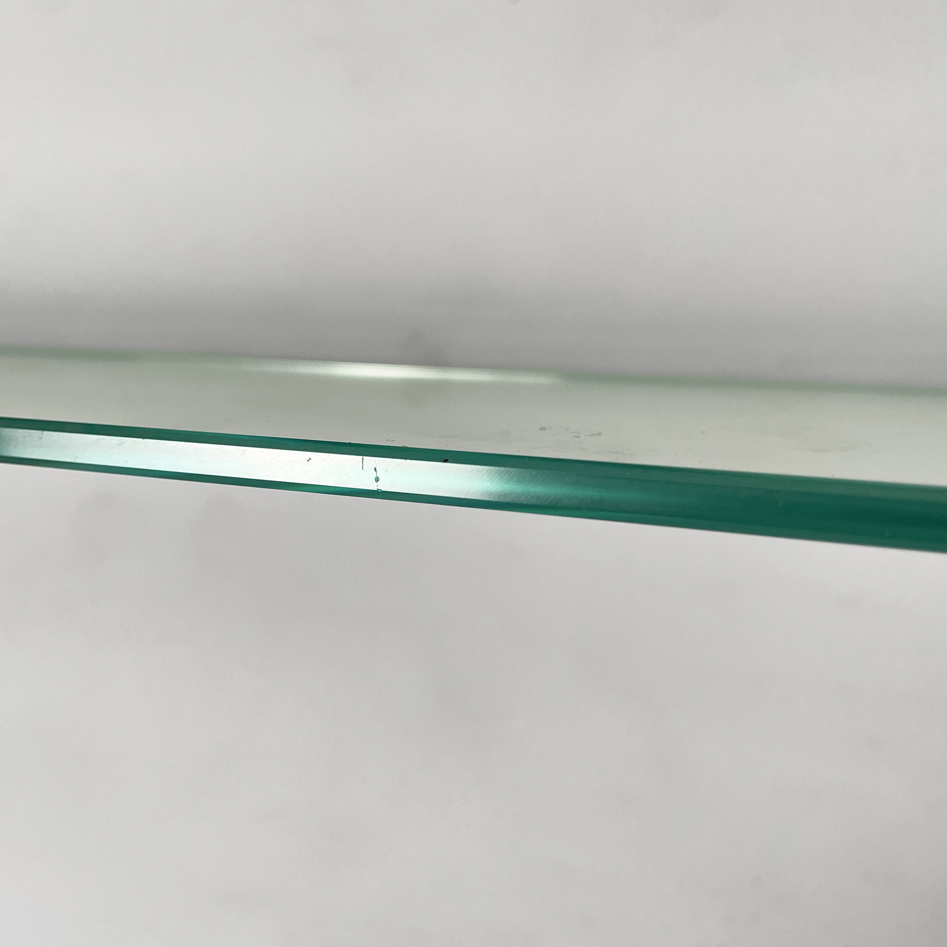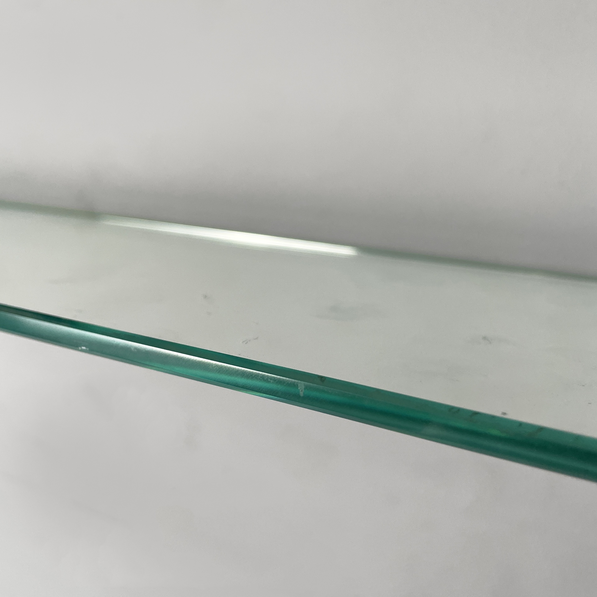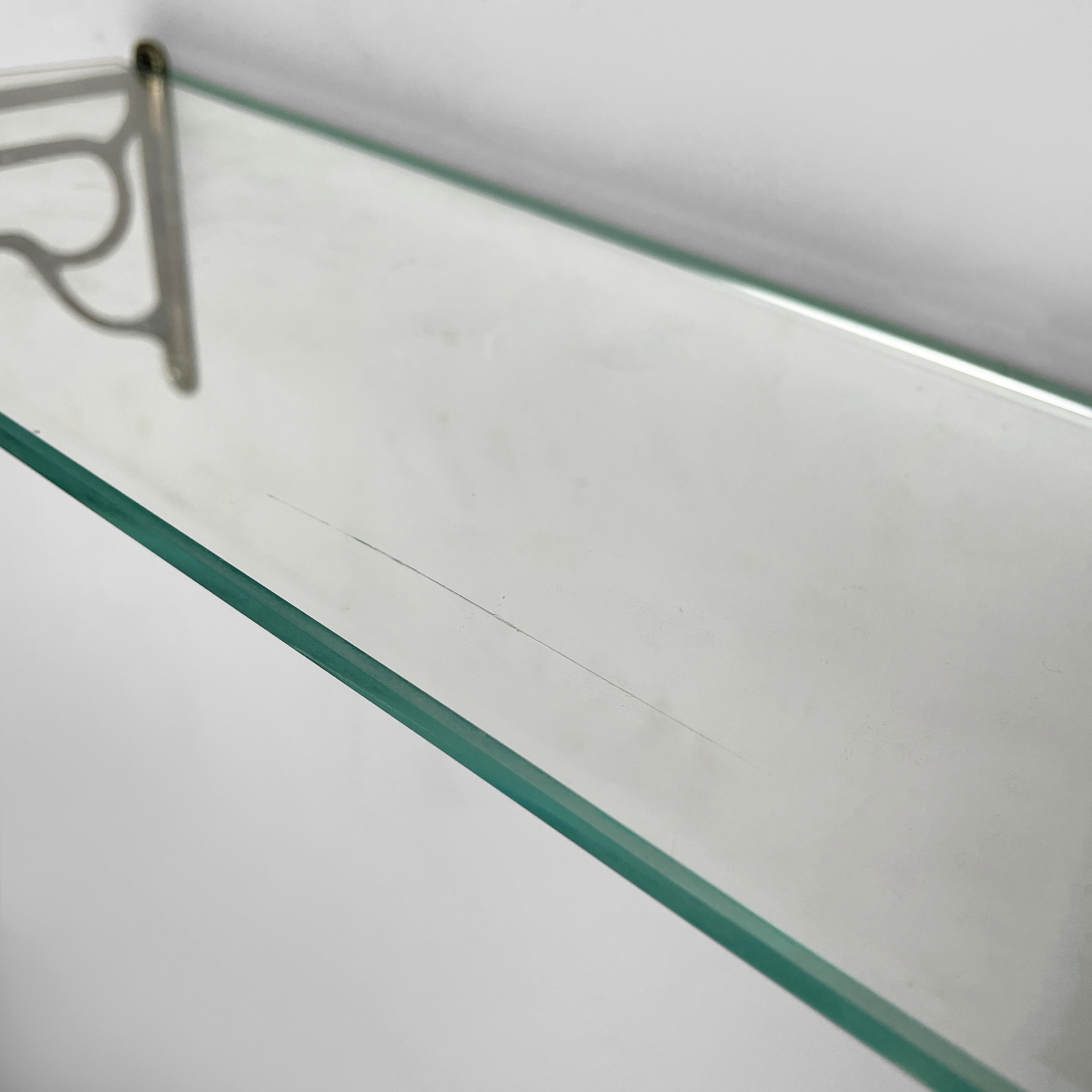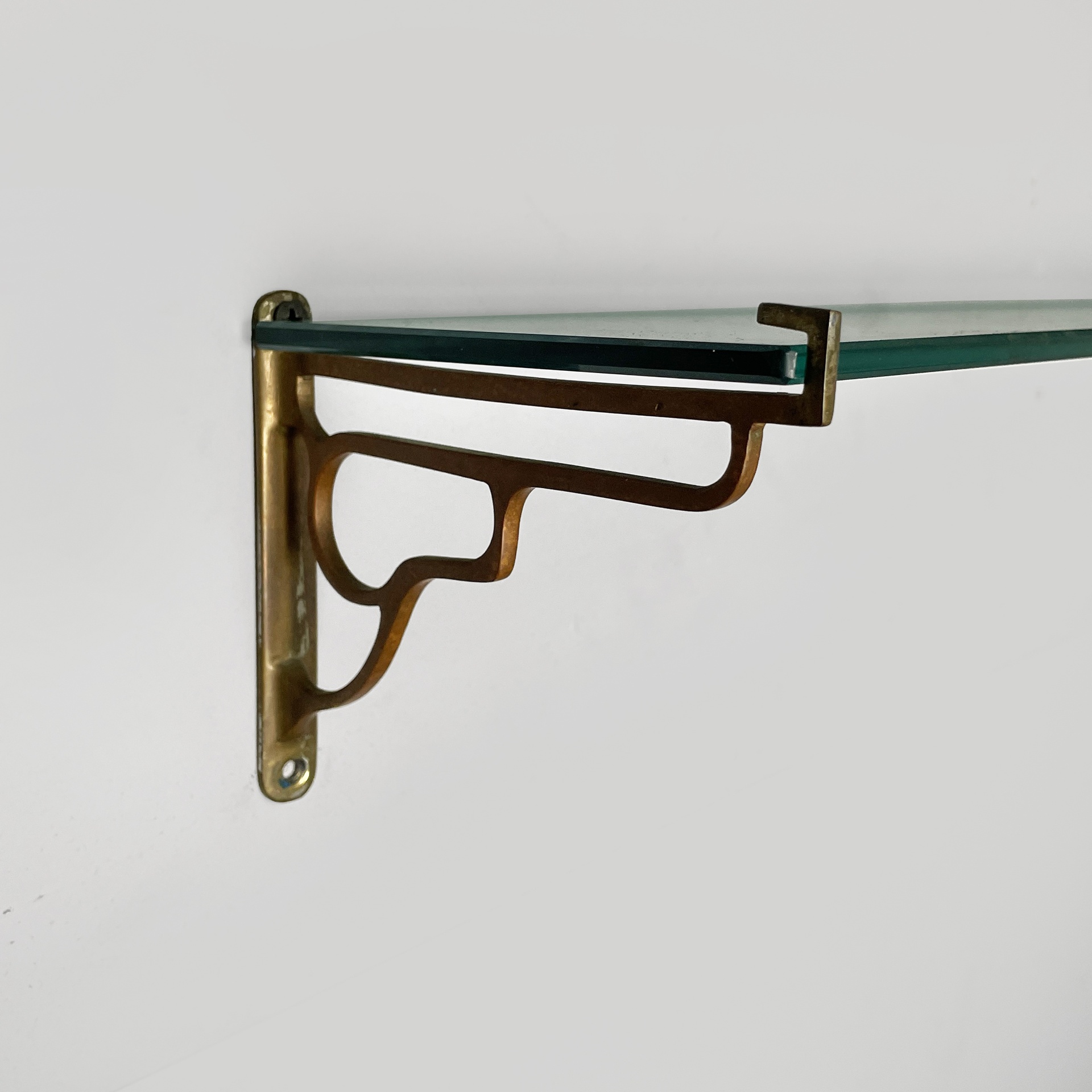 Mensola da parete rettangolare in vetro. I montanti sono in tondino di ottone curvato. Art Deco.