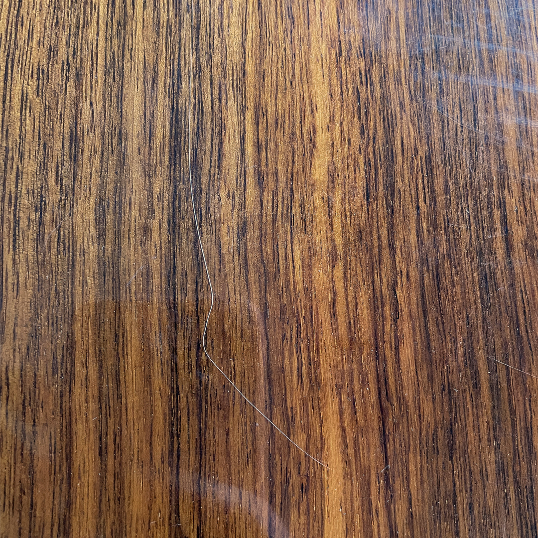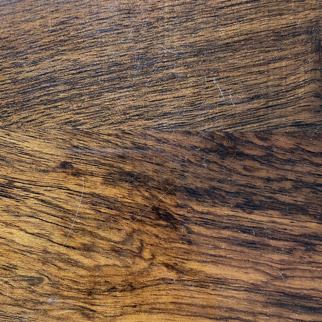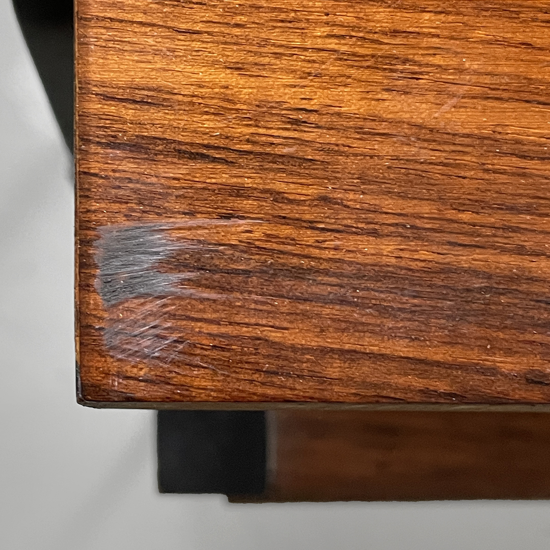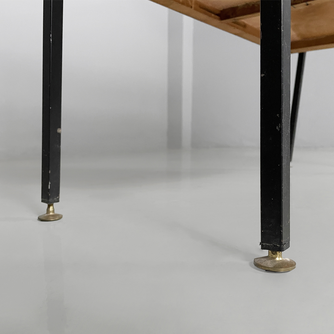 Buone condizioni, mancanze di colore sul metallo, segni sul piano in legno.