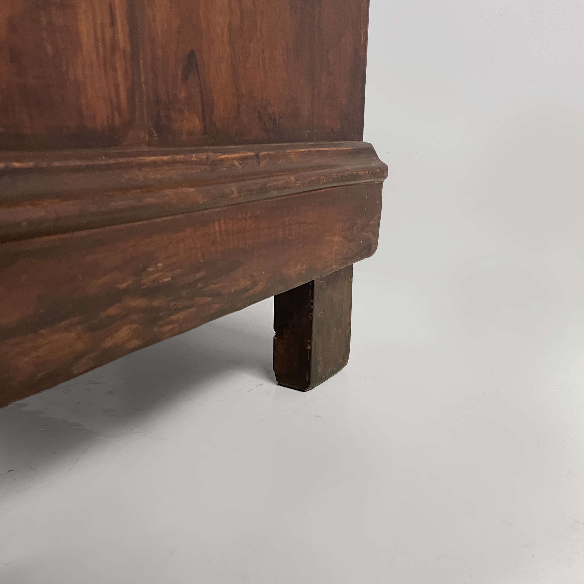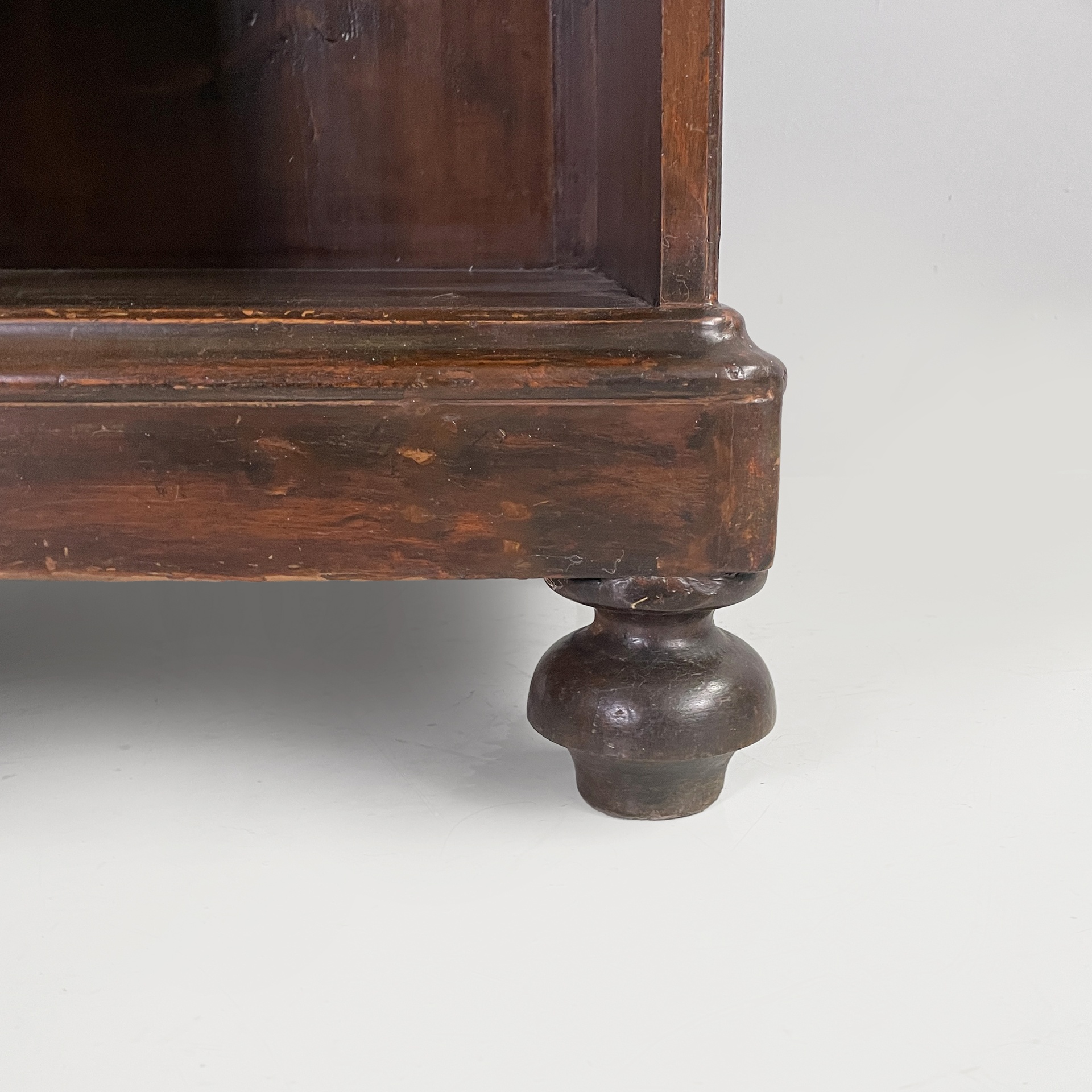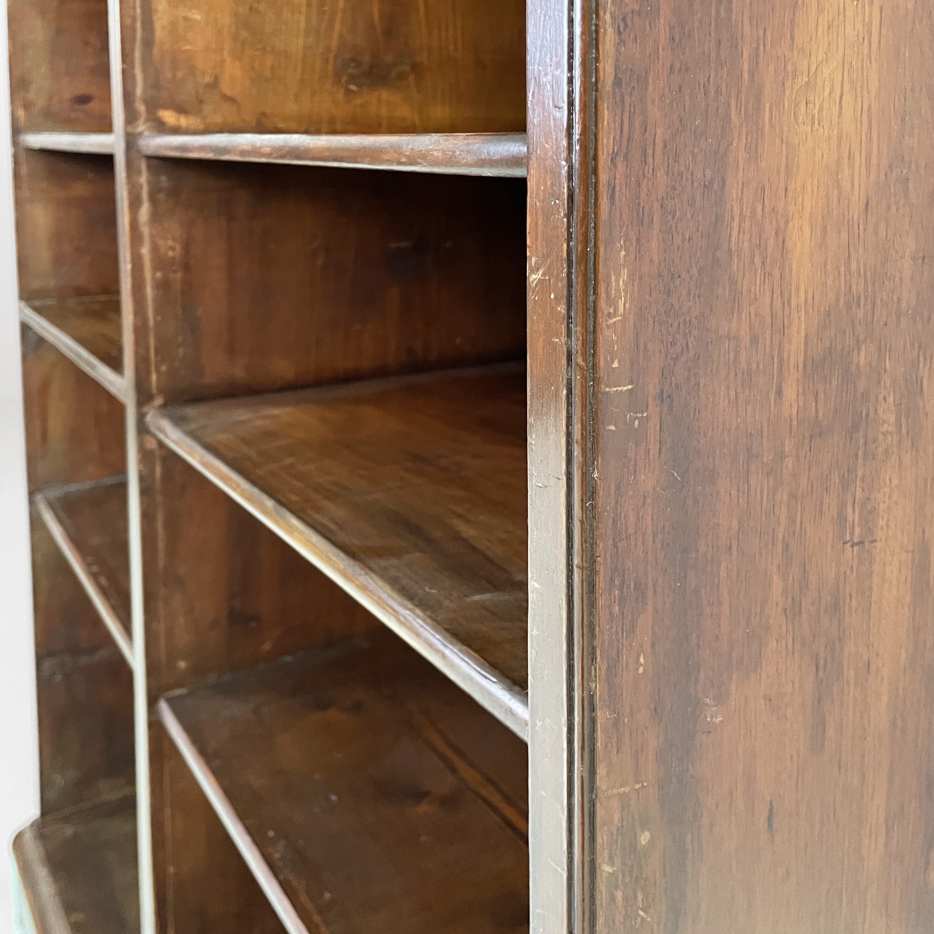 Mobile a giorno o libreria interamente in legno. Sul fronte sono presenti due colonne di scaffali rettangolari. Piedini anteriori lavorati e piedini posteriori squadrati. In stile 1800 ca.