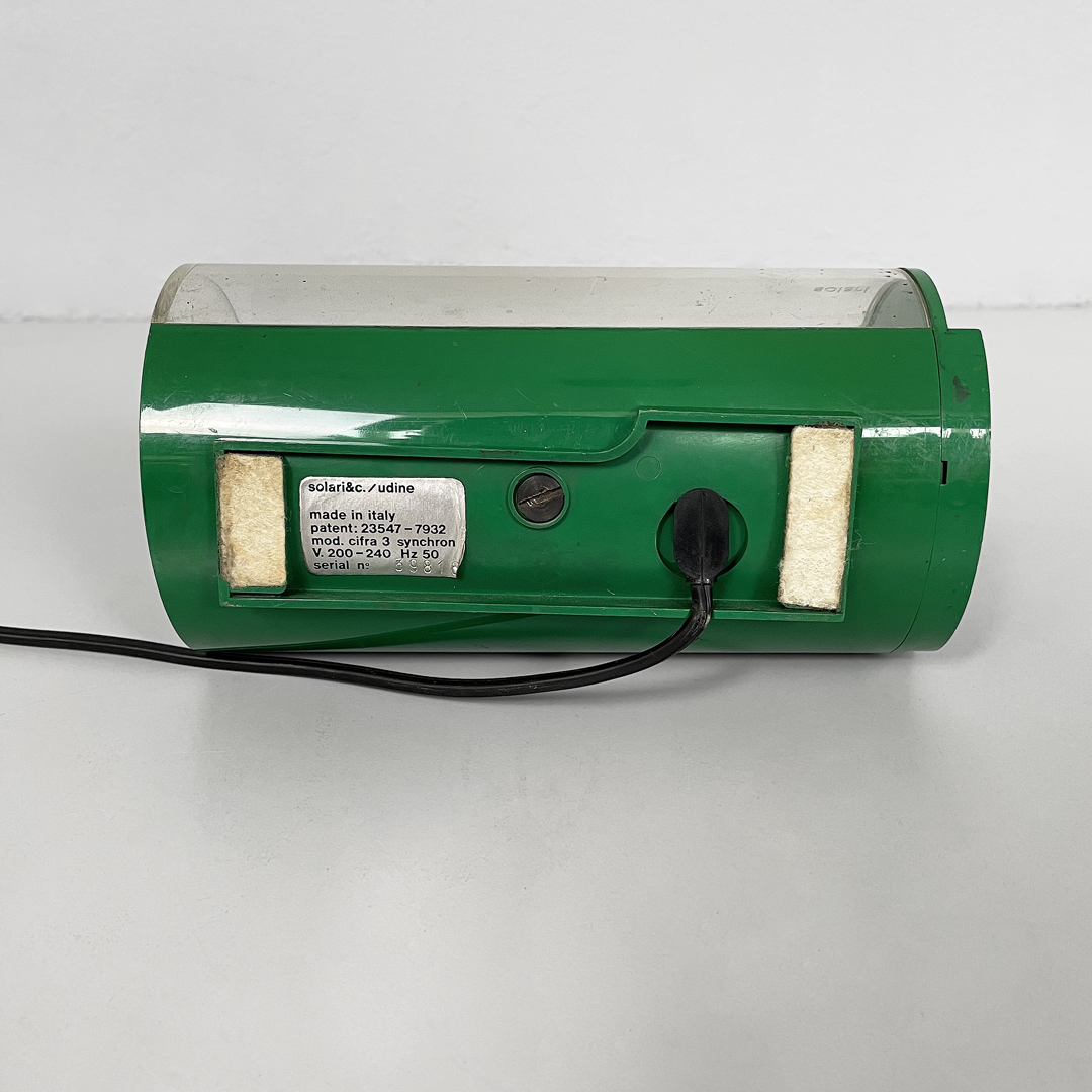 Orologio da tavolo modello Cifra 3 Synchron con struttura cilindrica in plastica verde.