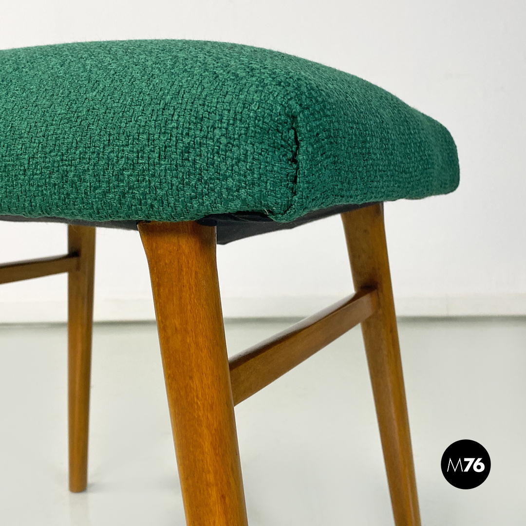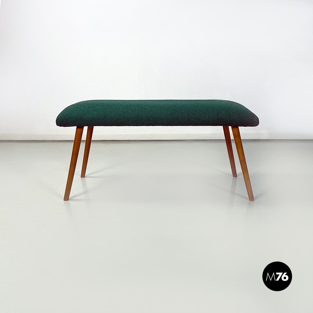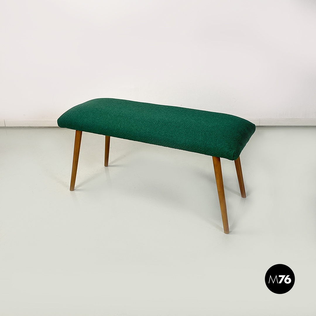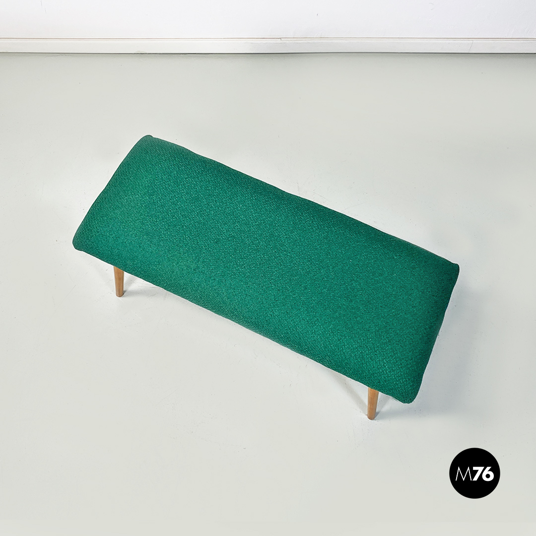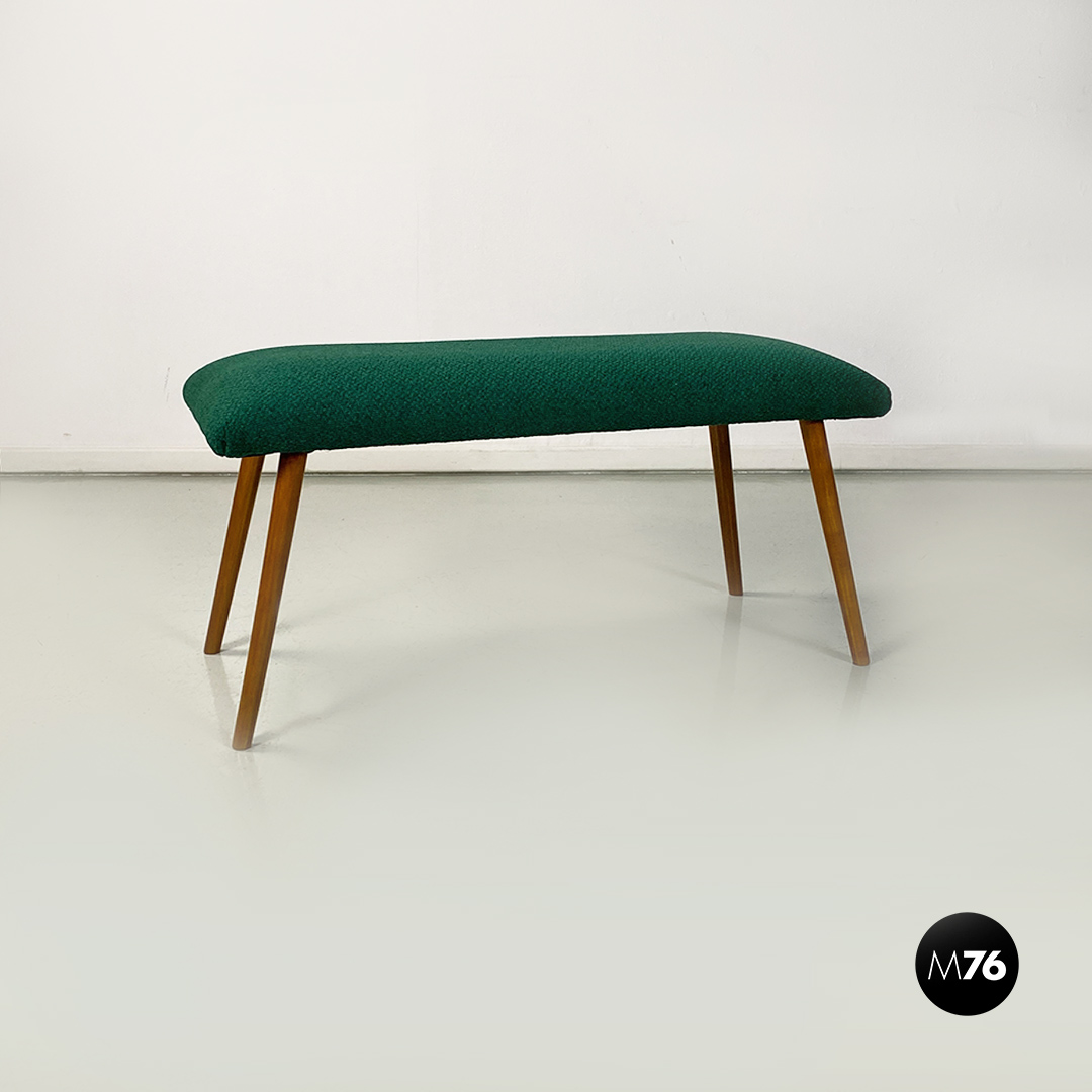 Panca o poggiapiedi con seduta di forma rettangolare, imbottita e rivestita con nuovo tessuto di cotone verde bosco. Zampe in legno massello di faggio a sezione tonda.