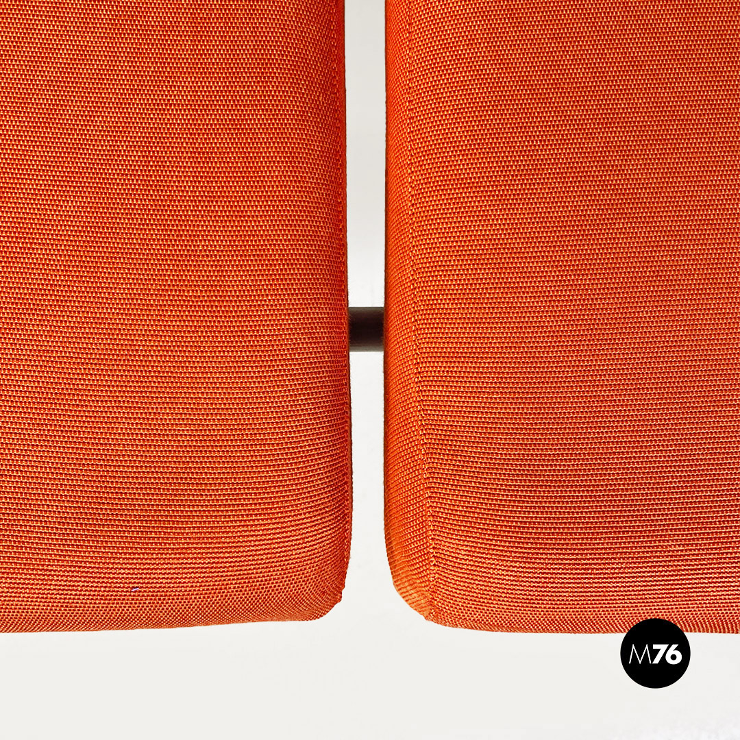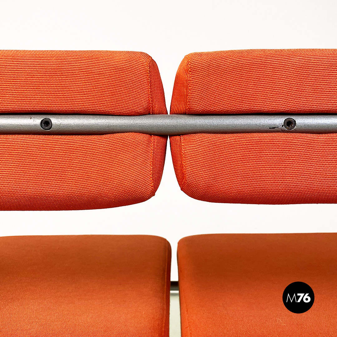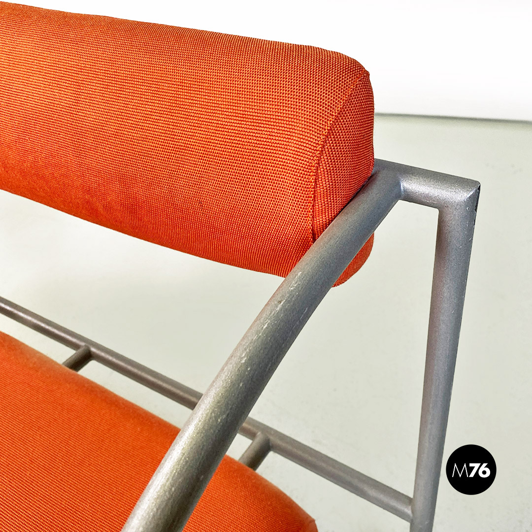 Divano o panca modello Vienna con struttura con braccioli dal profilo curvo, in metallo a sezione tonda con finitura in grigio opaco. Lo schienale e seduta sono imbottiti e rivestiti nel loro originale tessuto di cotone arancio.