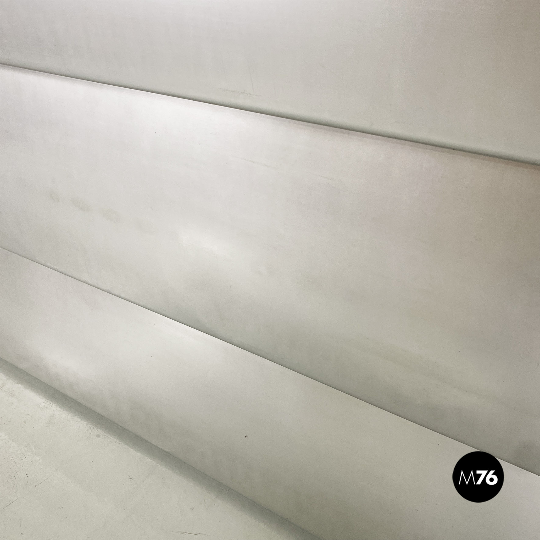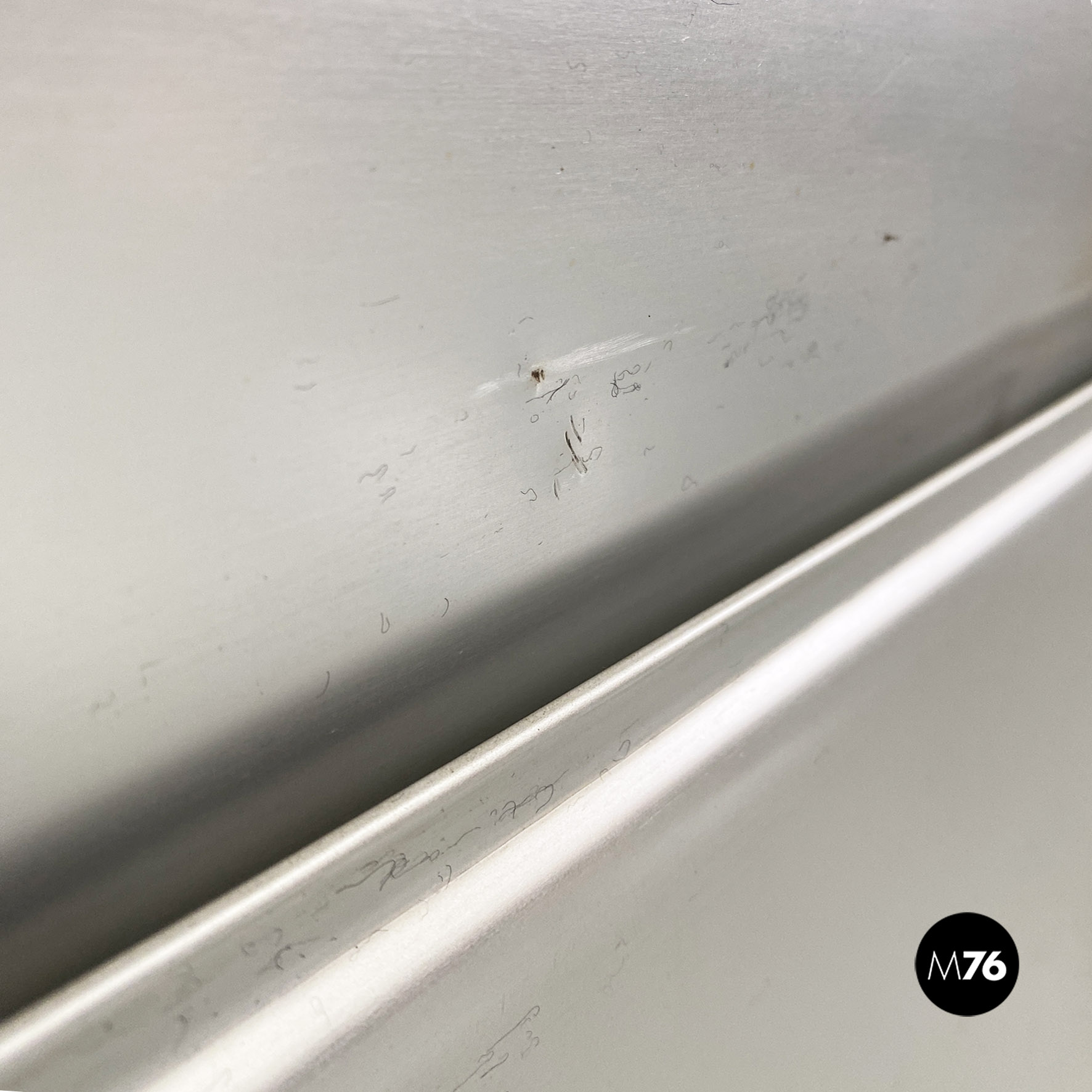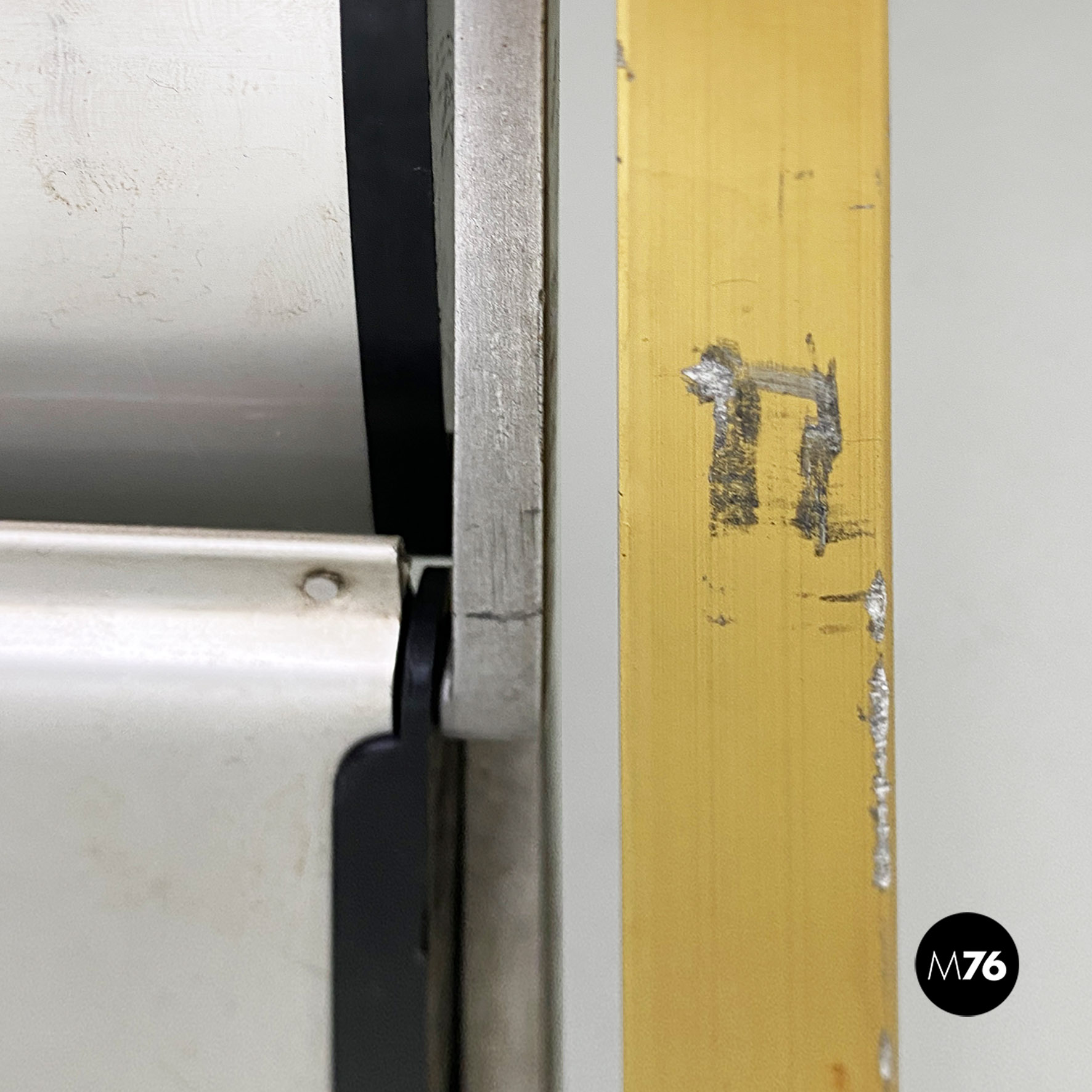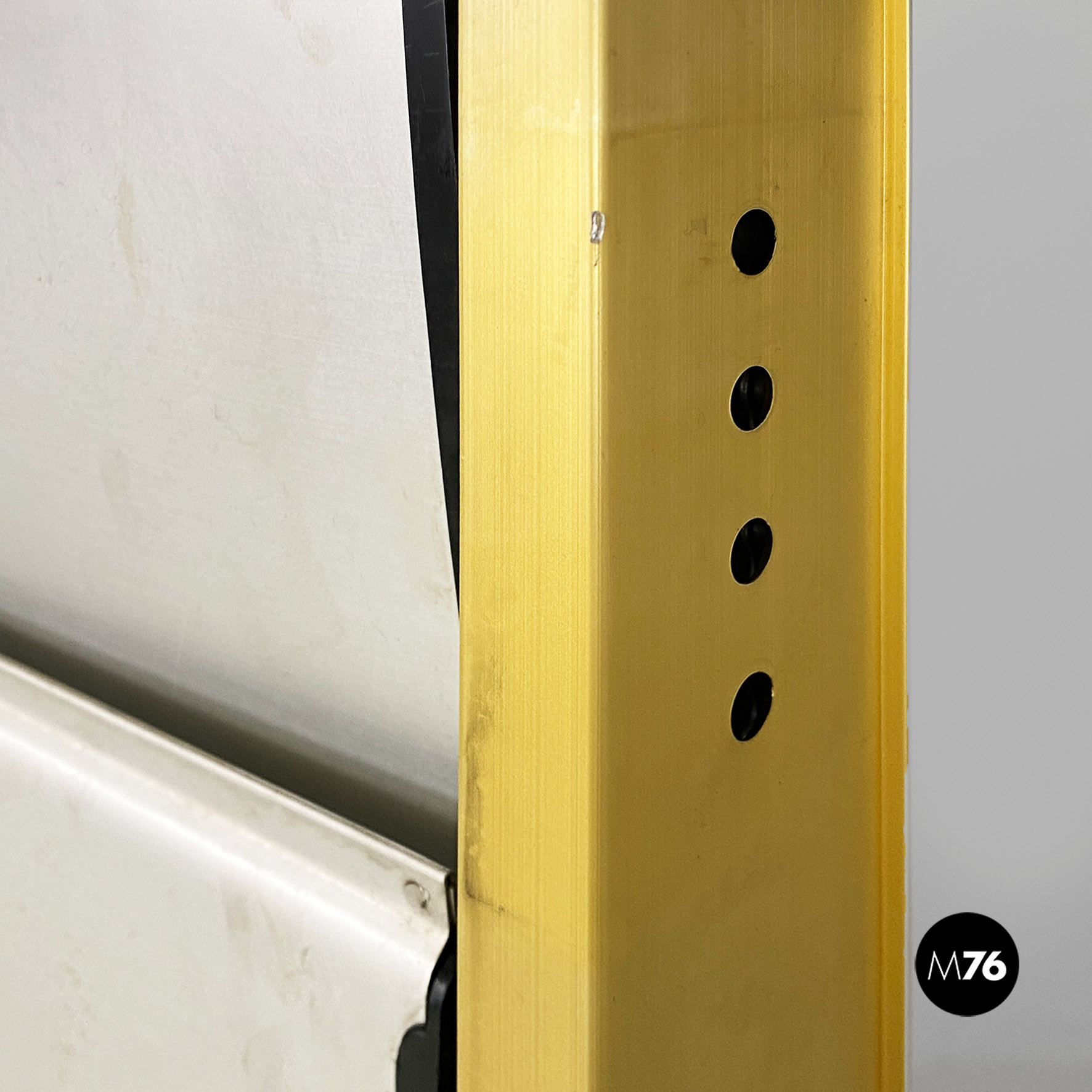 Pannello o brise-soleil in alluminio, proveniente dalla facciata della scuola di Beziers, in Francia. La struttura è composta da un’intelaiatura in alluminio con finitura dorata che sostiene sette fasce frangisole, sempre in alluminio, mosse tramite un ingranaggio a catena posto all’interno dei montanti. Nonostante la sua imponenza formale pesa meno di 30 kg.