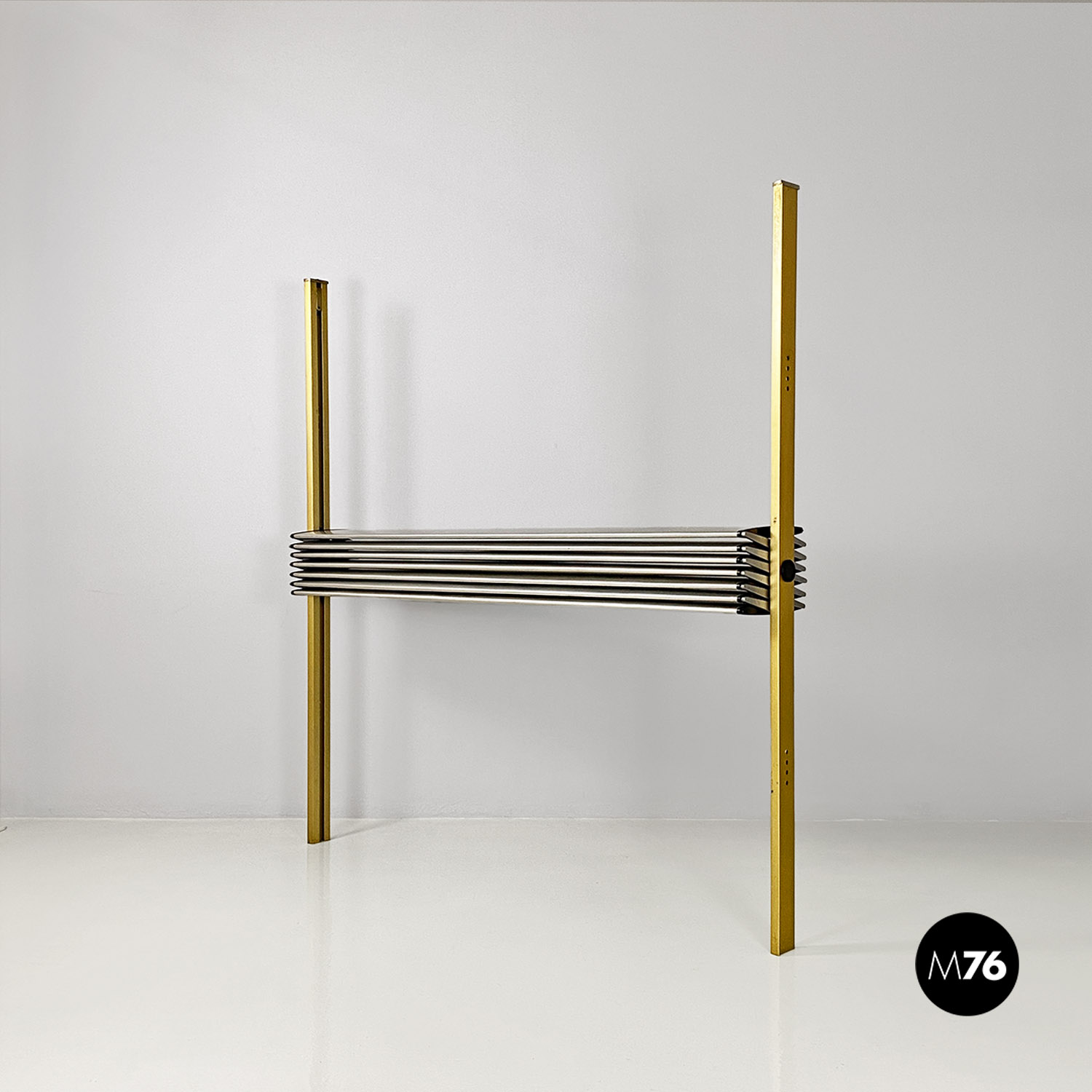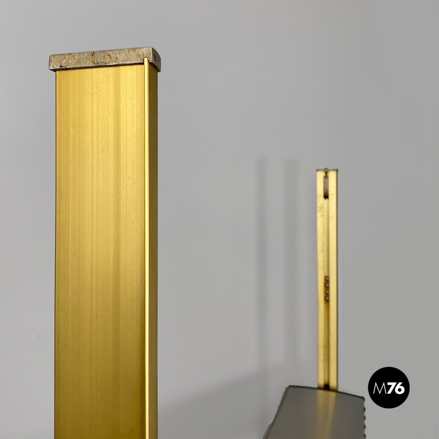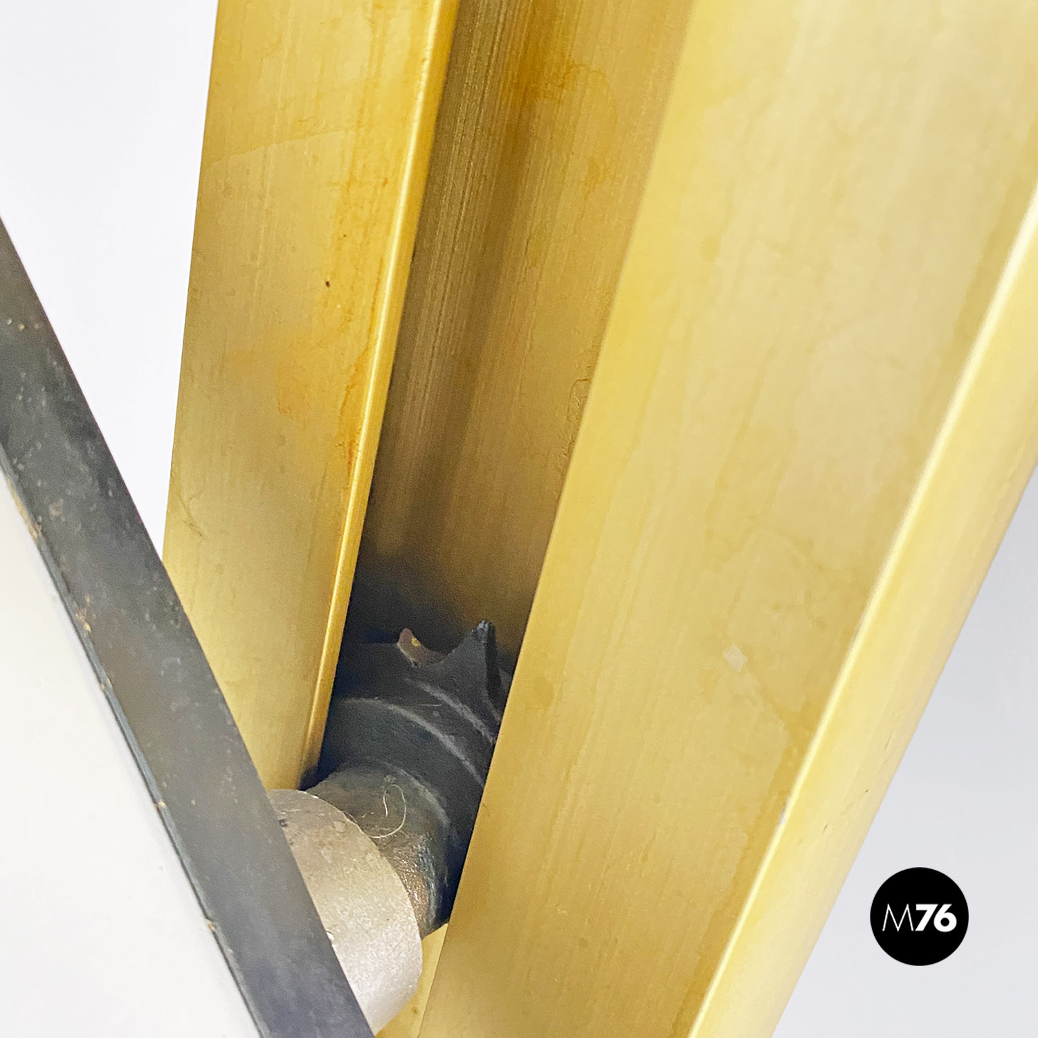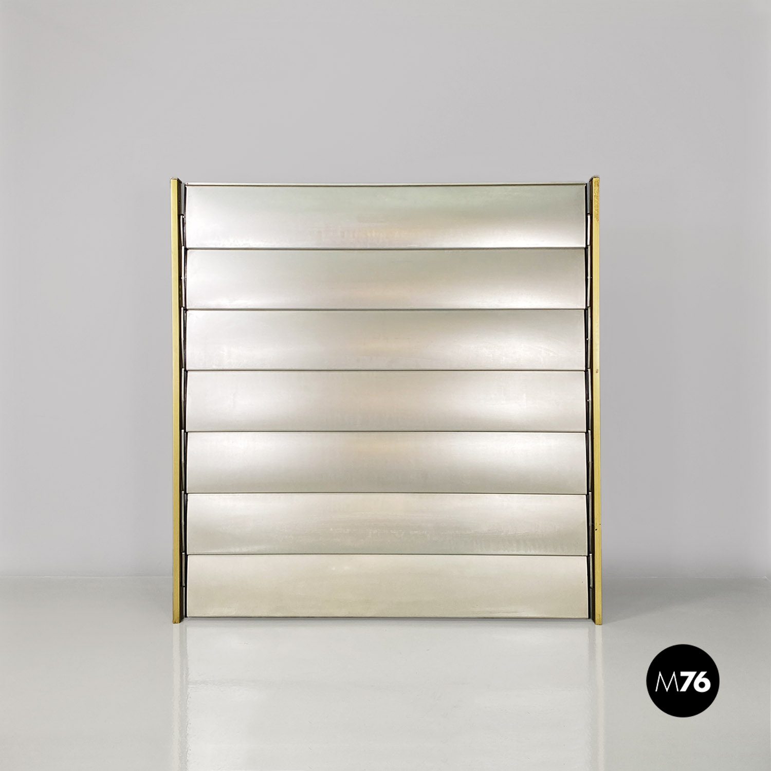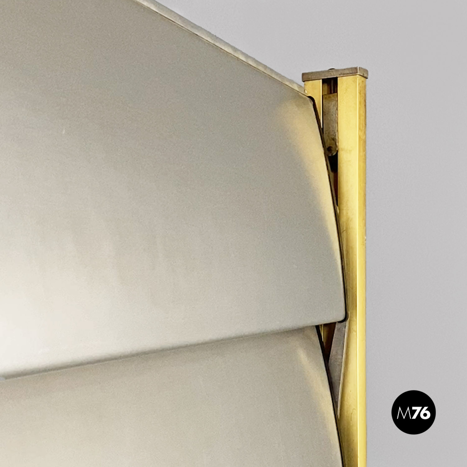 La struttura è composta da un’intelaiatura in alluminio con finitura dorata che sostiene sette fasce frangisole, sempre in alluminio, mosse tramite un ingranaggio a catena posto all’interno dei montanti. Nonostante la sua imponenza formale pesa meno di 30 kg.