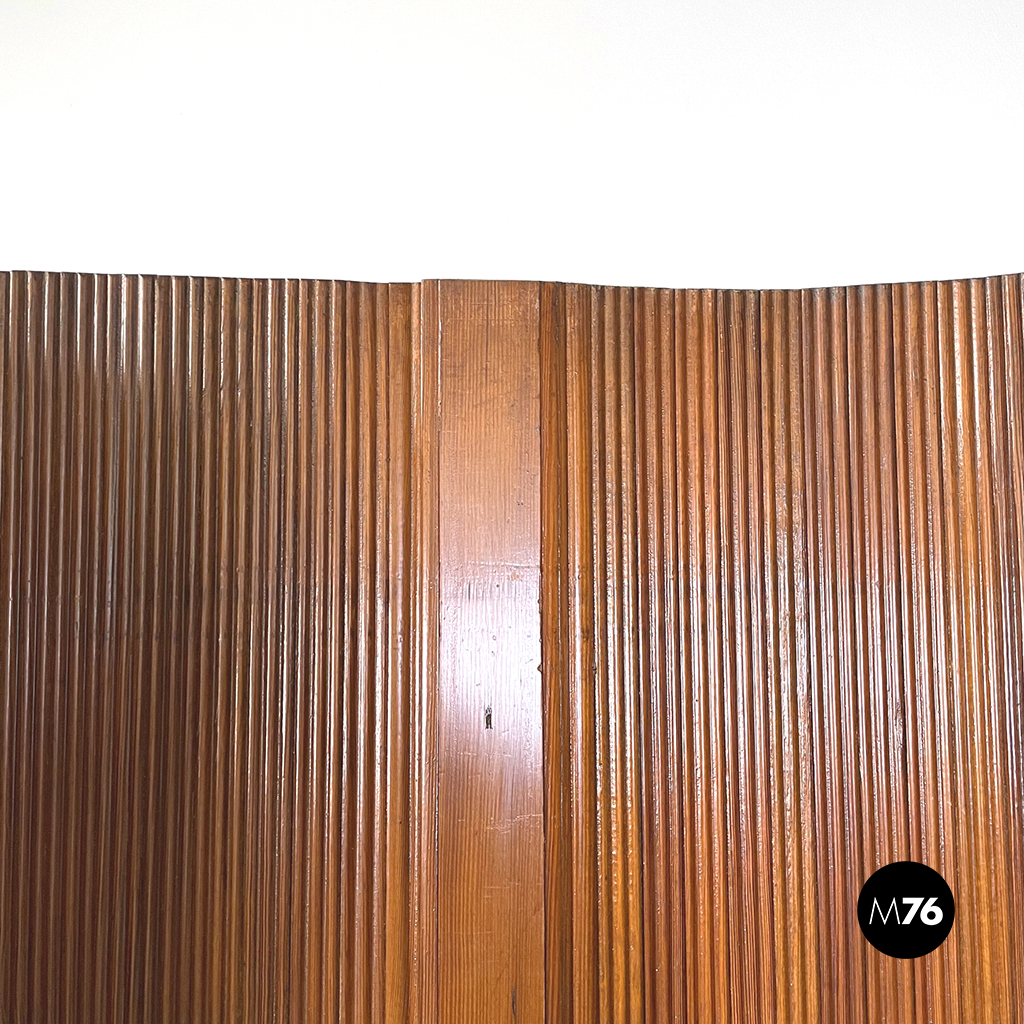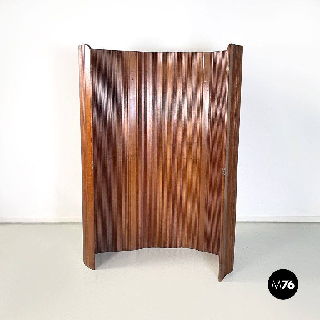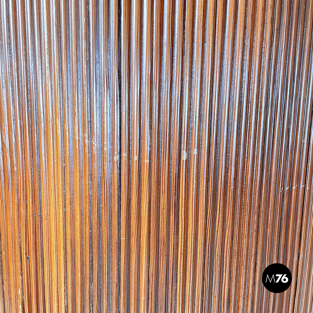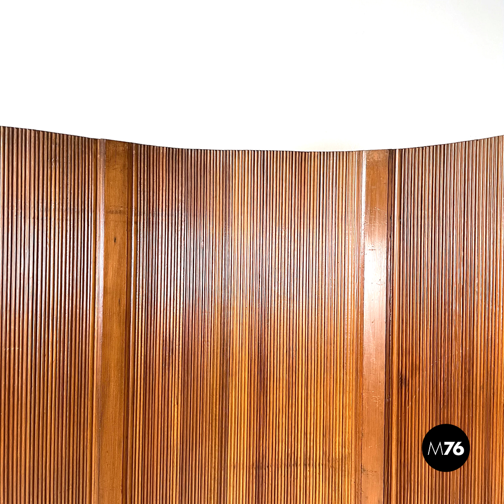 Paravento autoportante composto da listelli in legno verticali di gradazioni differenti. Questa struttura permette al separé di essere completamente snodabile, quindi di essere posizionato a piacere. Può essere usato come divisorio in una stanza.