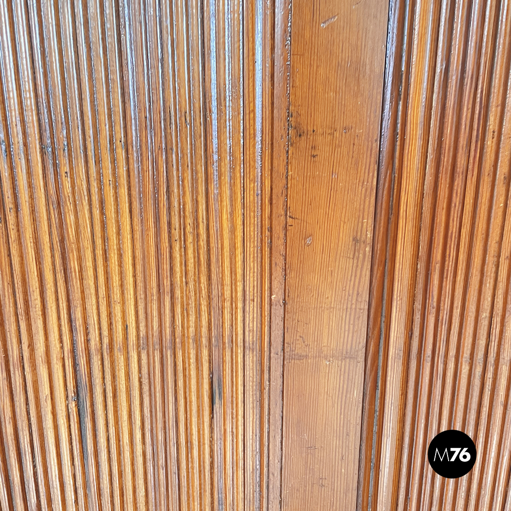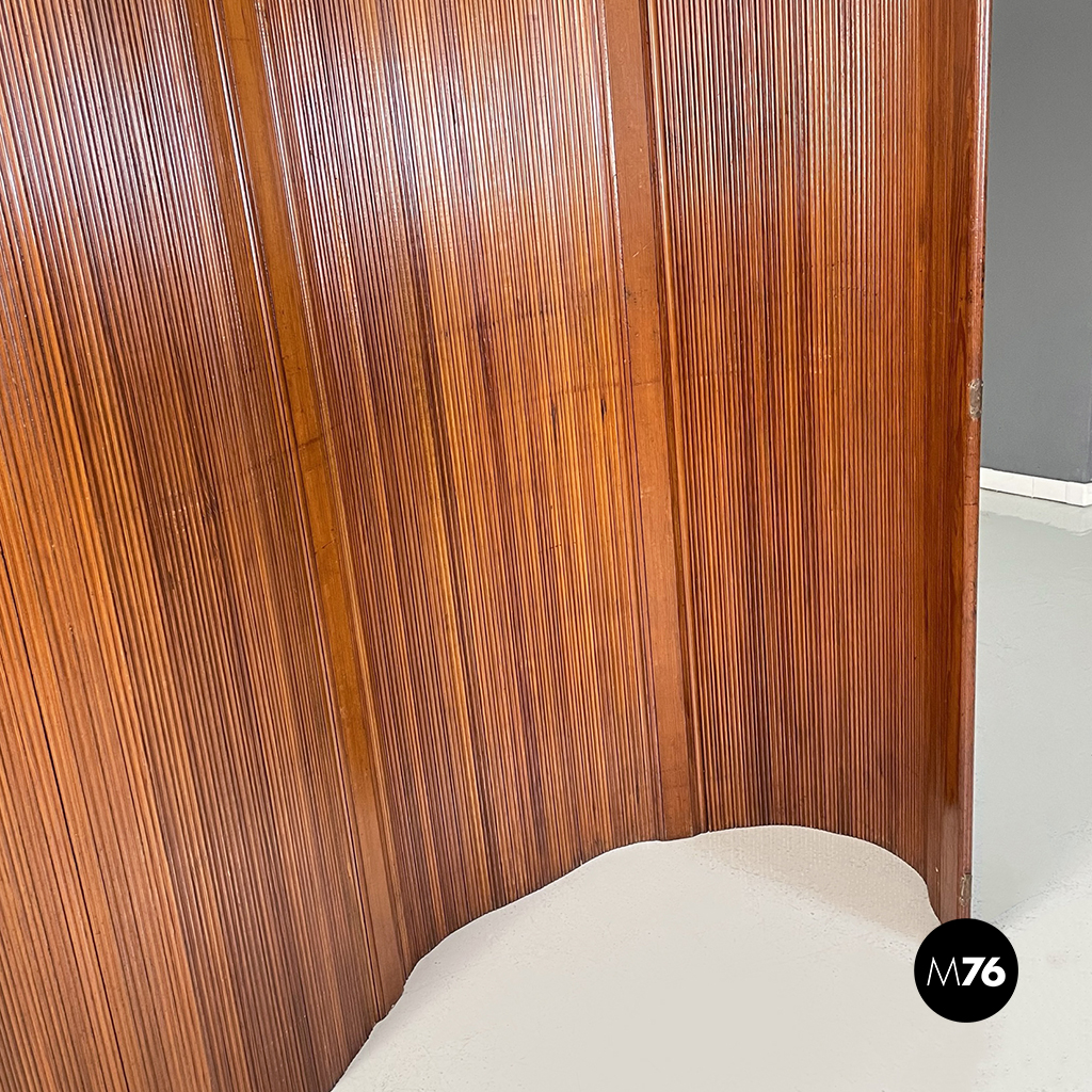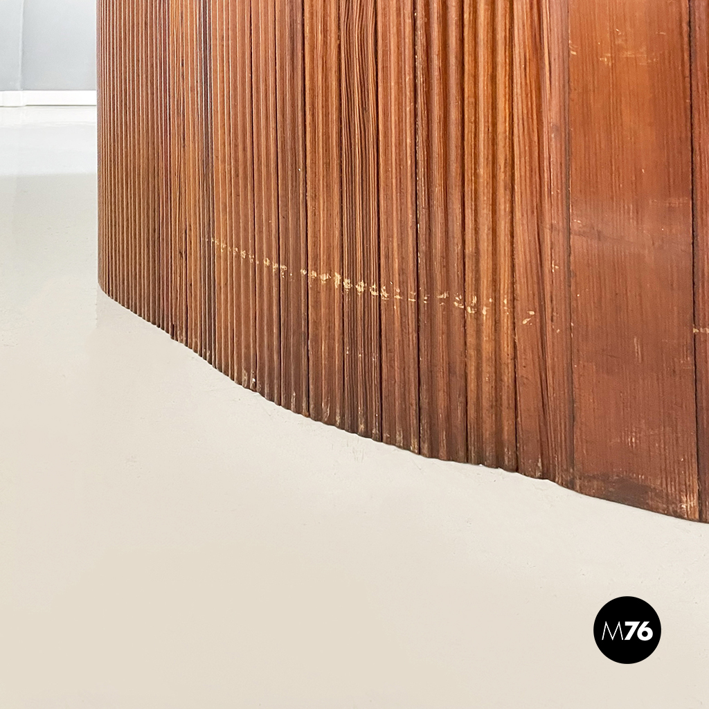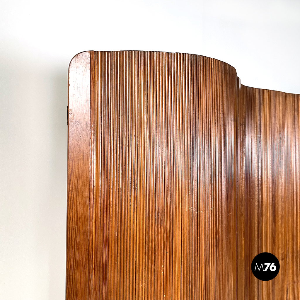 Paravento autoportante composto da listelli in legno verticali di gradazioni differenti. Questa struttura permette al separé di essere completamente snodabile, quindi di essere posizionato a piacere. Può essere usato come divisorio in una stanza.