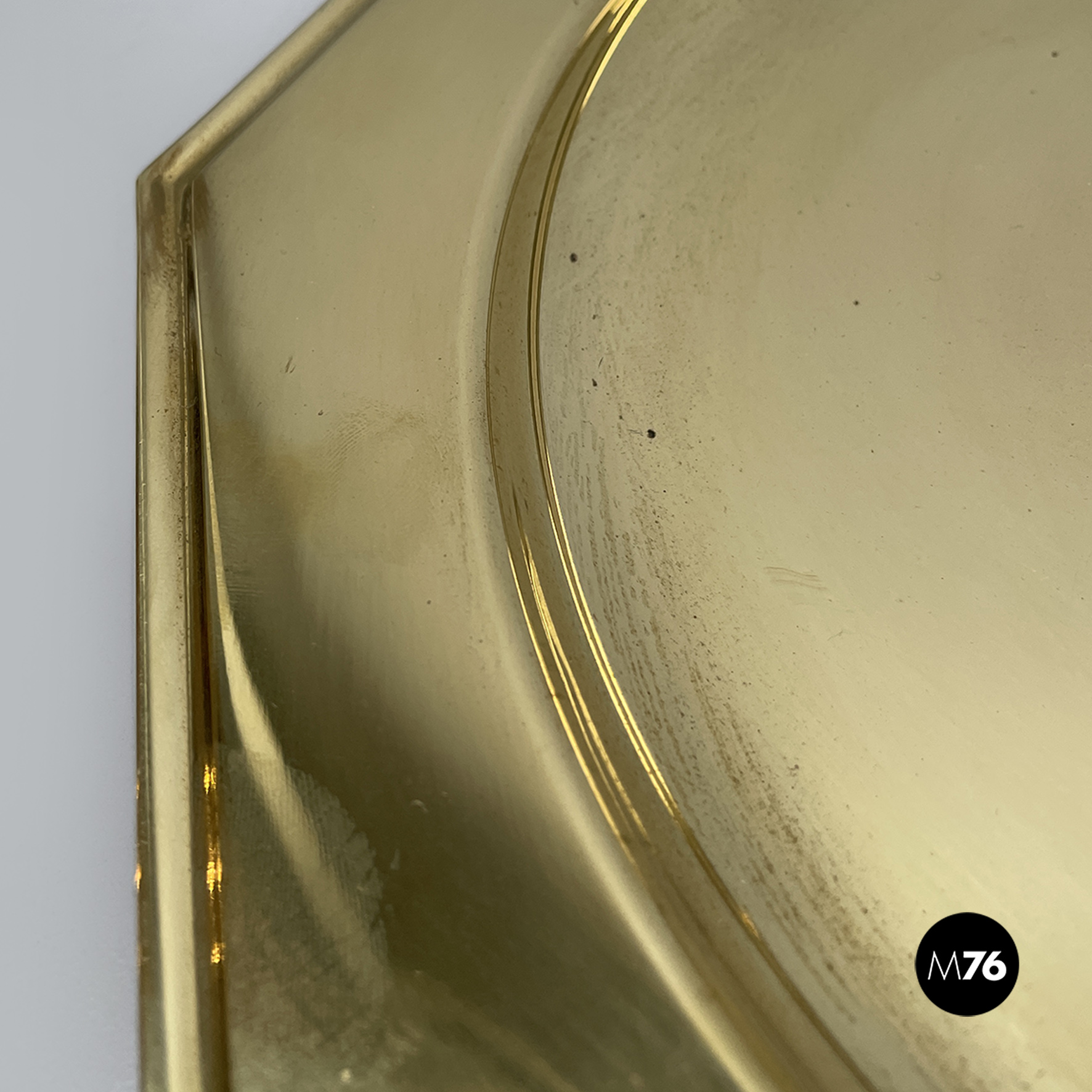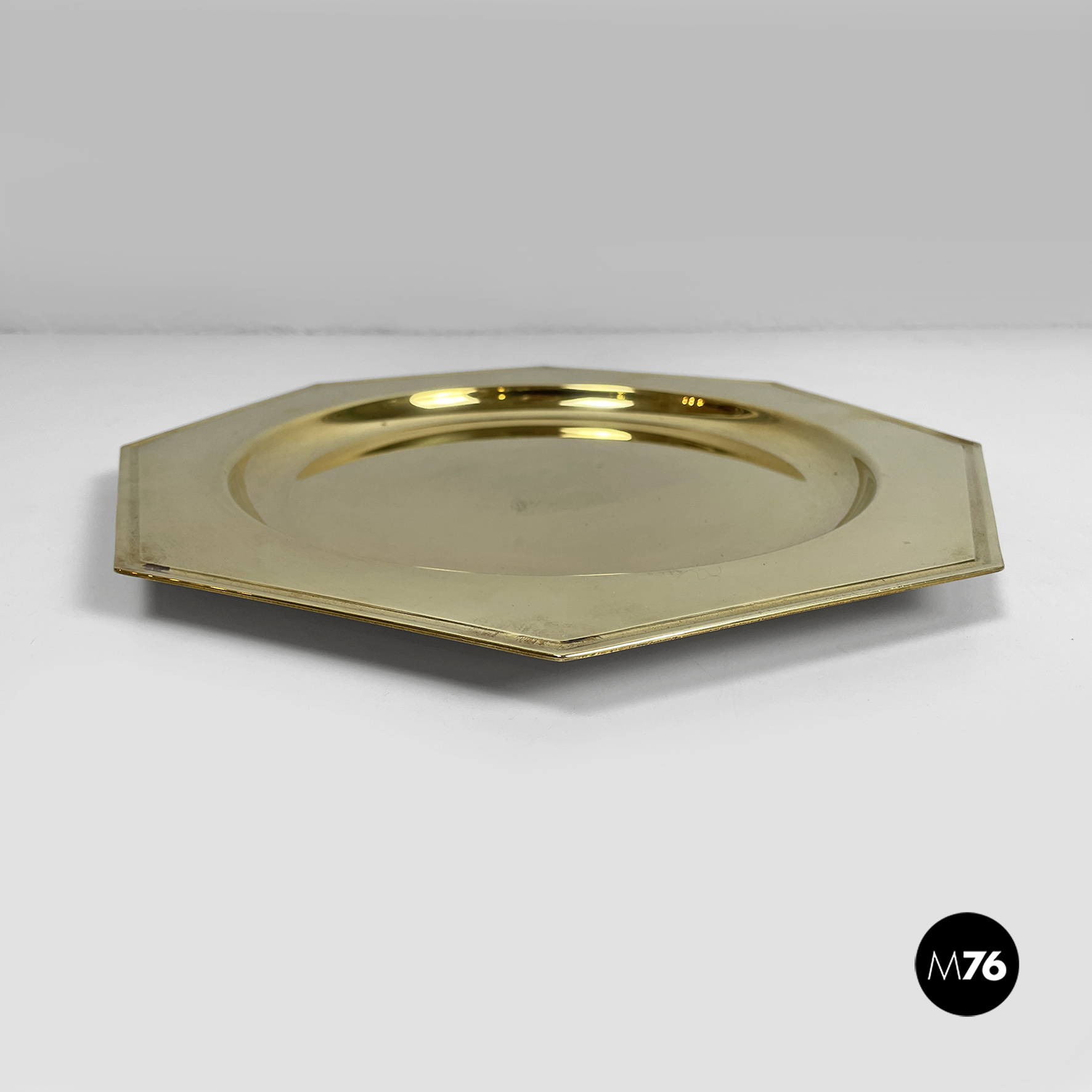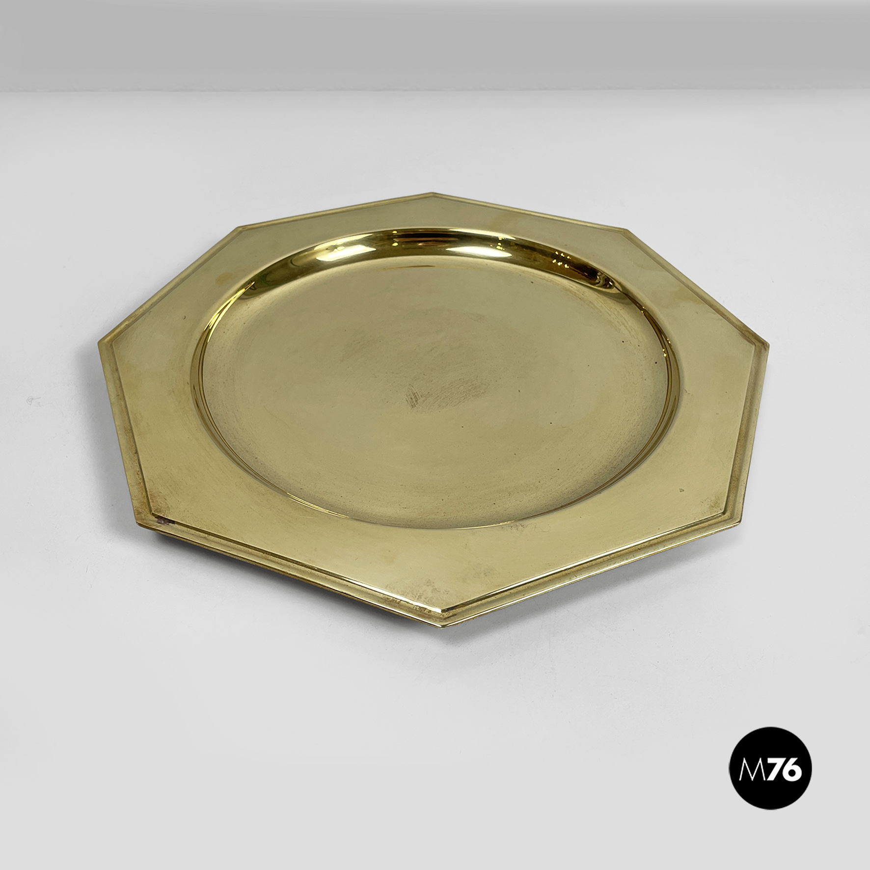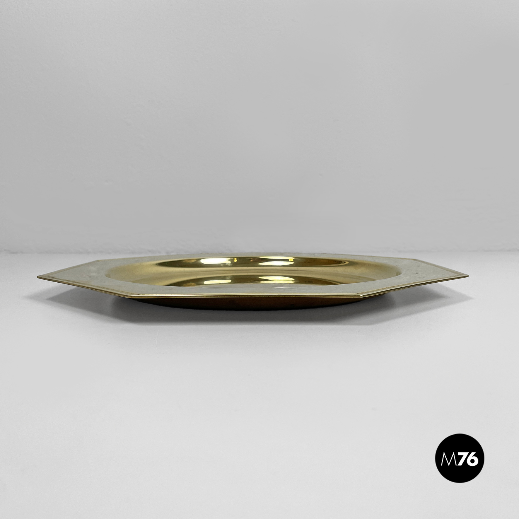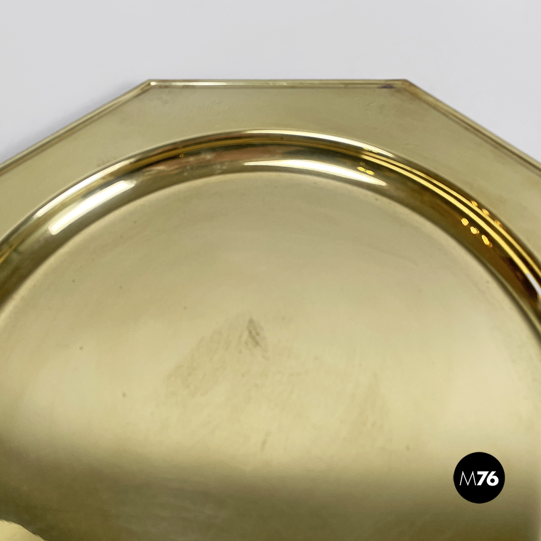 Piatto di grandi dimensioni, centrotavola di forma ottagonale o vassoio interamente in ottone. La parte centrale di forma tonda per contenere.