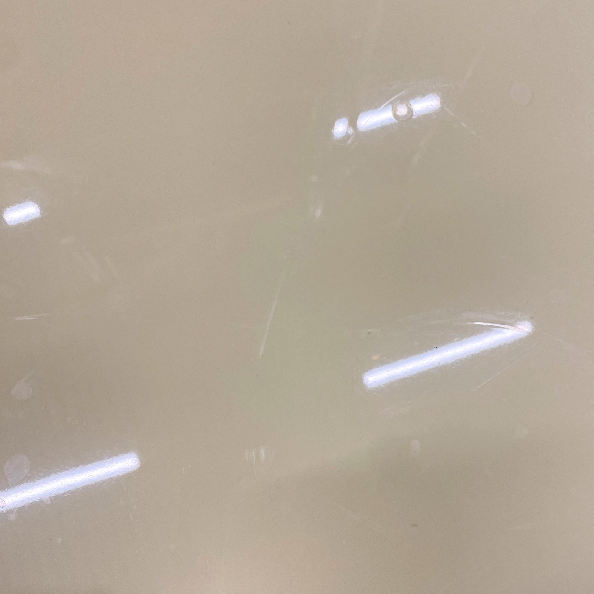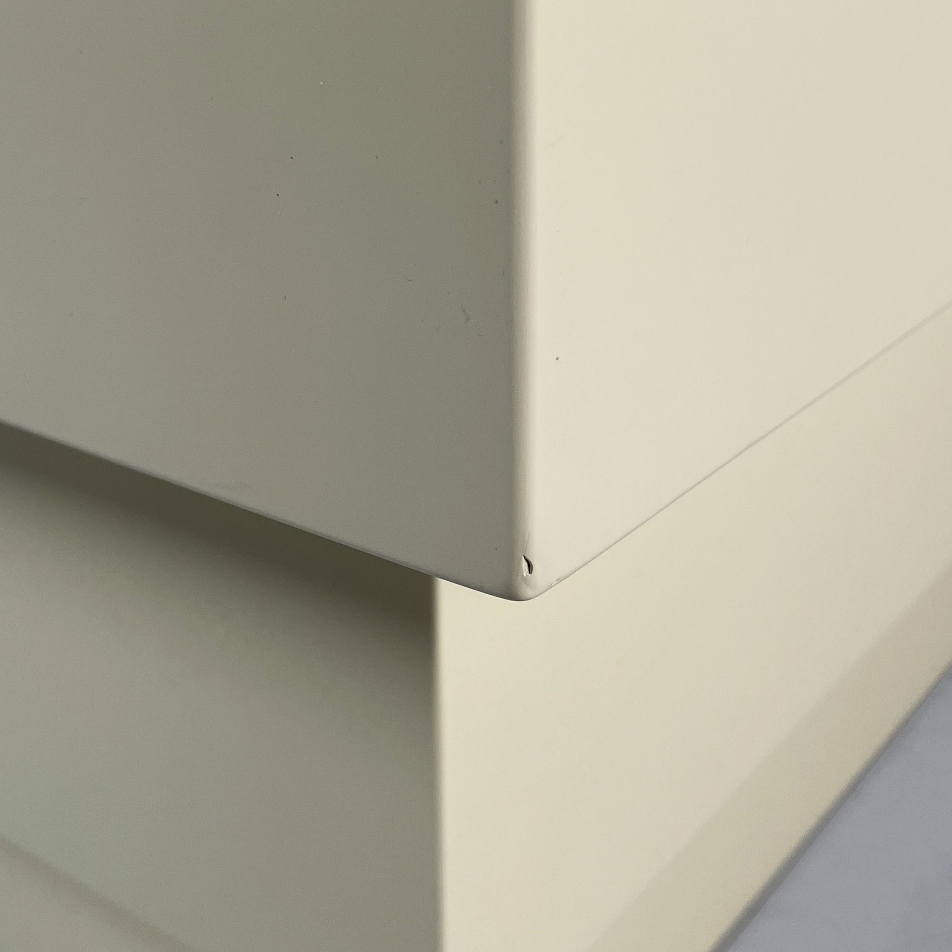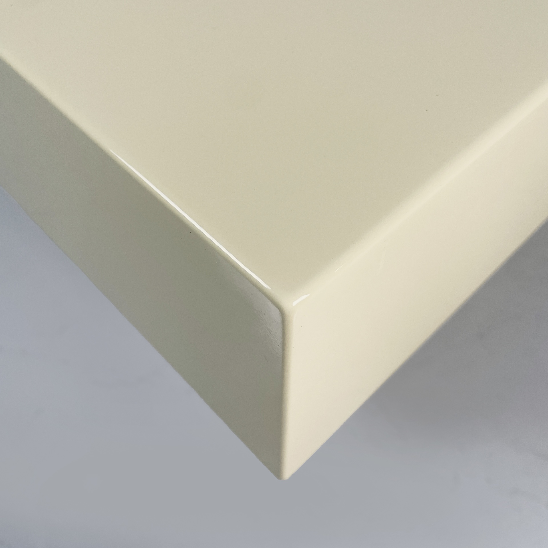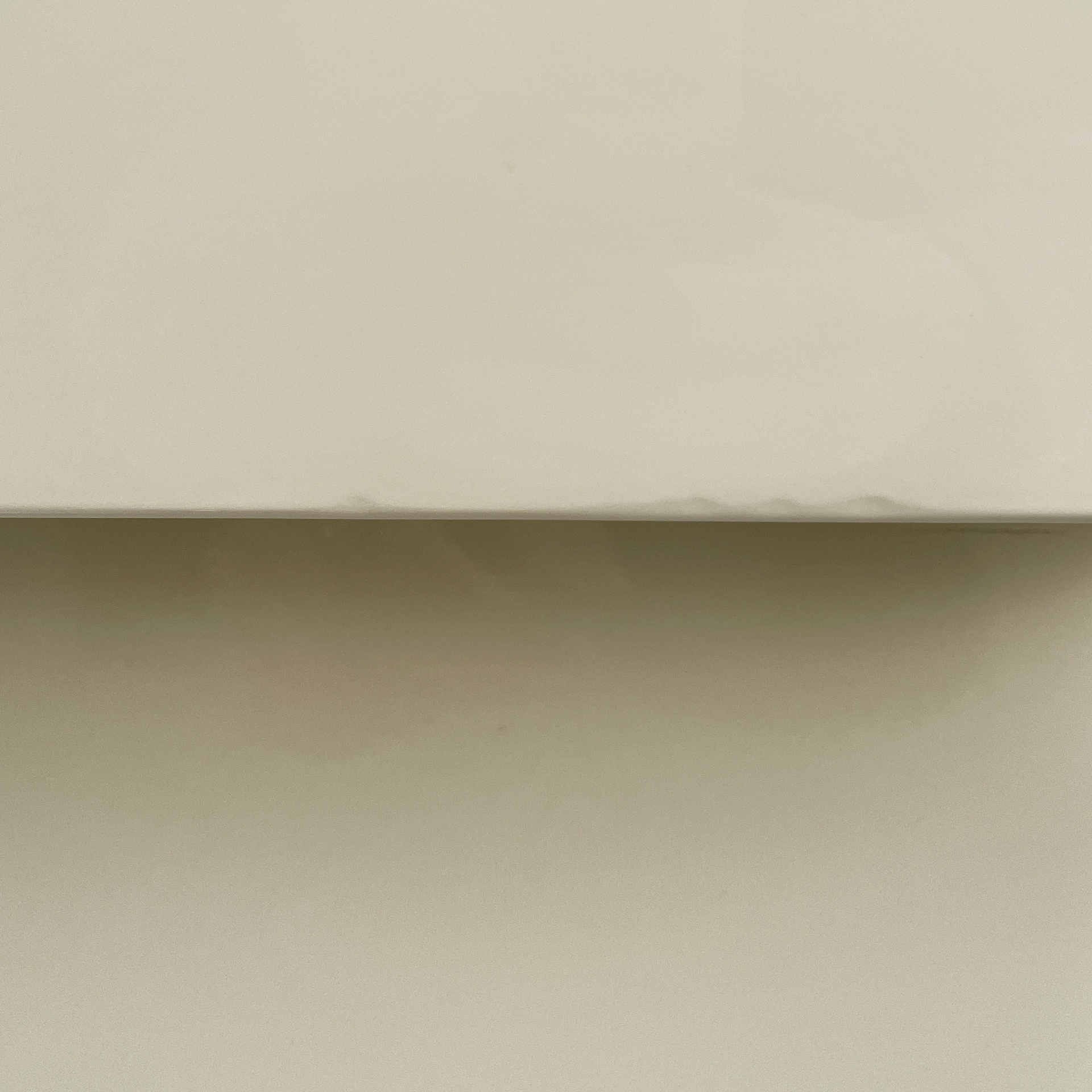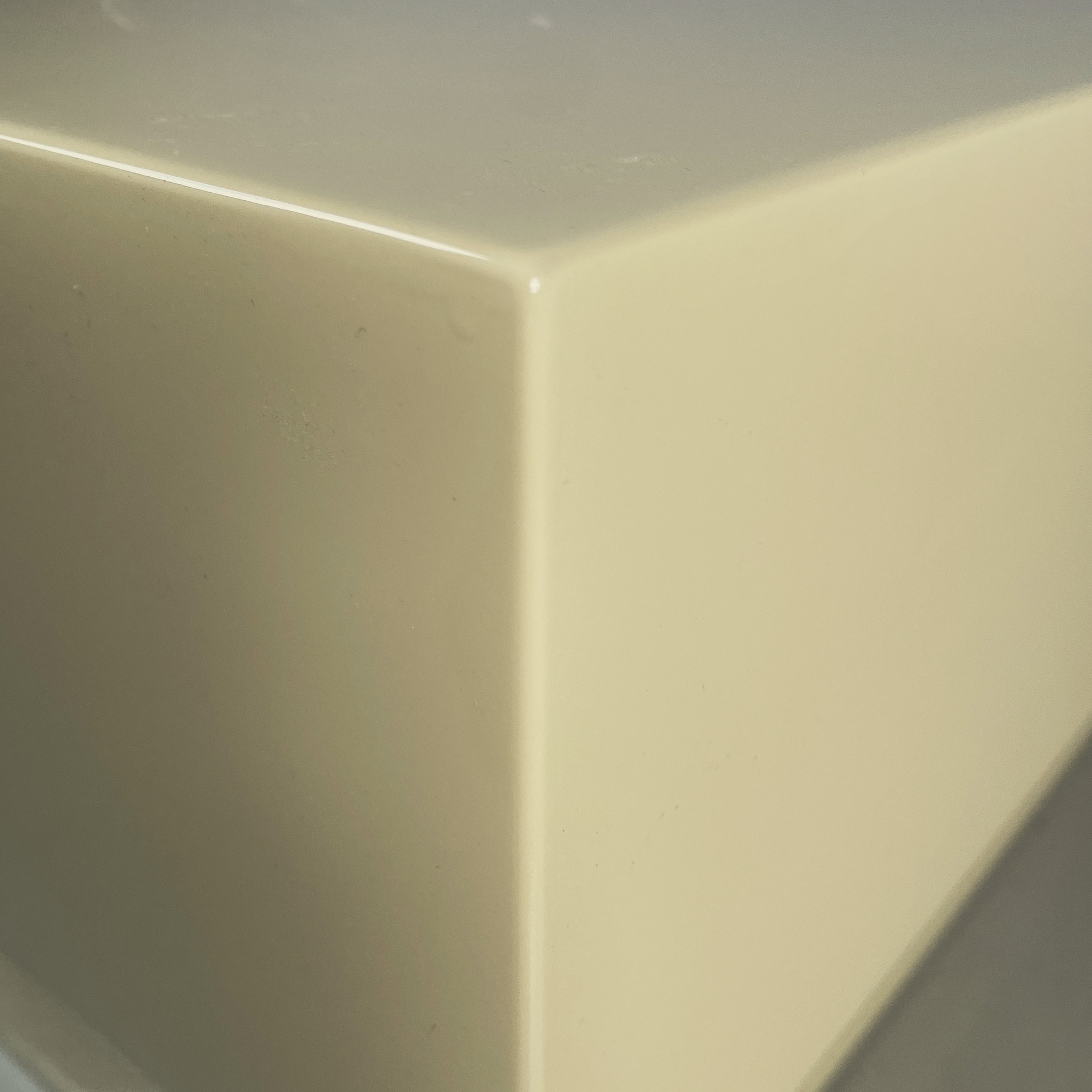 Buone condizioni. Leggeri segni sparsi e piccole segni di colatura di vernice. È presente un segno più evidente e una piccola bombatura su un lato. Colore leggermente non uniforme.