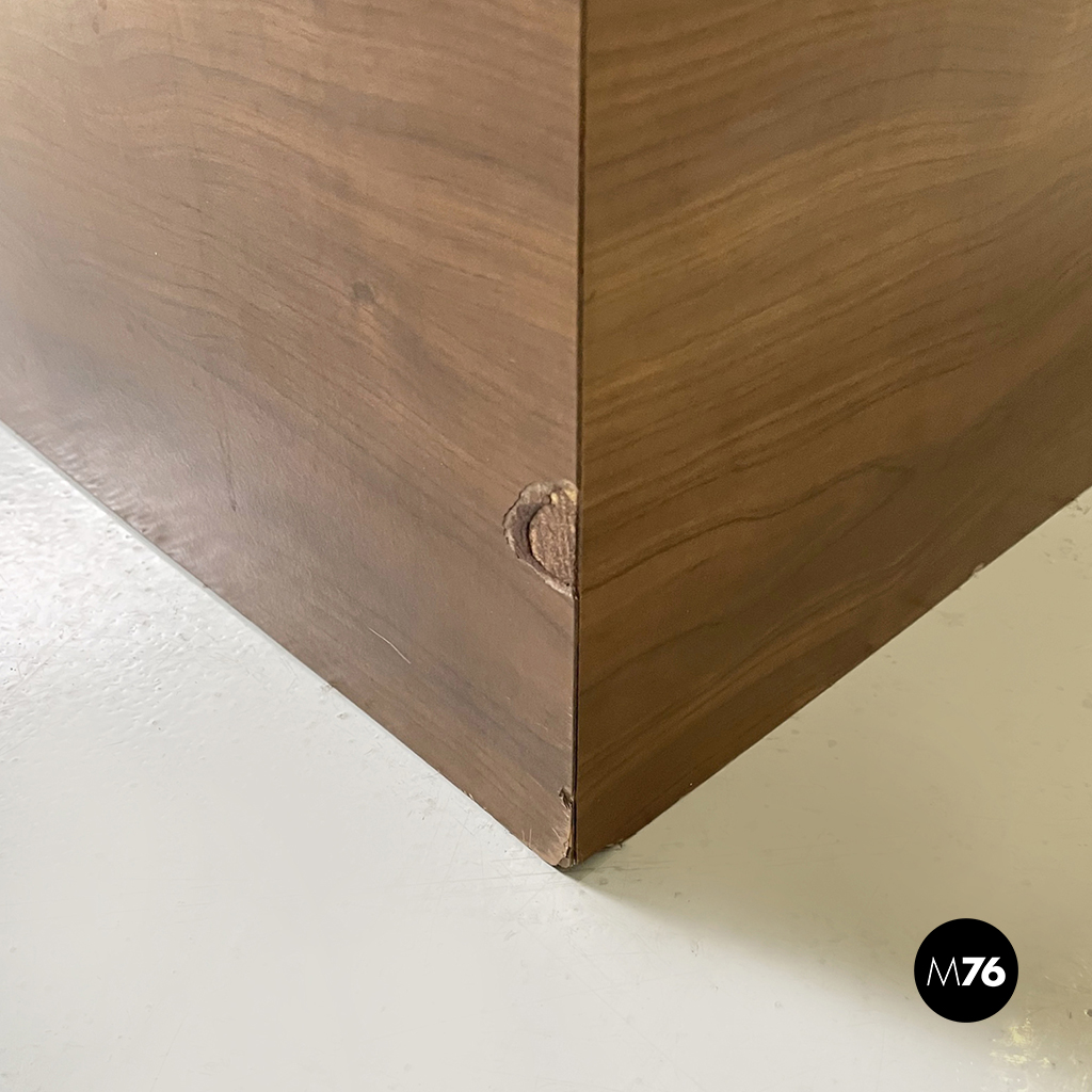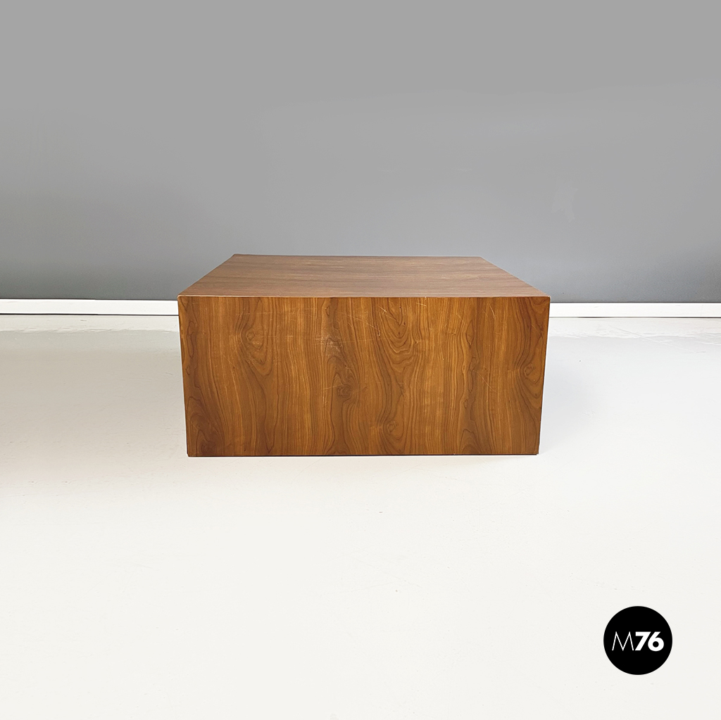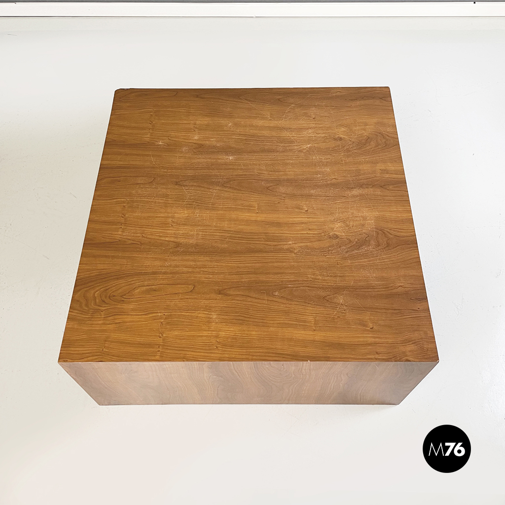 Piedistallo, espositore o tavolo da caffè con forma a parallelepipedo in legno, rivestita col suo originale laminato color noce.