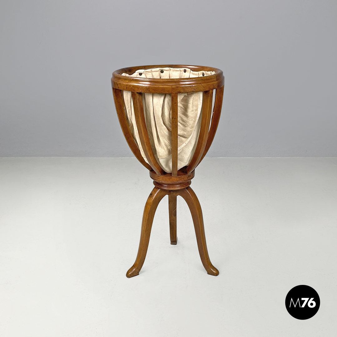 Piedistallo porta gomitoli in legno e tessuto, 1800 ca.