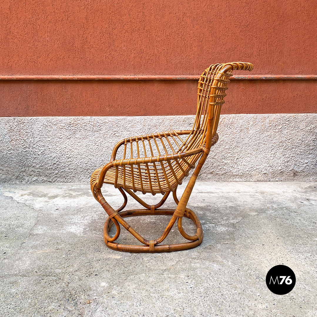 Poltrona B4 e pouf in rattan, 1950 ca.