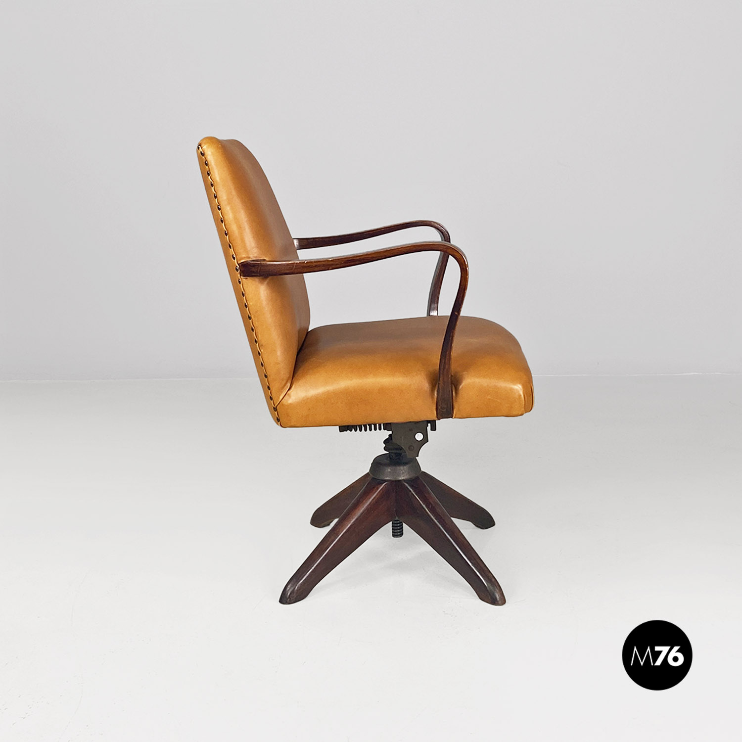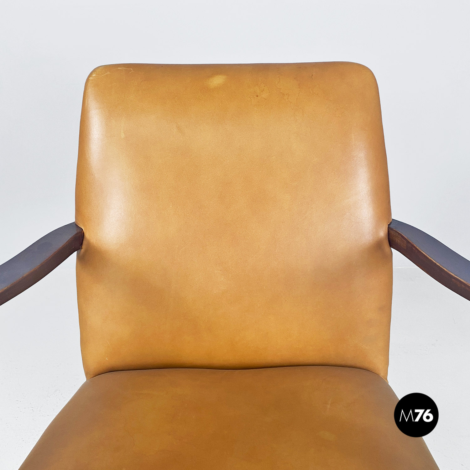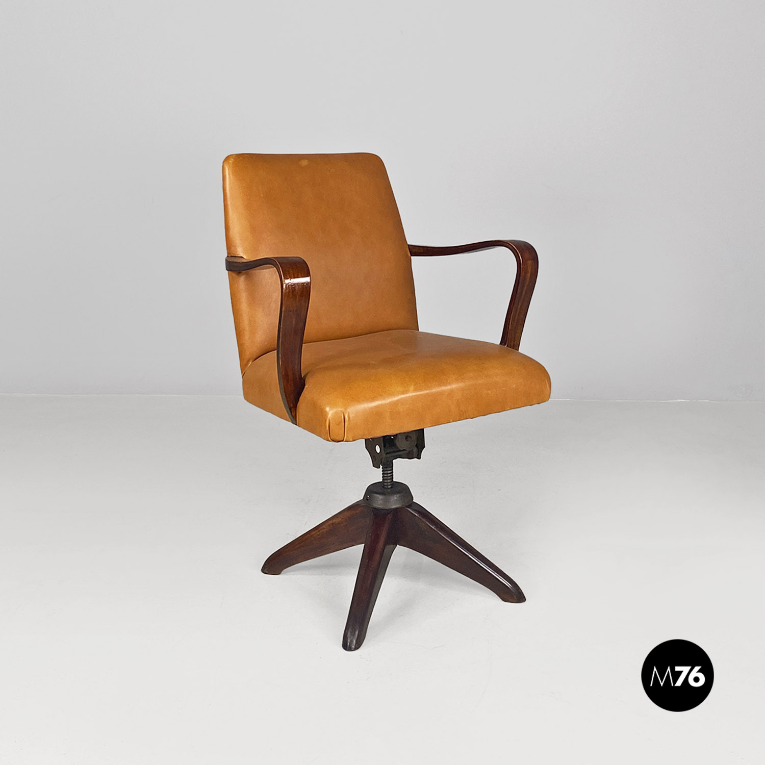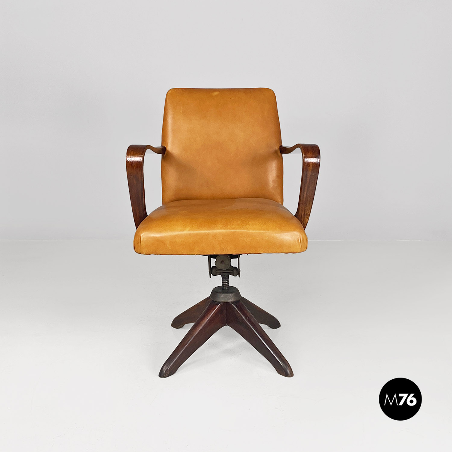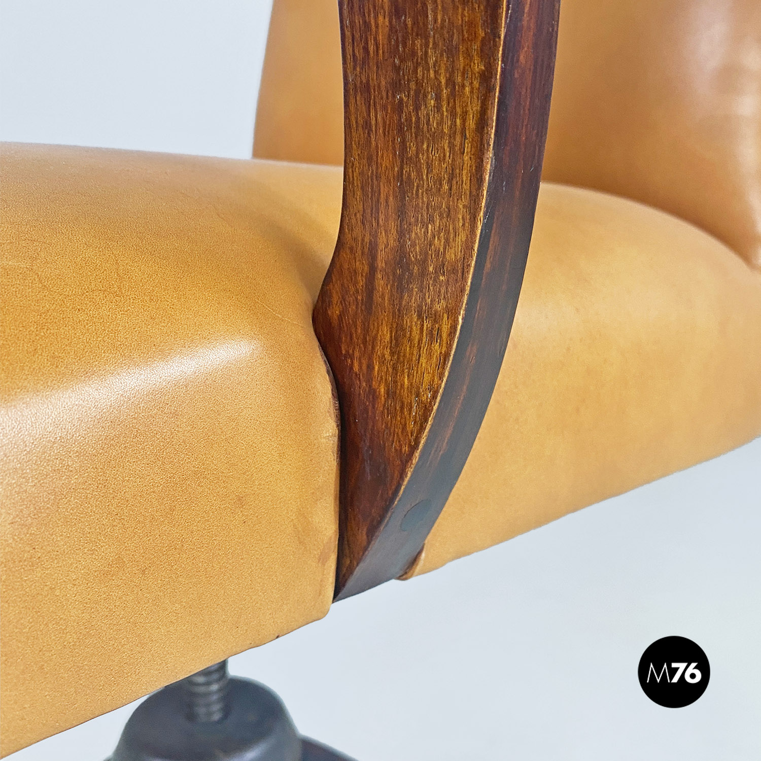 Poltrona da ufficio in pelle marrone e legno, 1960 ca.