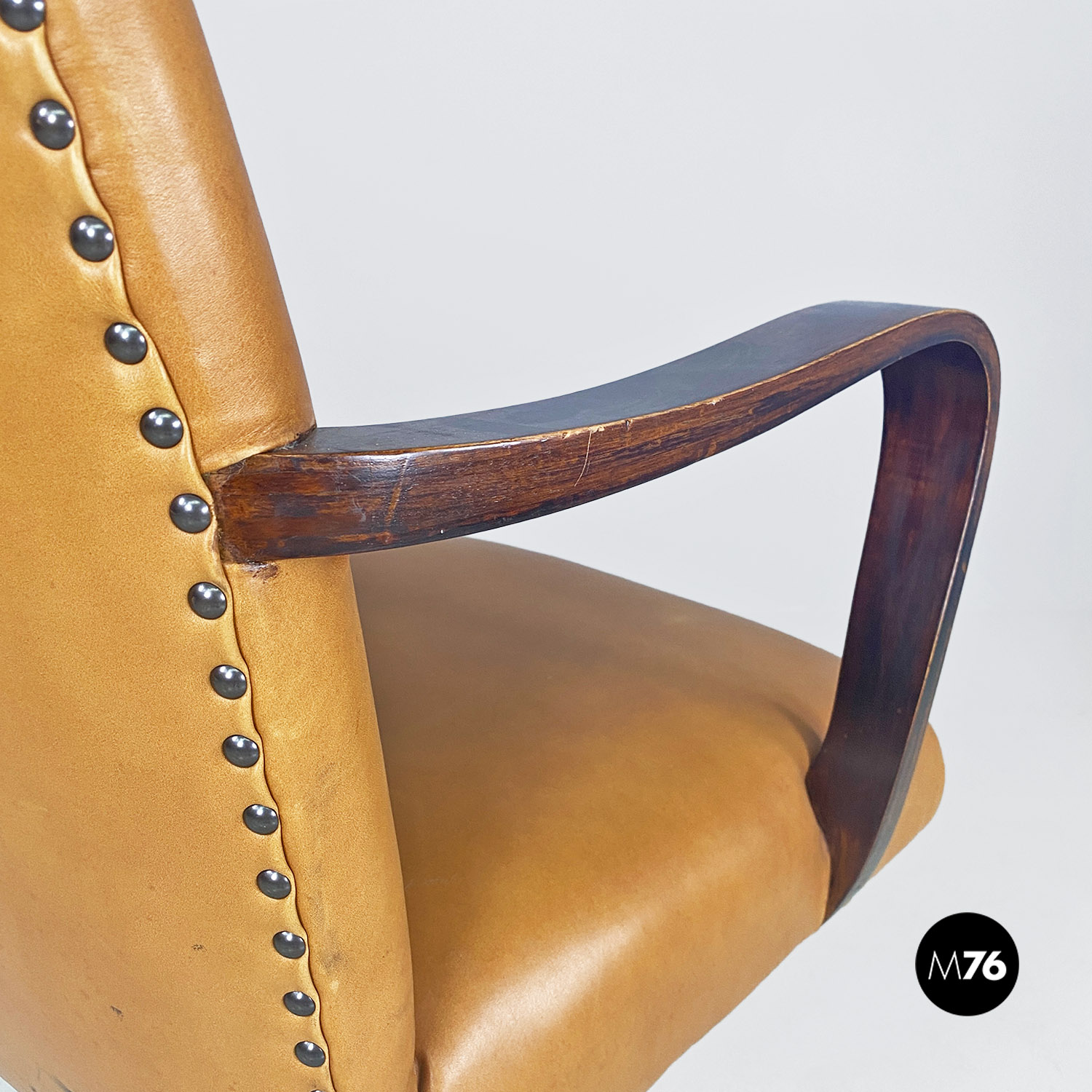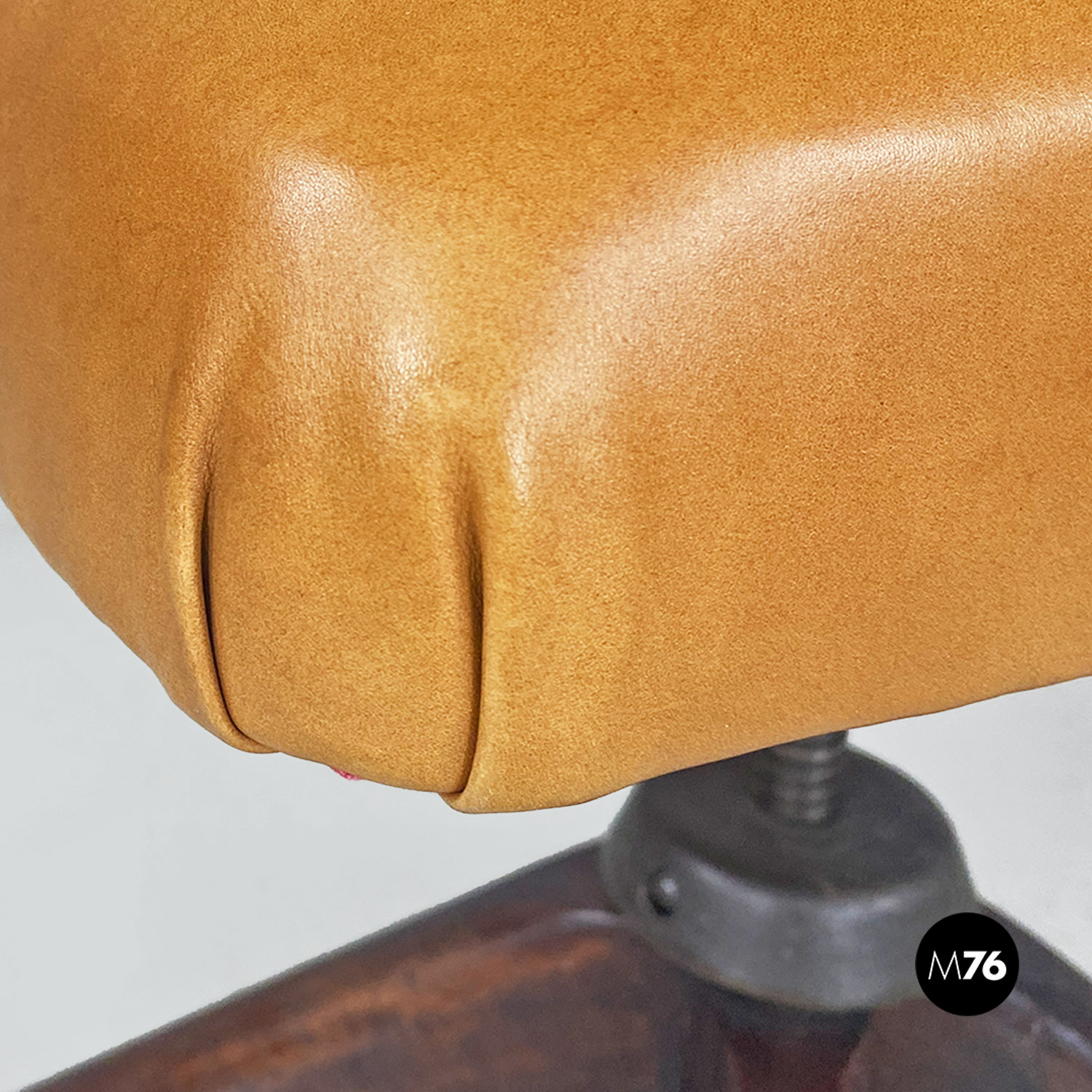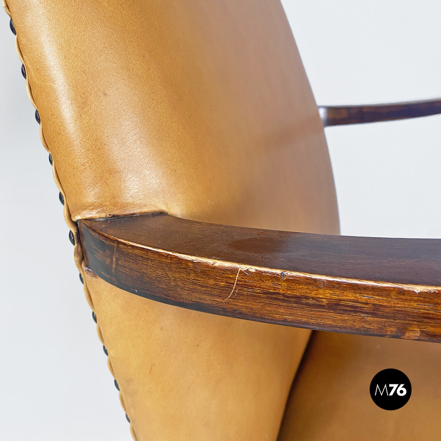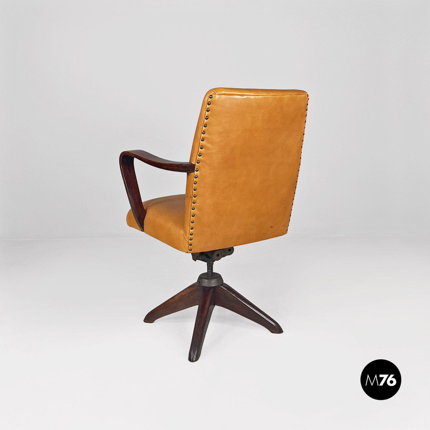 Poltrona da ufficio in pelle marrone e legno, 1960 ca.