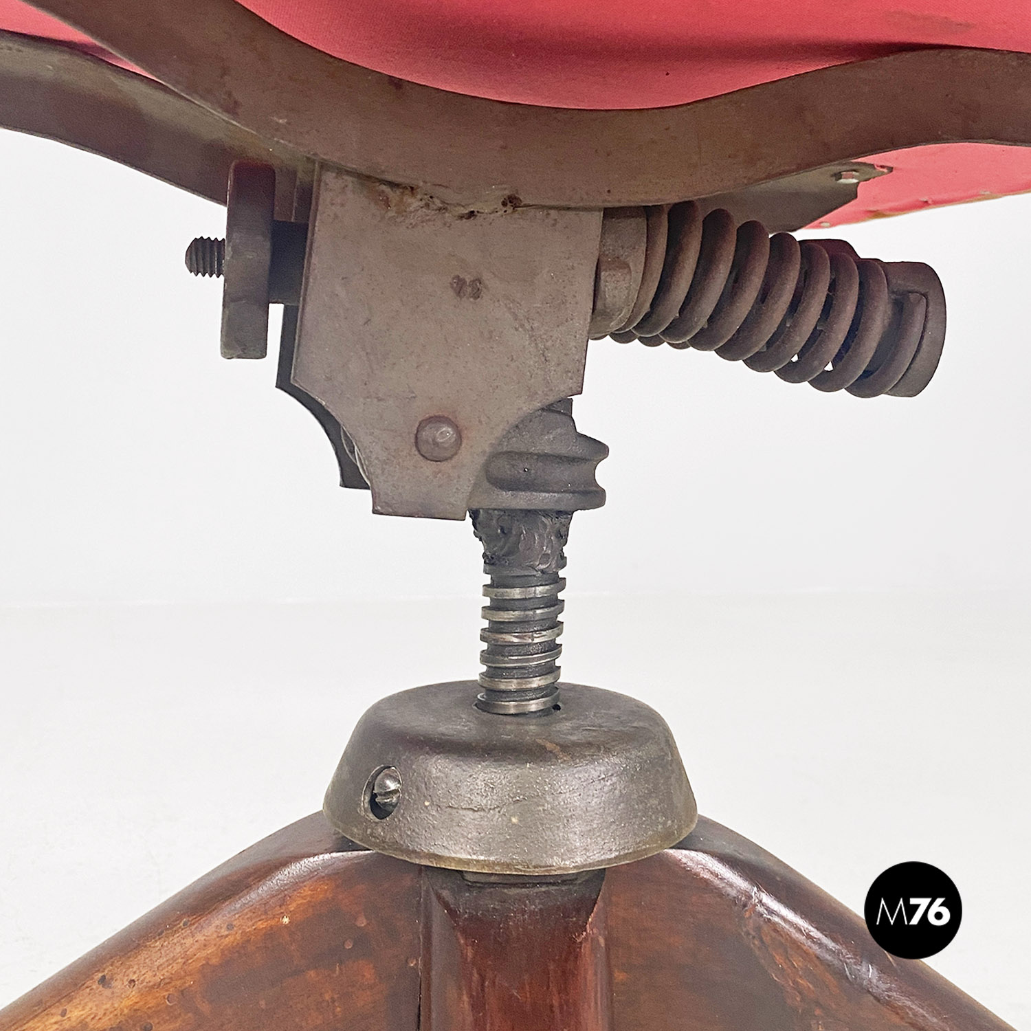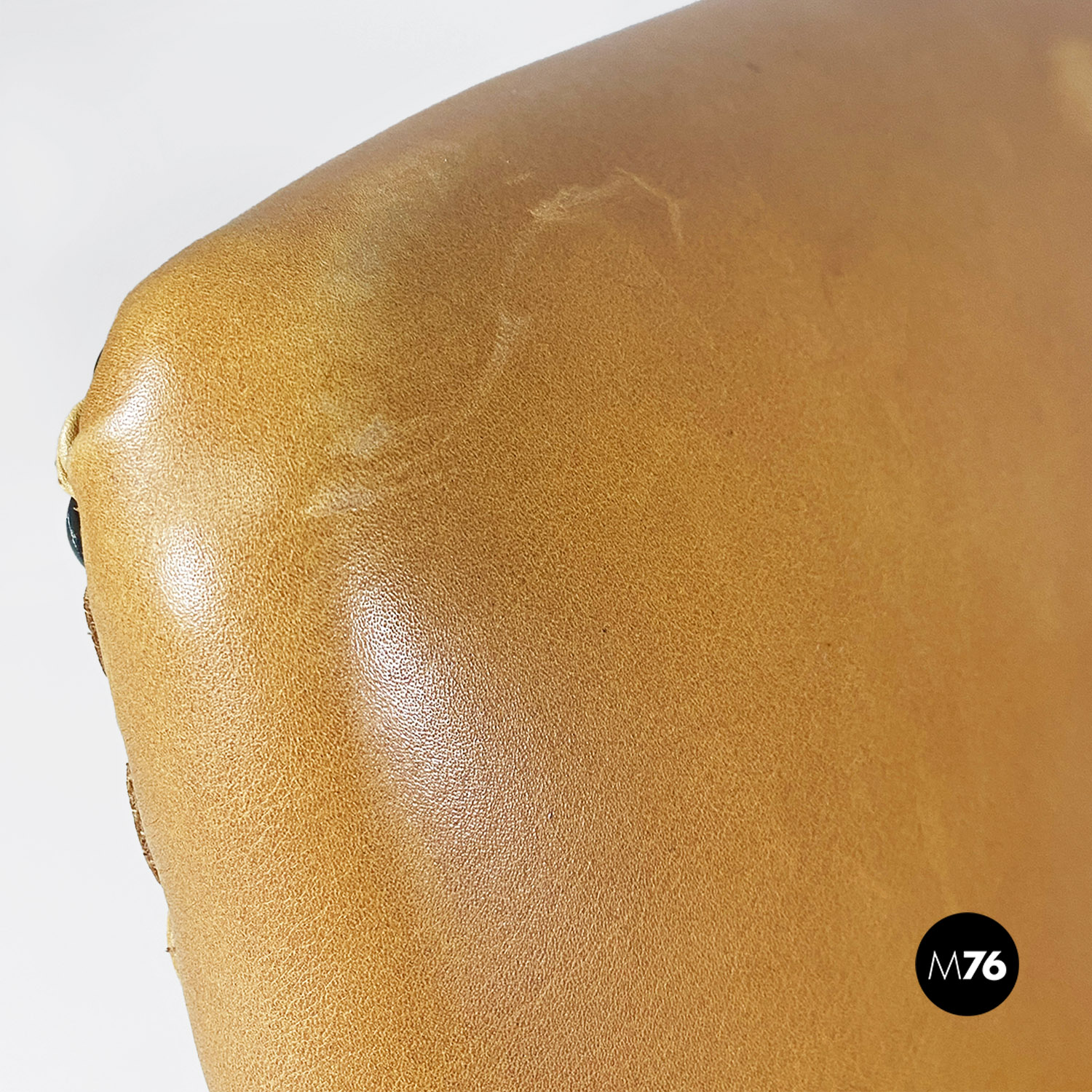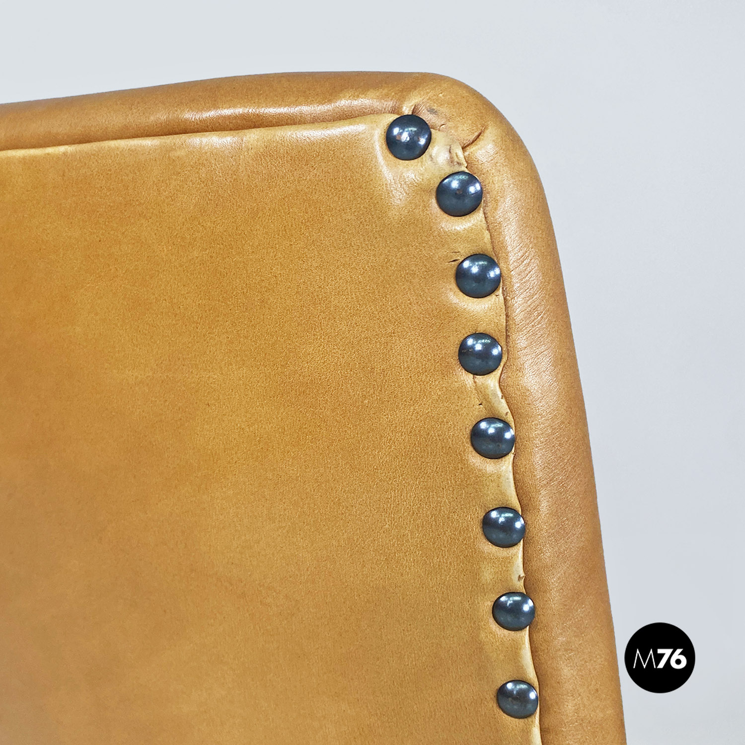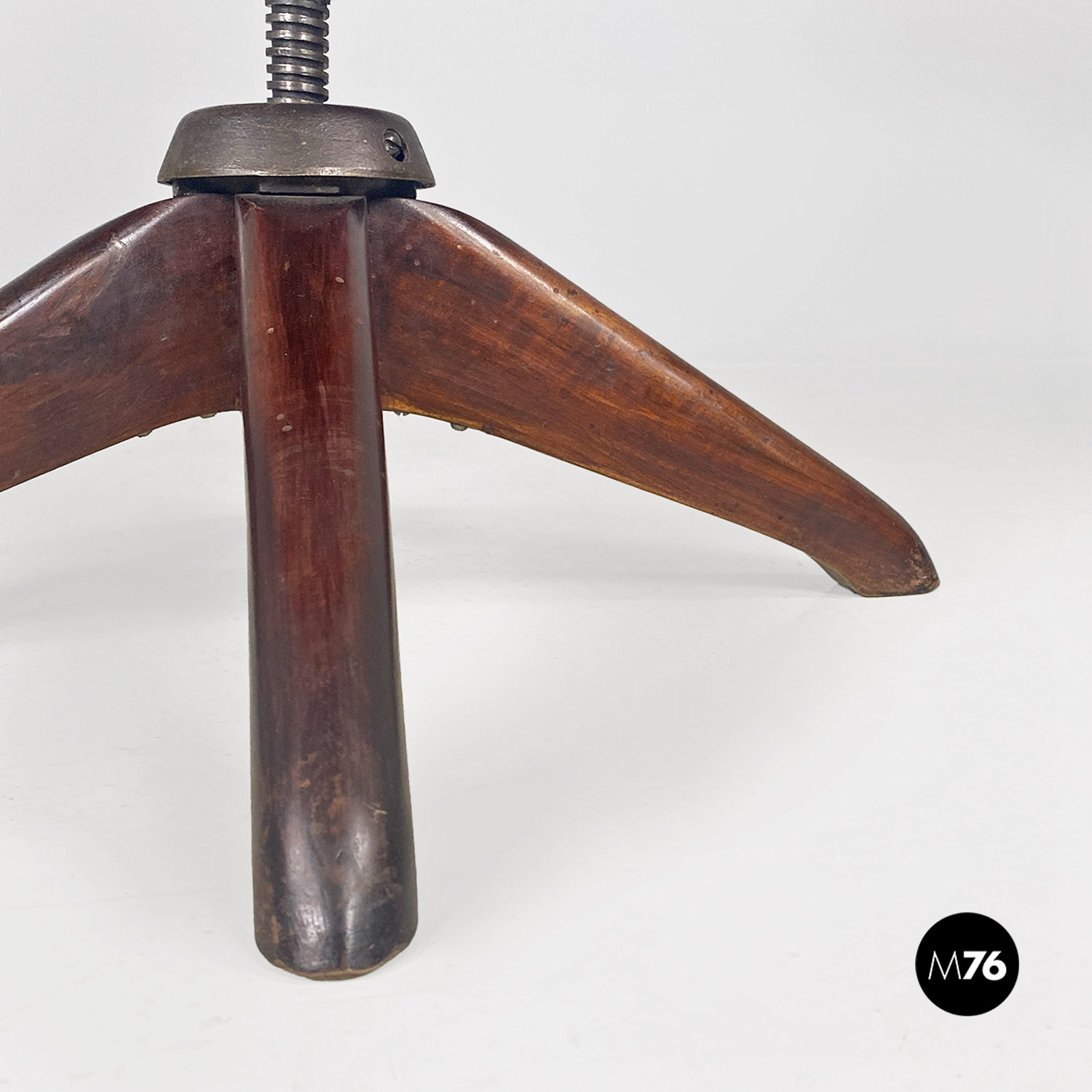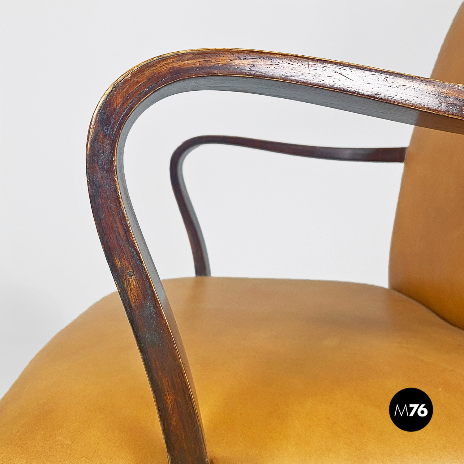 Poltrona da ufficio in pelle marrone e legno, 1960 ca.