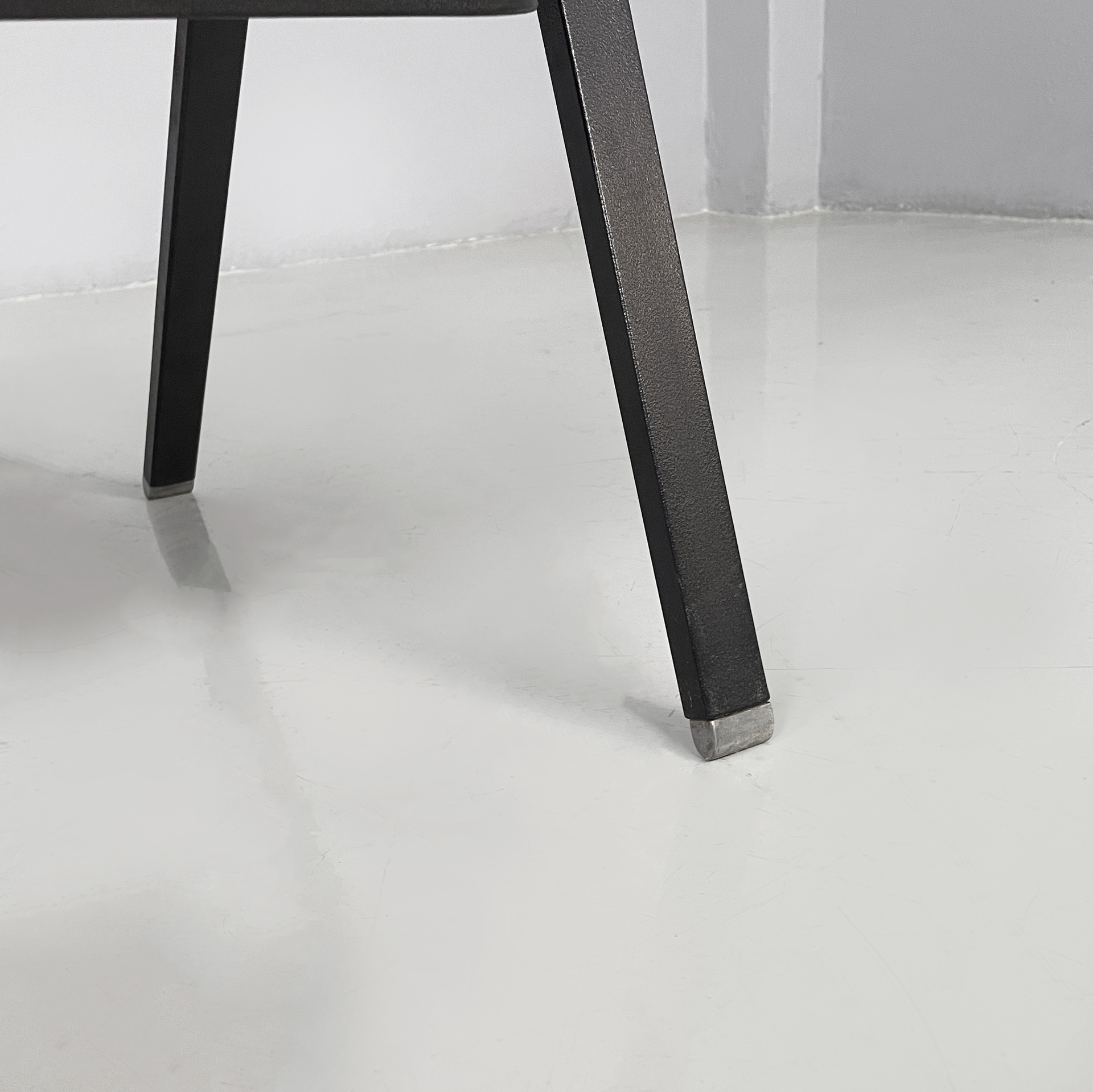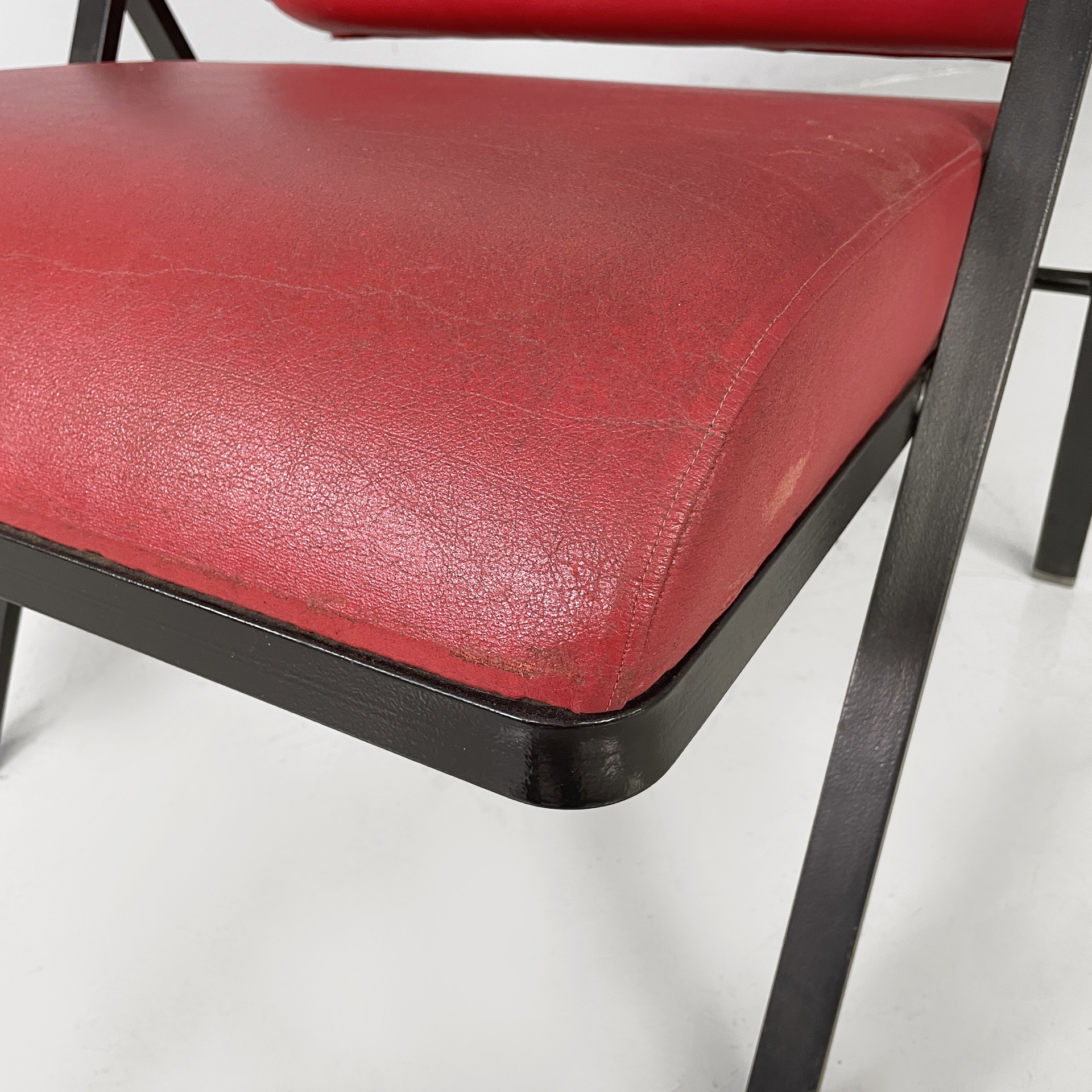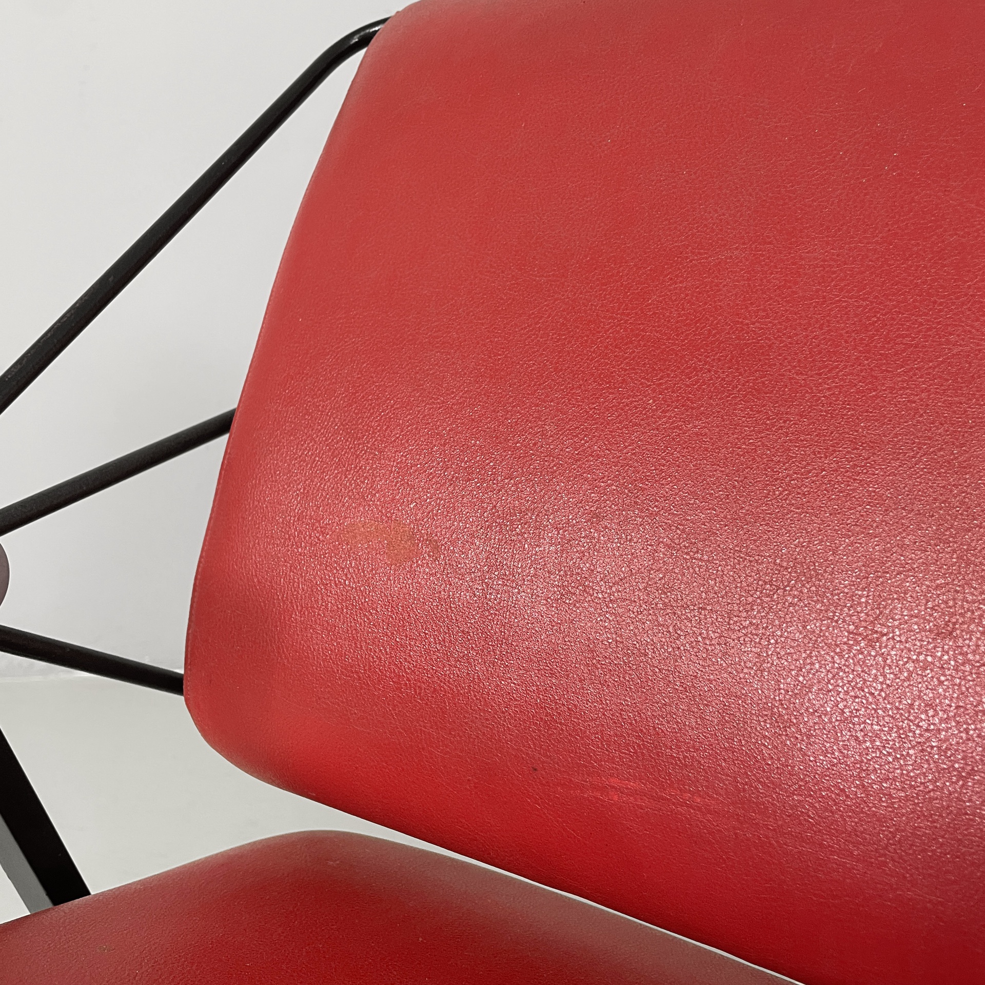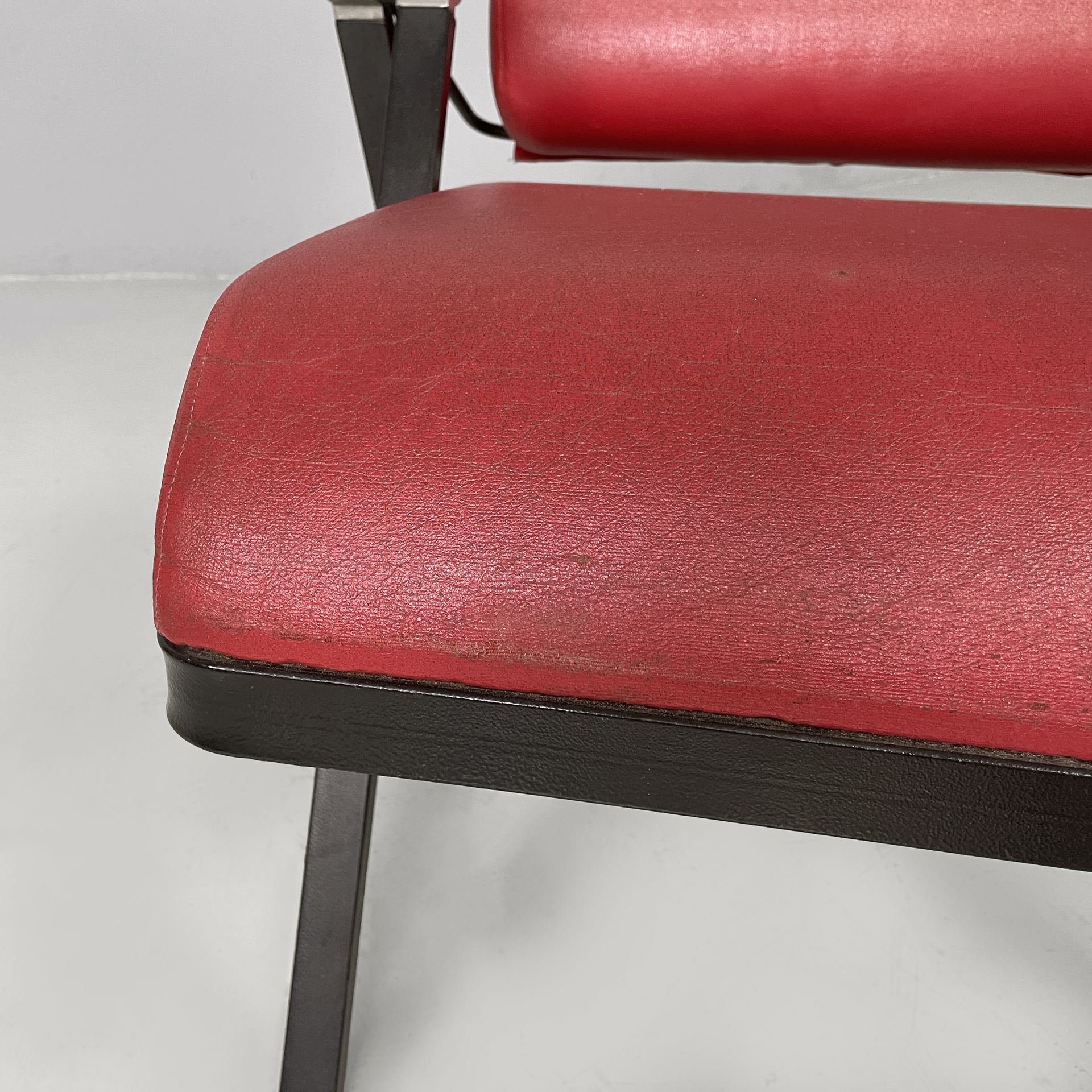 Poltrona con seduta e schienale squadrati, imbottiti e rivestiti in sky rosso. La struttura e le zampe sono in metallo e in metallo verniciato nero.