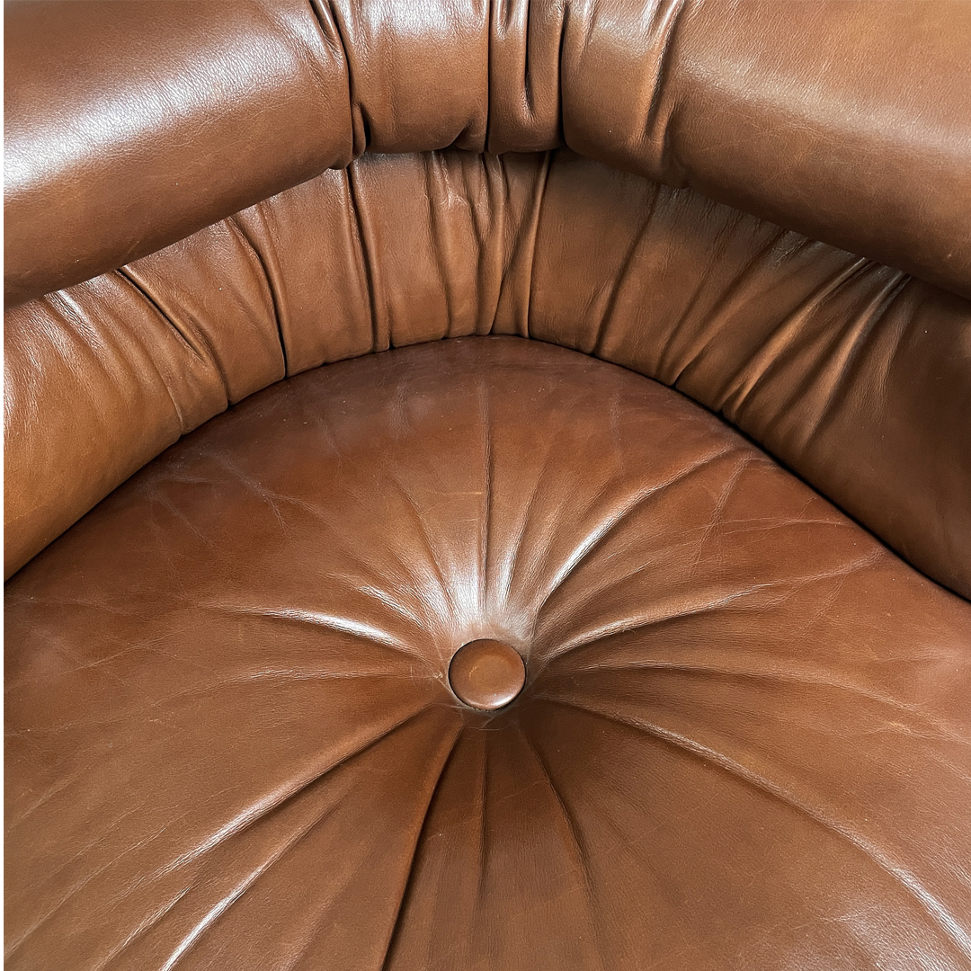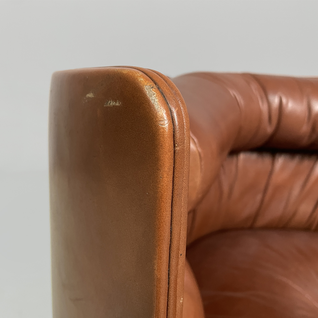 Prodotto da Poltrona Frau nel 1960 ca. e disegnata da Luigi Massoni. Logo impresso nella pelle e sotto la seduta.