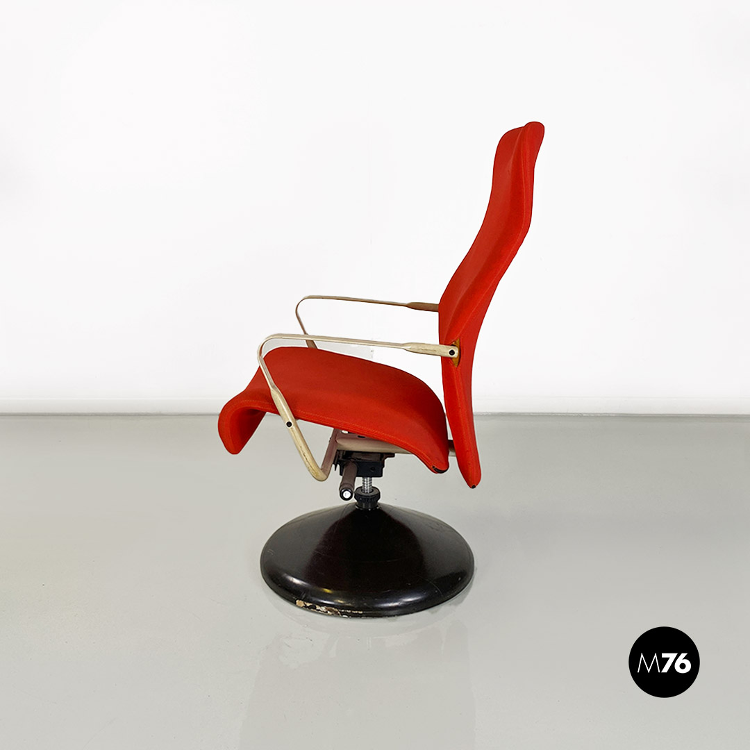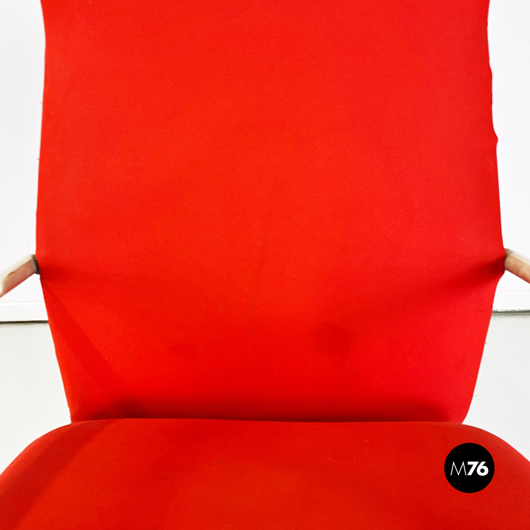 Poltrona girevole in tessuto rosso, 1980 ca.