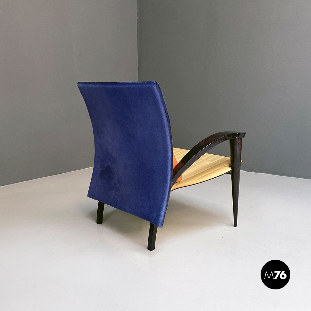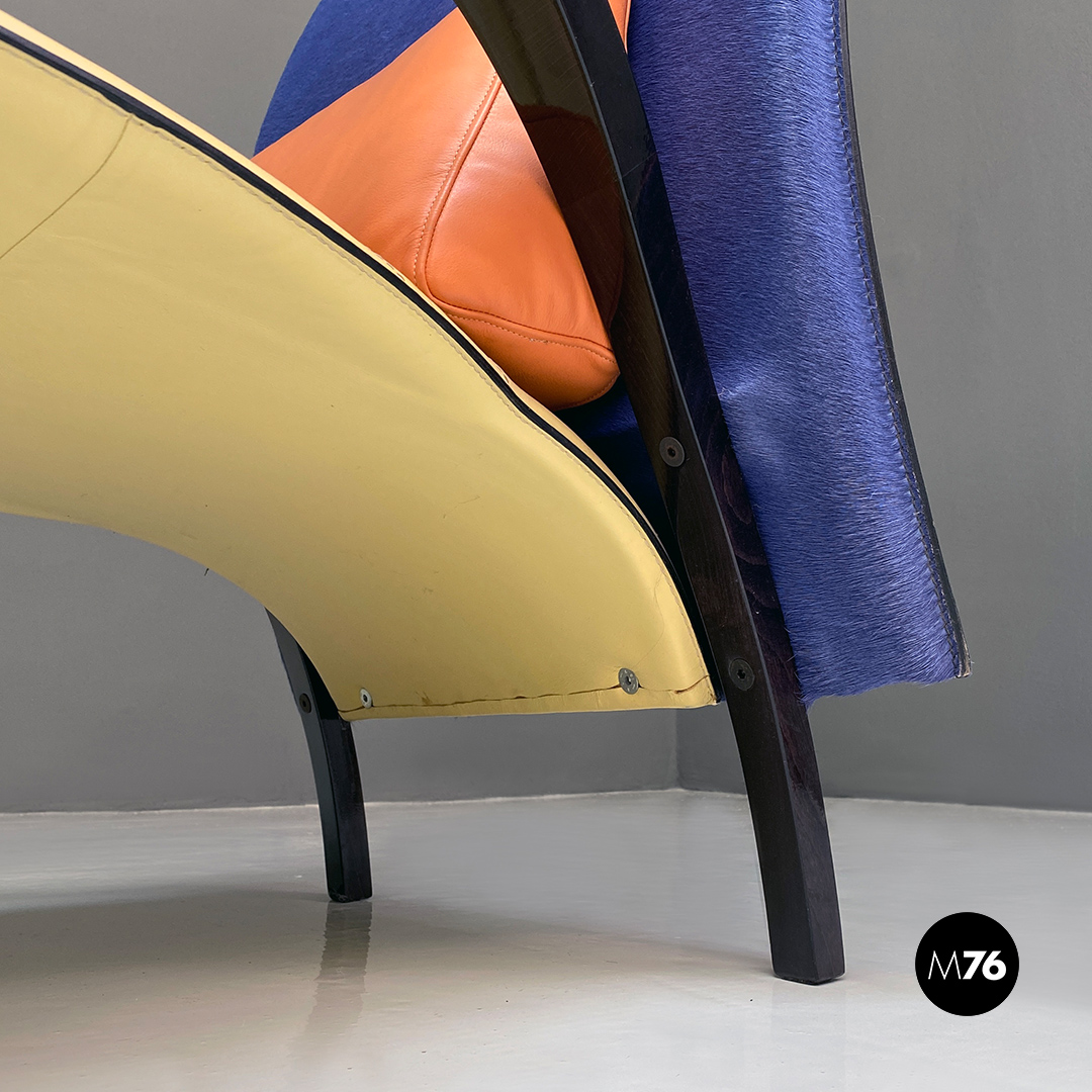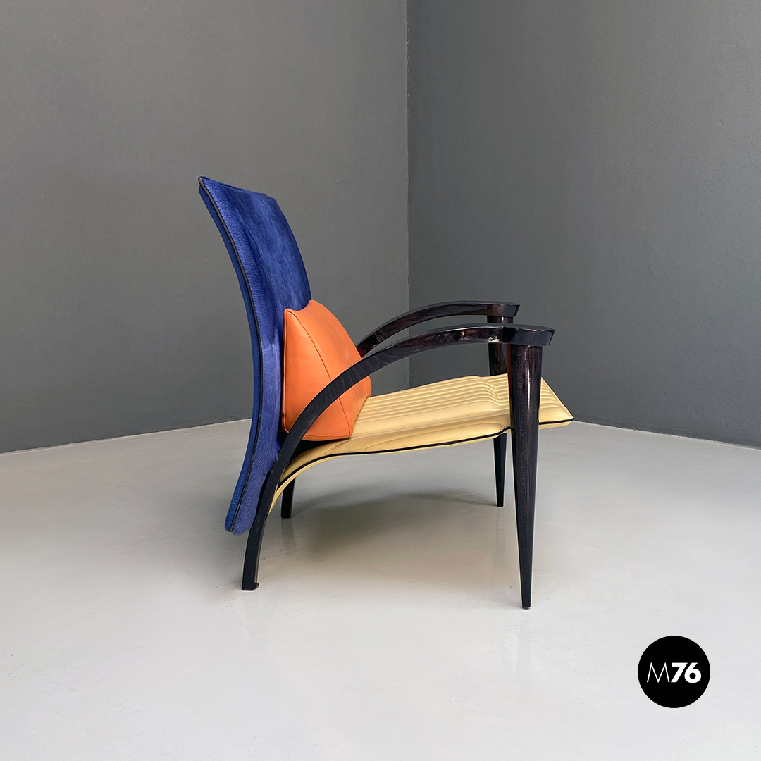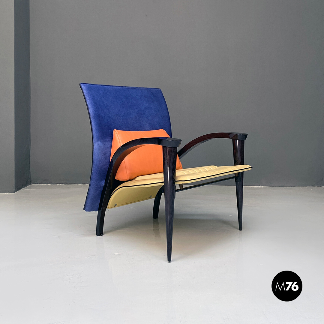 Poltrona in legno e pelle multicolore, 1980 ca.