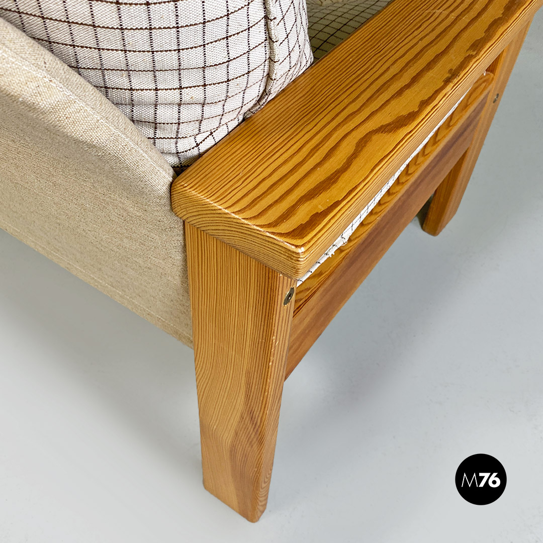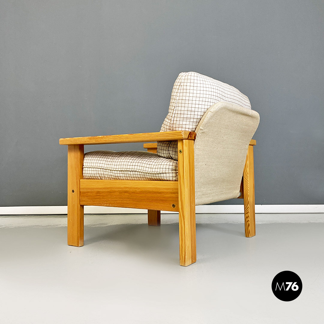 Poltrona in legno e tessuto a quadretti, 1970 ca.