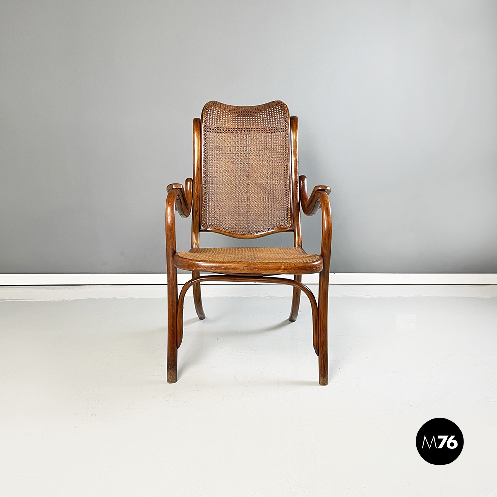 Poltrona in legno scuro e paglia di Vienna, primi del 1900 ca.