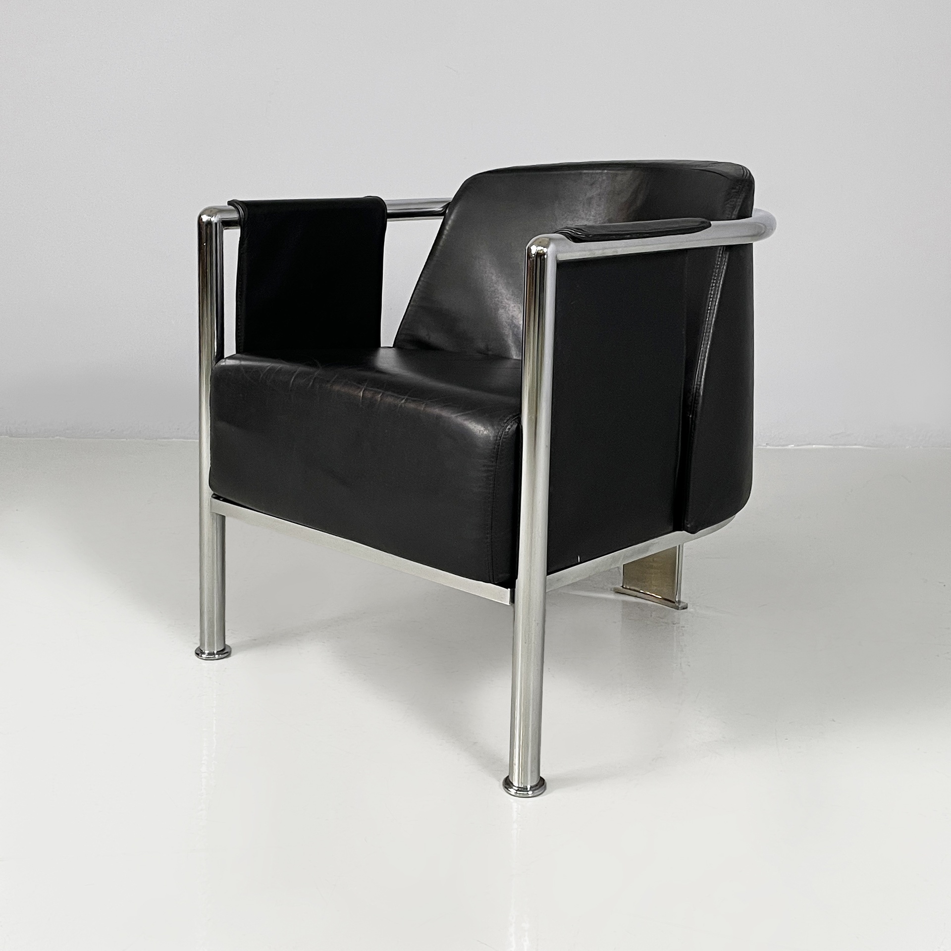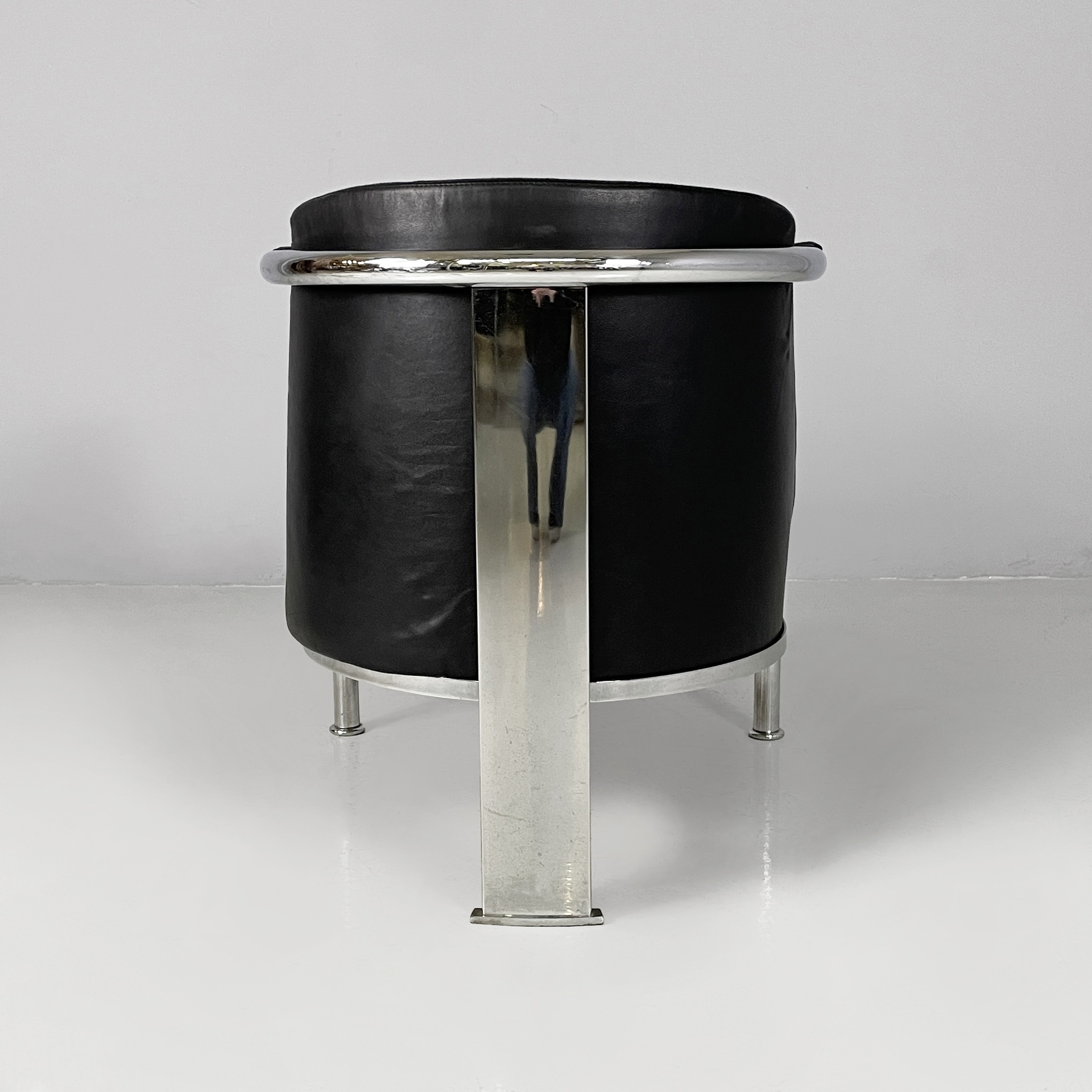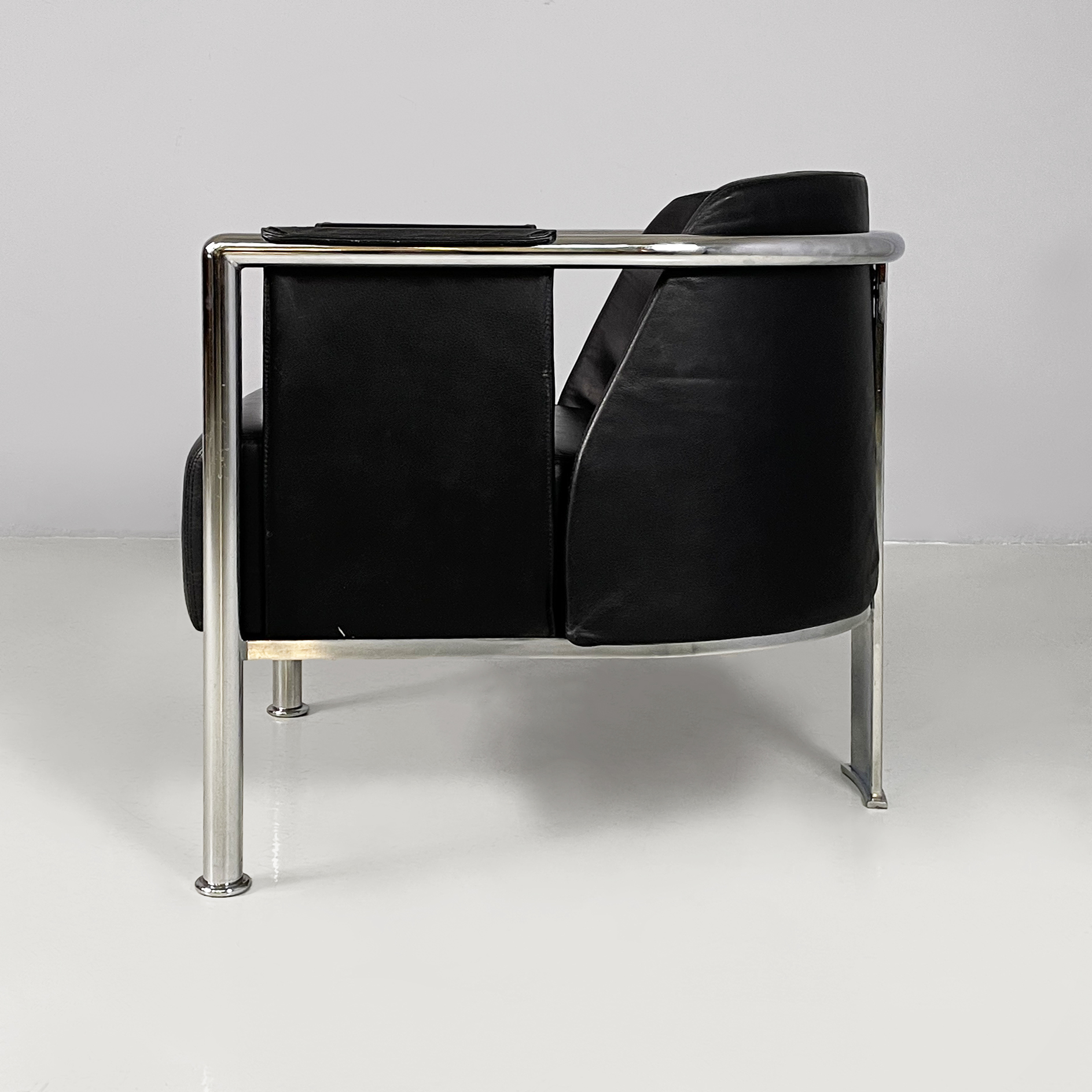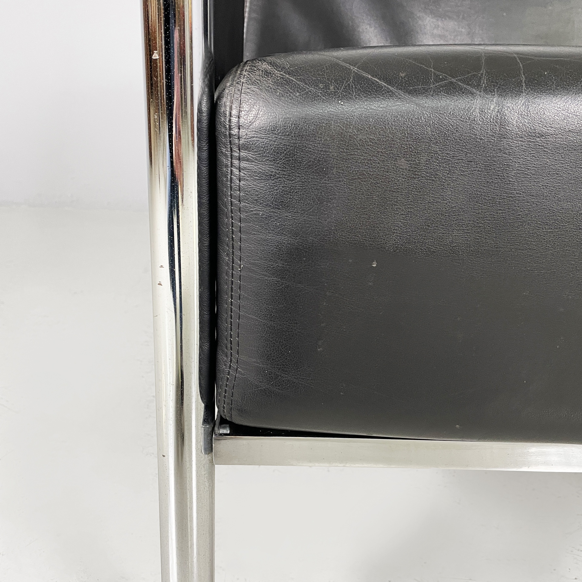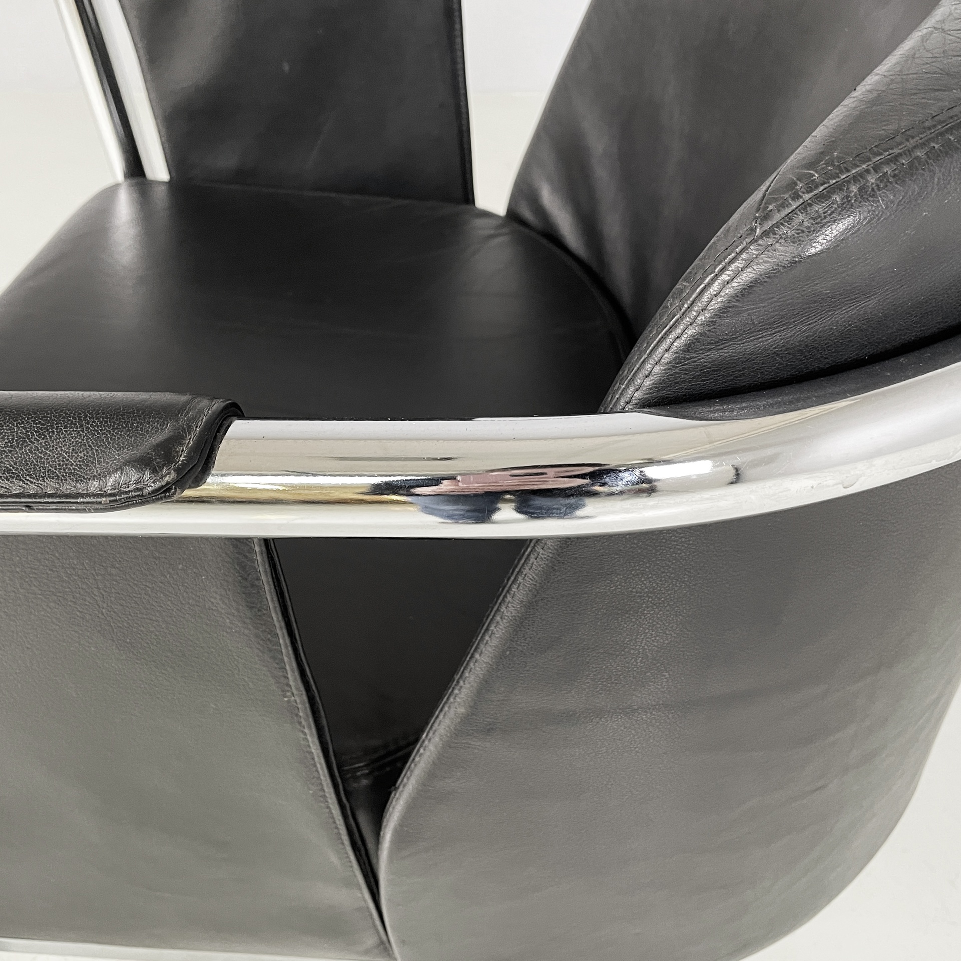 Poltrona in pelle nera e acciaio, 1980 ca.