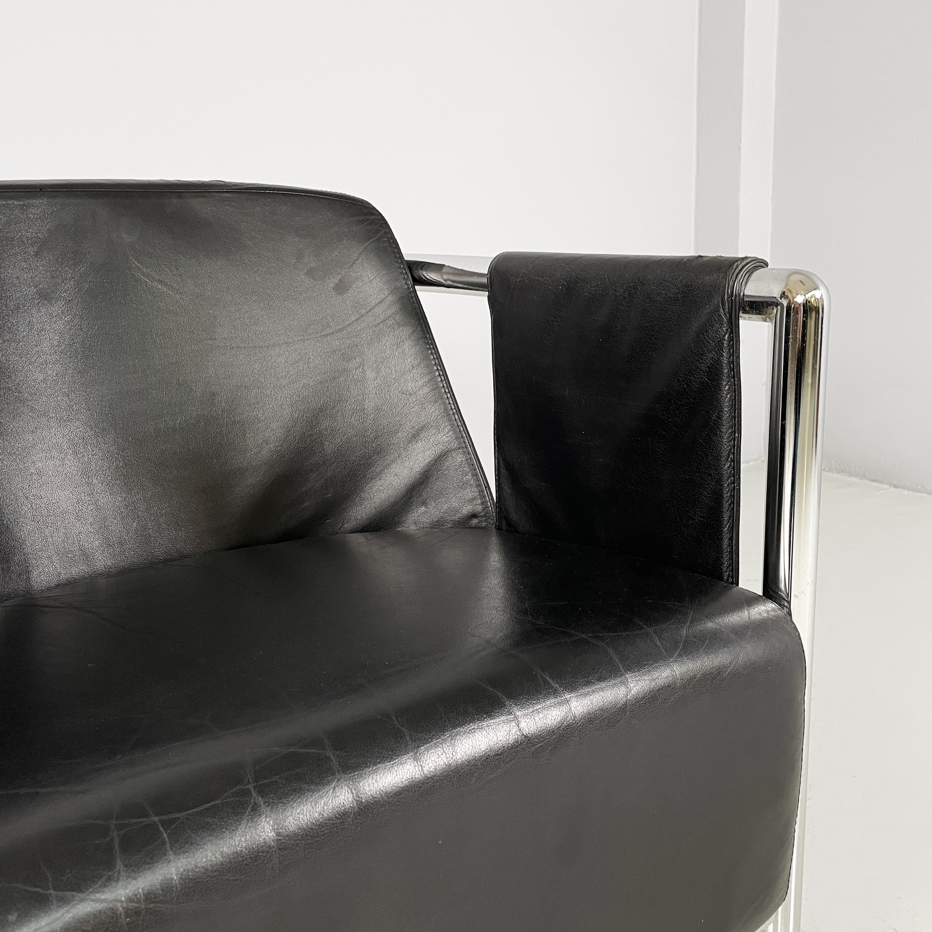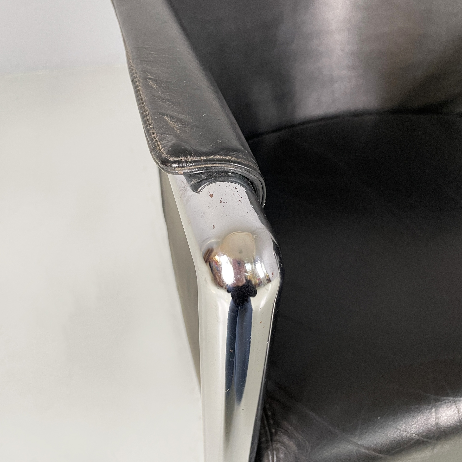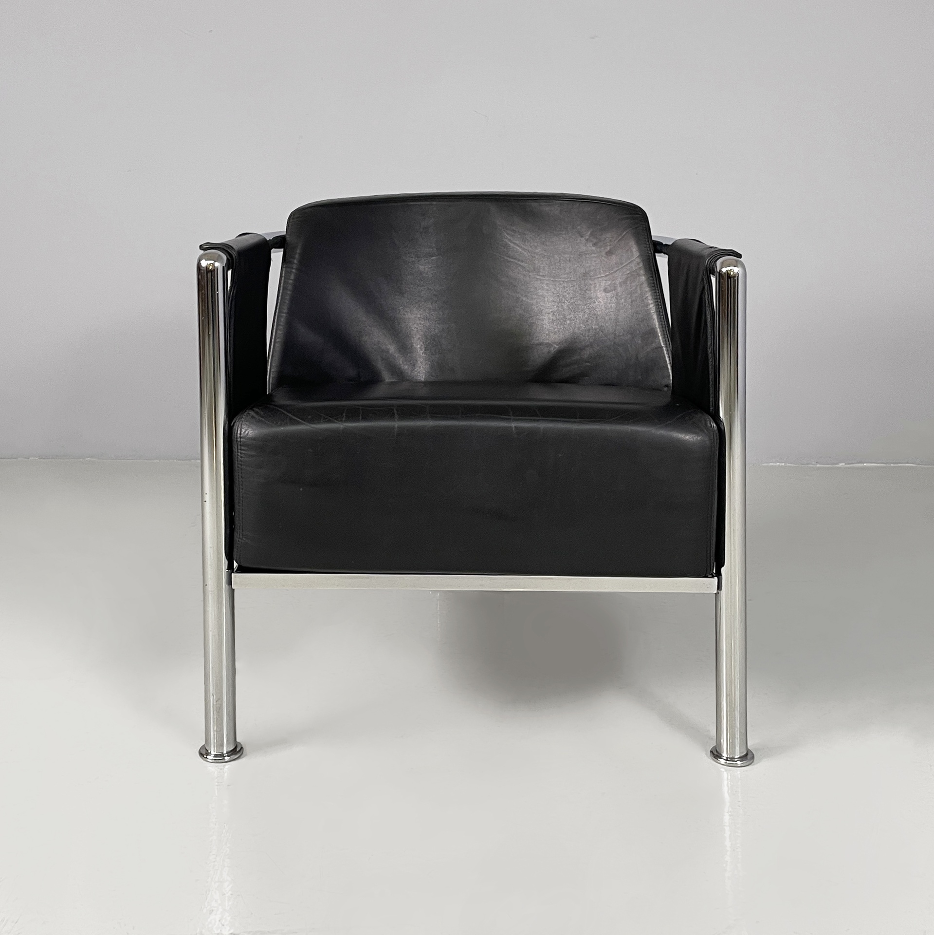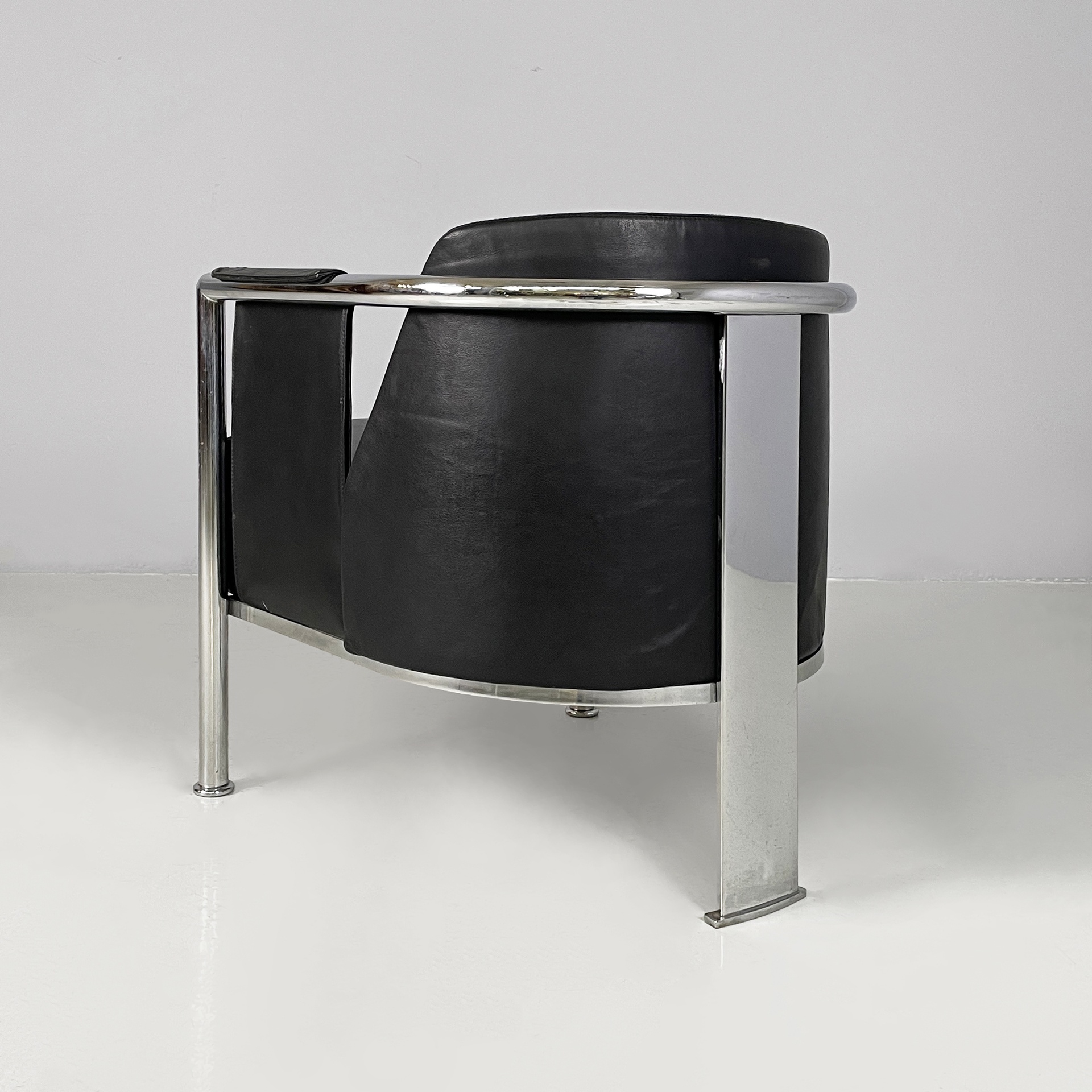 Poltrona in pelle nera e acciaio, 1980 ca.