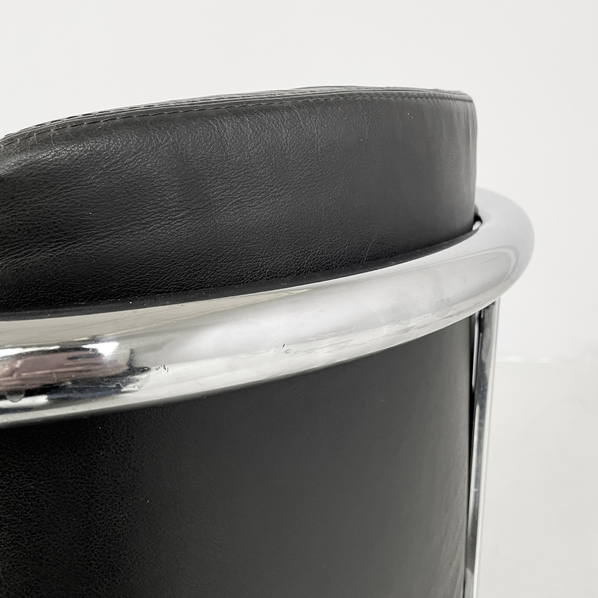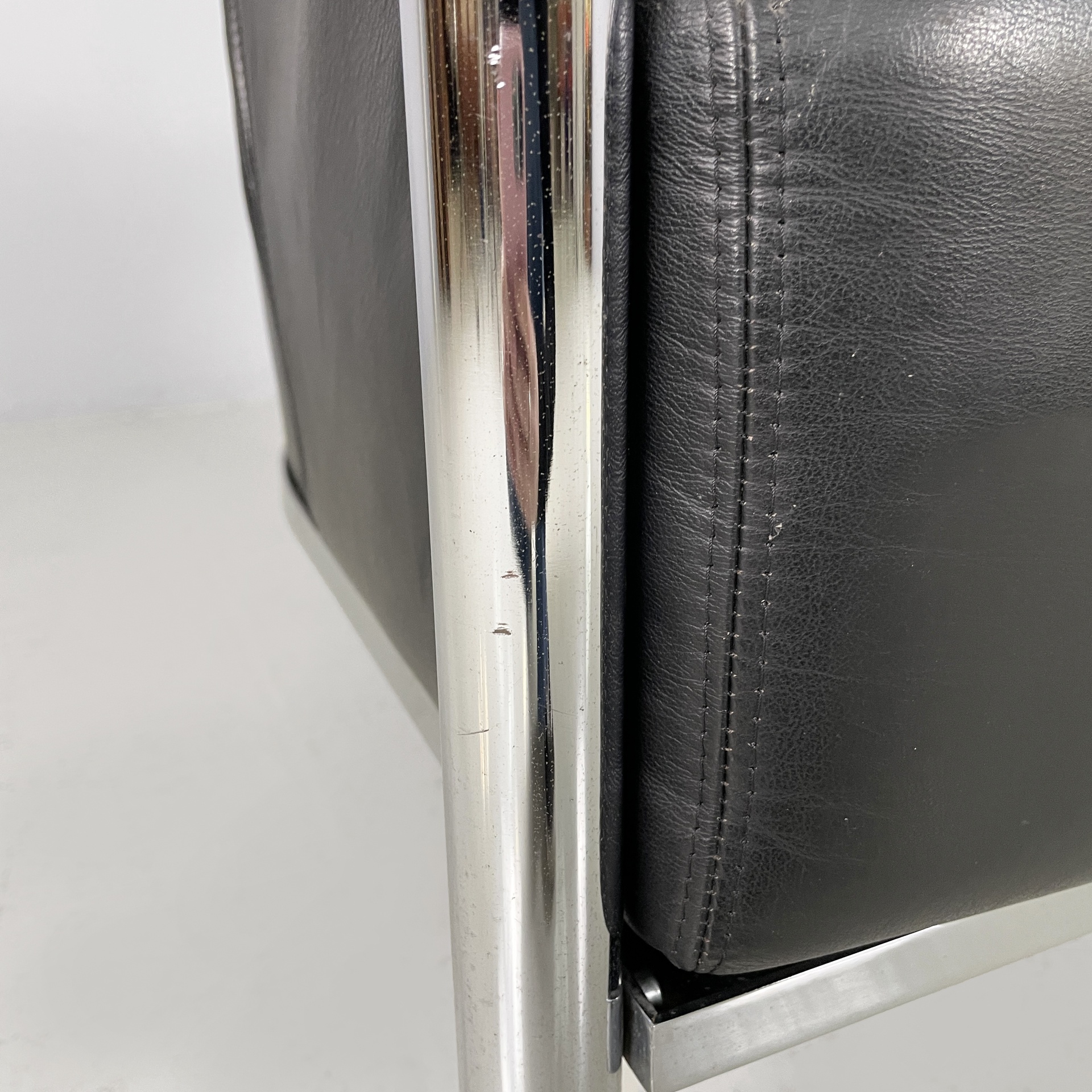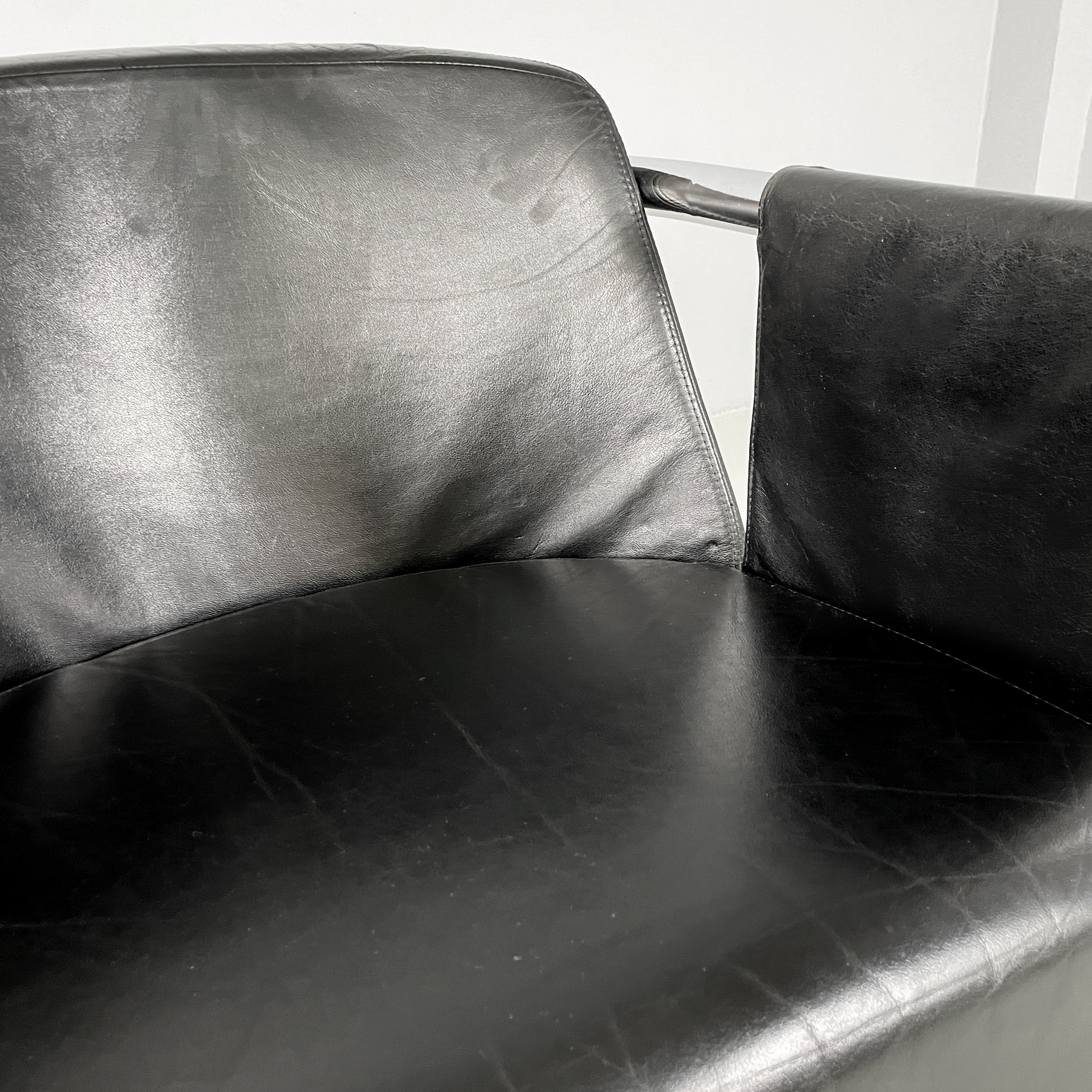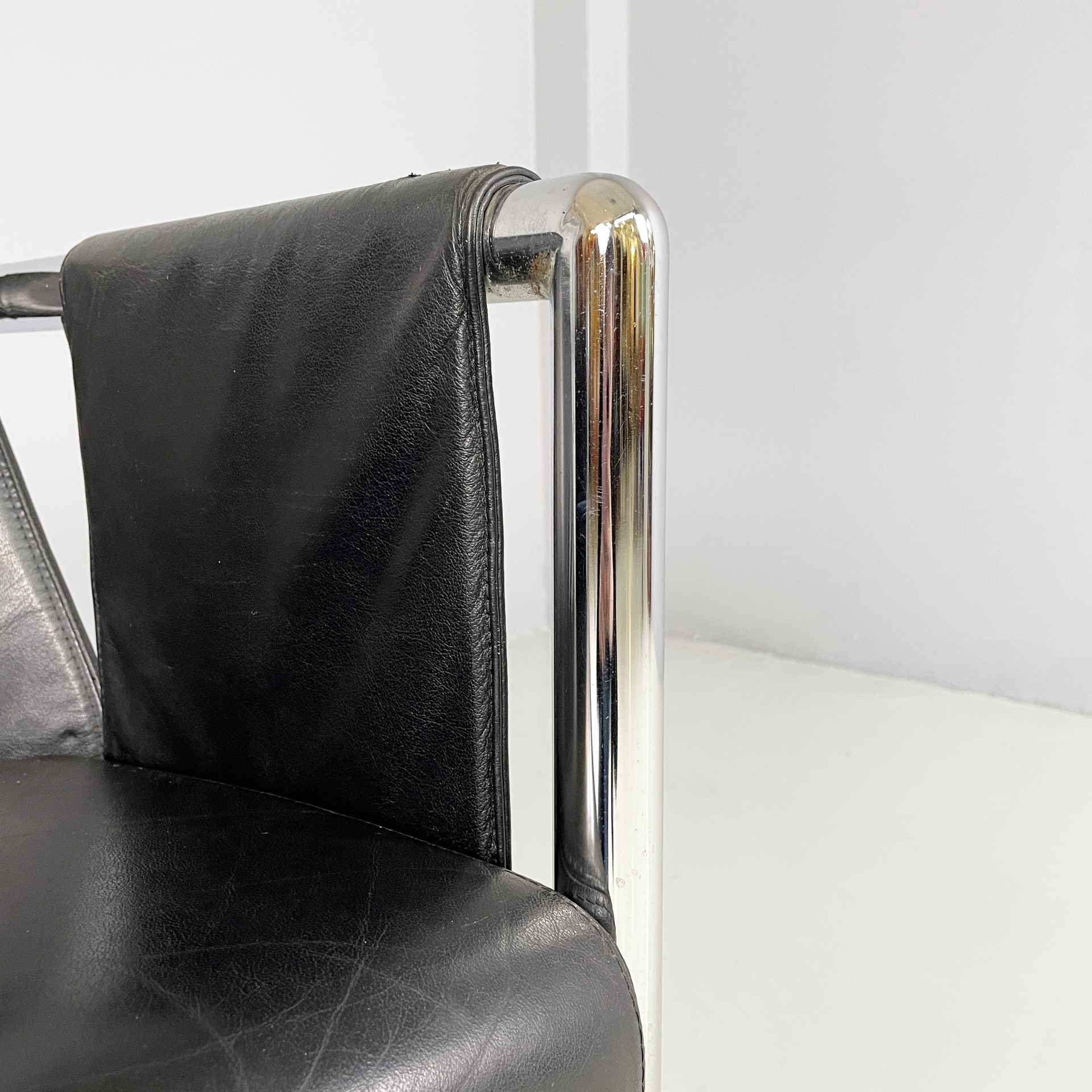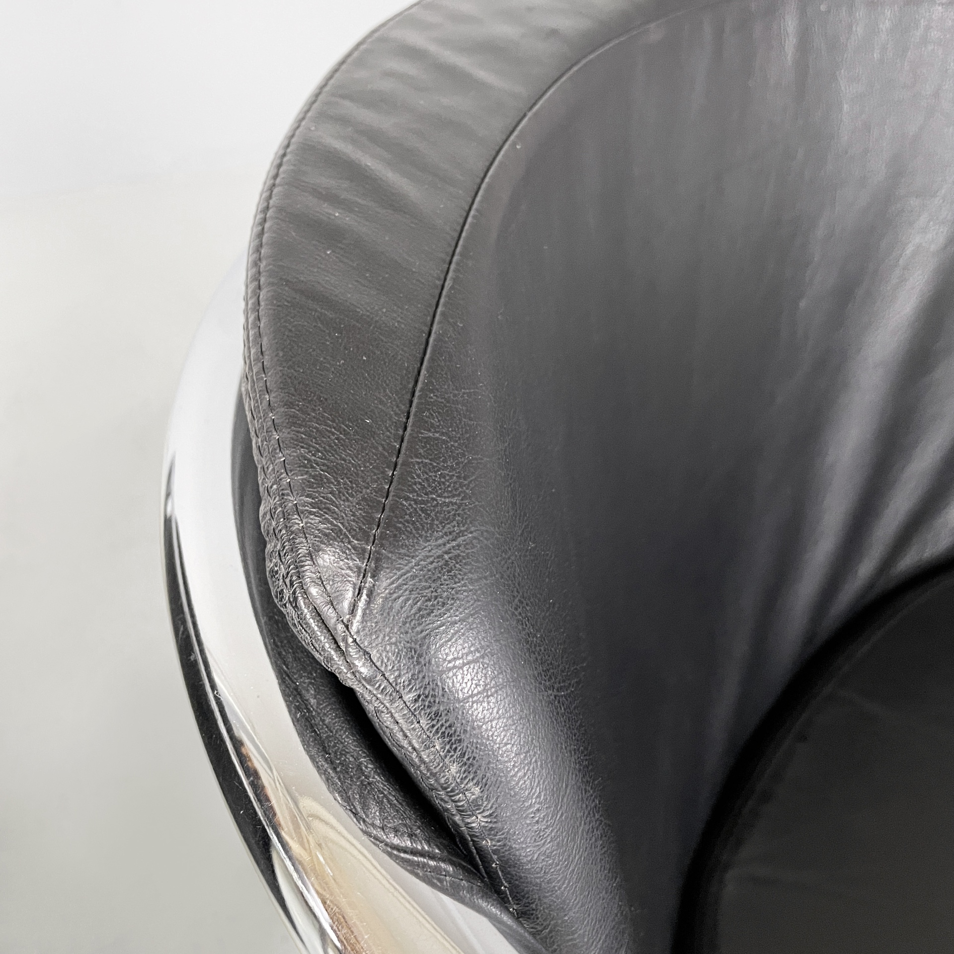 Poltrona in pelle nera e acciaio, 1980 ca.