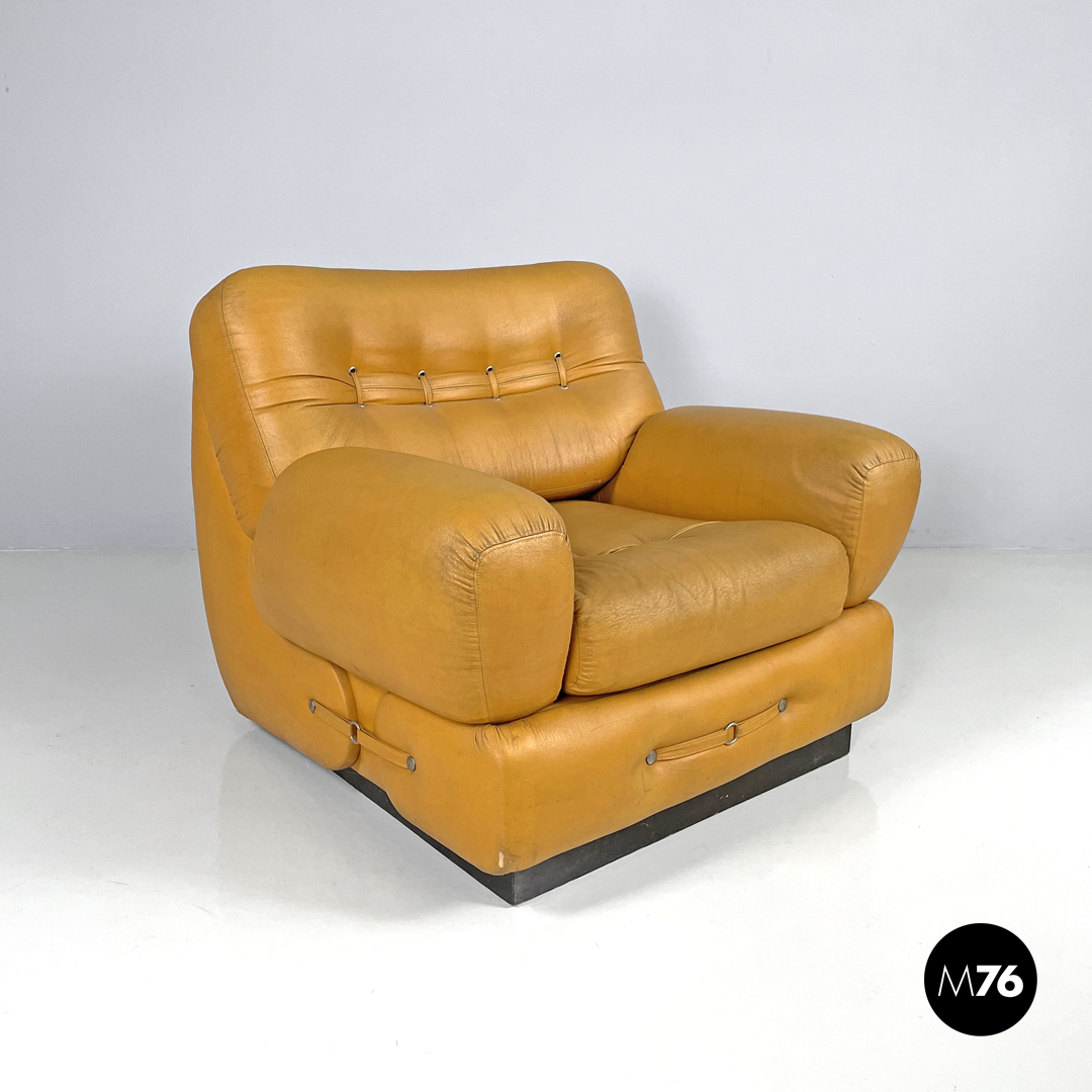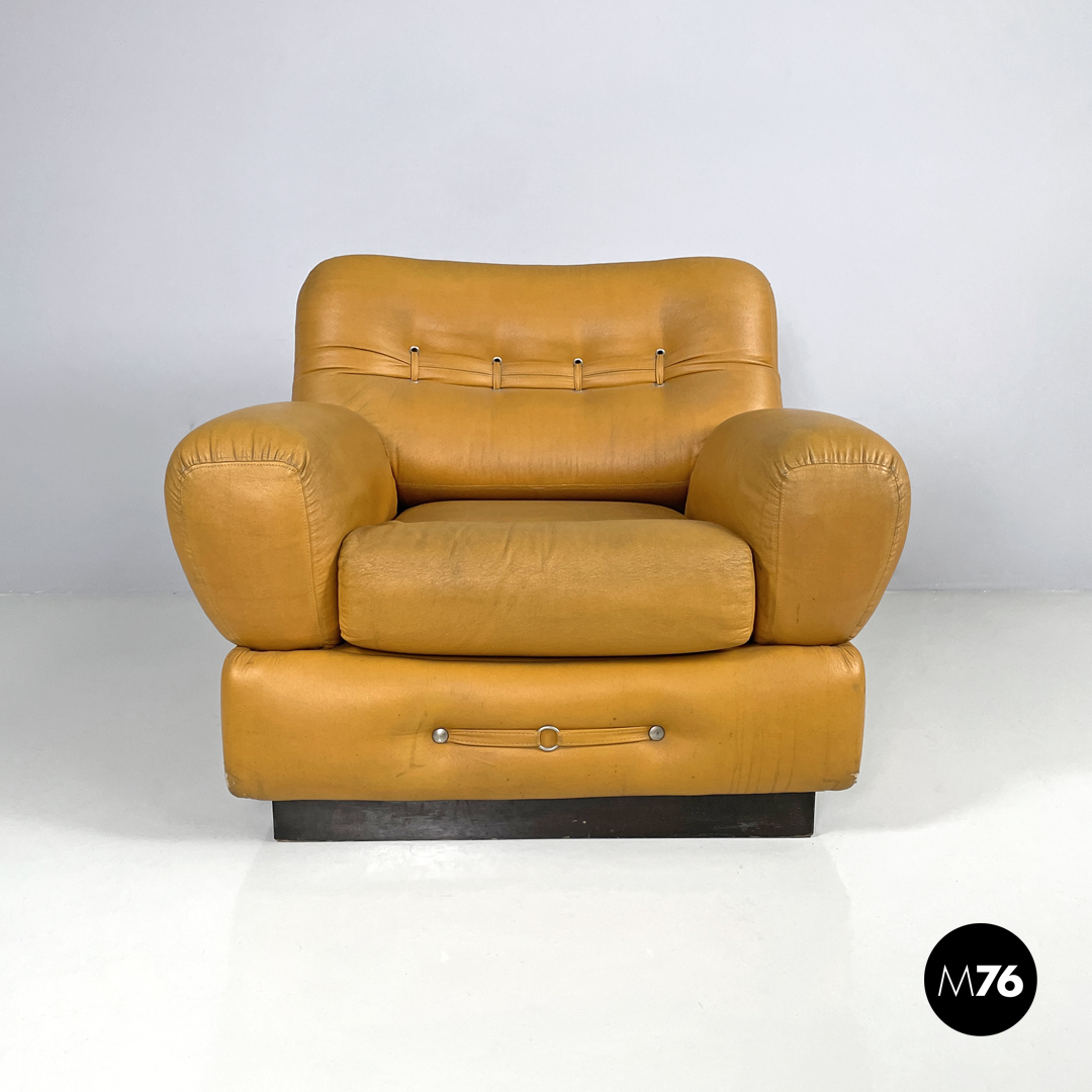 Poltrona in simil pelle giallo senape, 1970 ca.