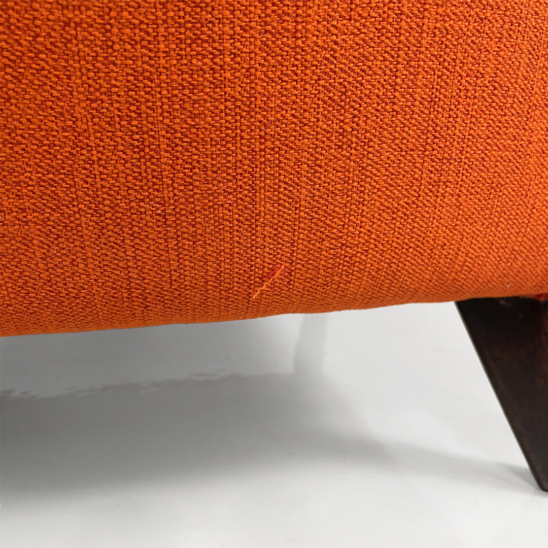Poltrona in tessuto arancione e legno, 1950 ca.