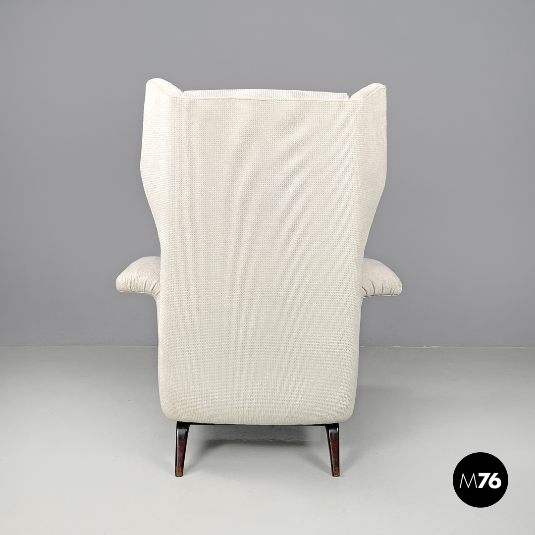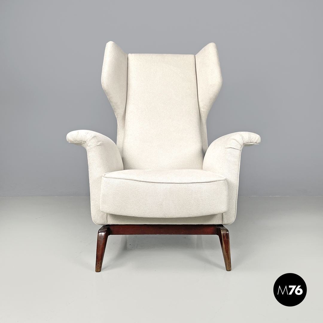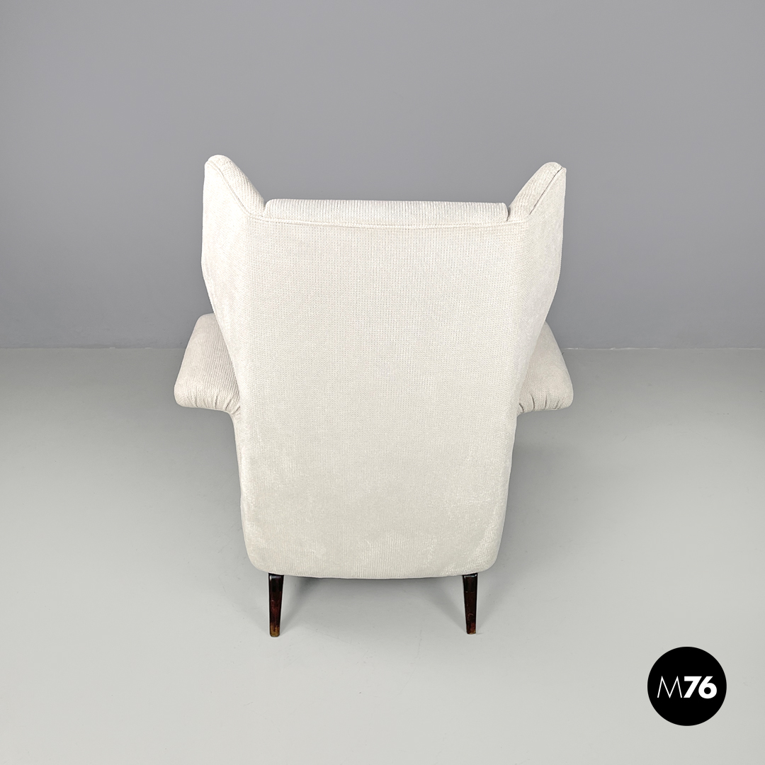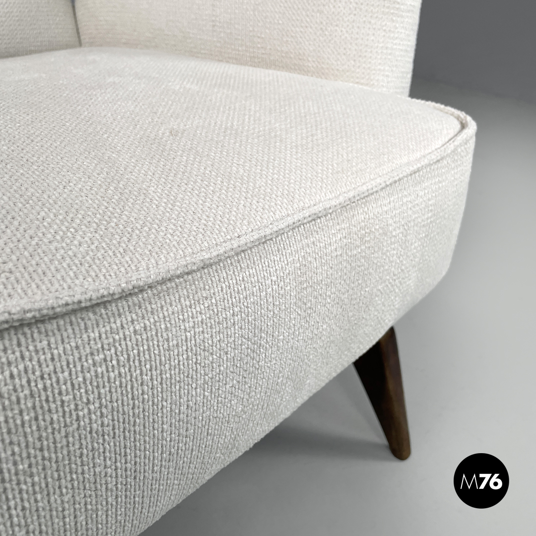 Poltrona in tessuto bianco e legno, 1950 ca.
