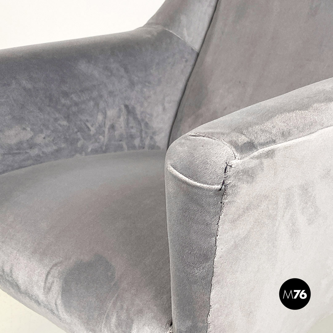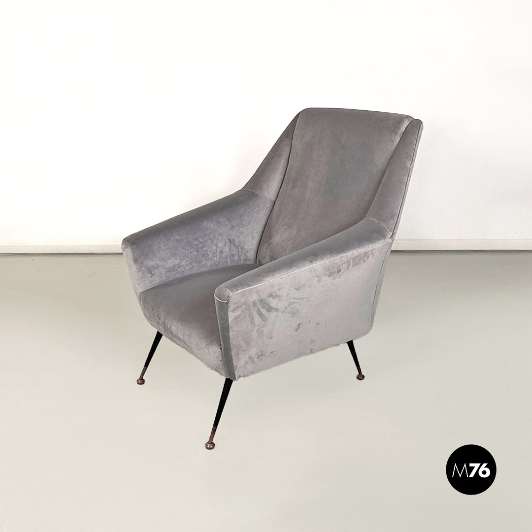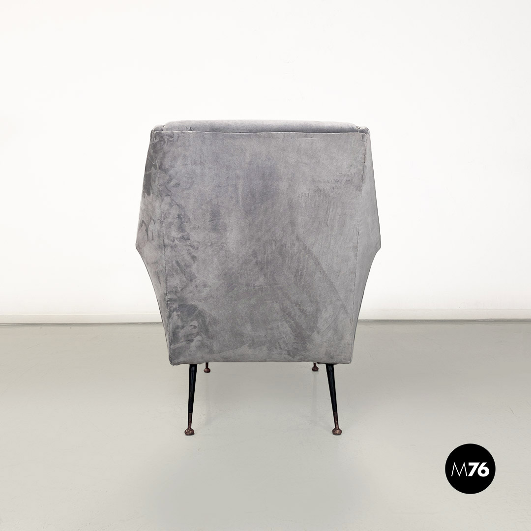 Poltrona in velluto grigio e metallo, 1960 ca.