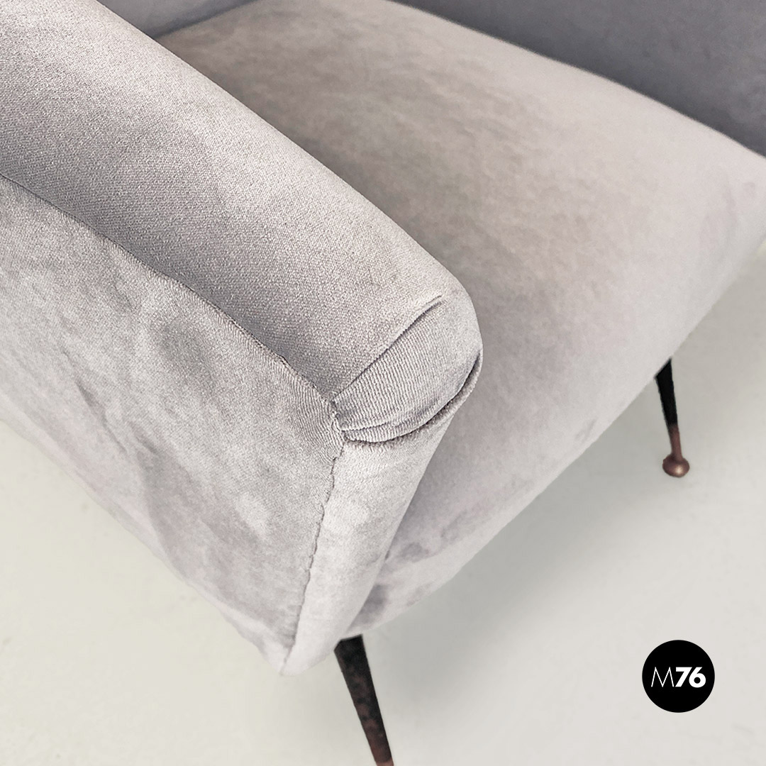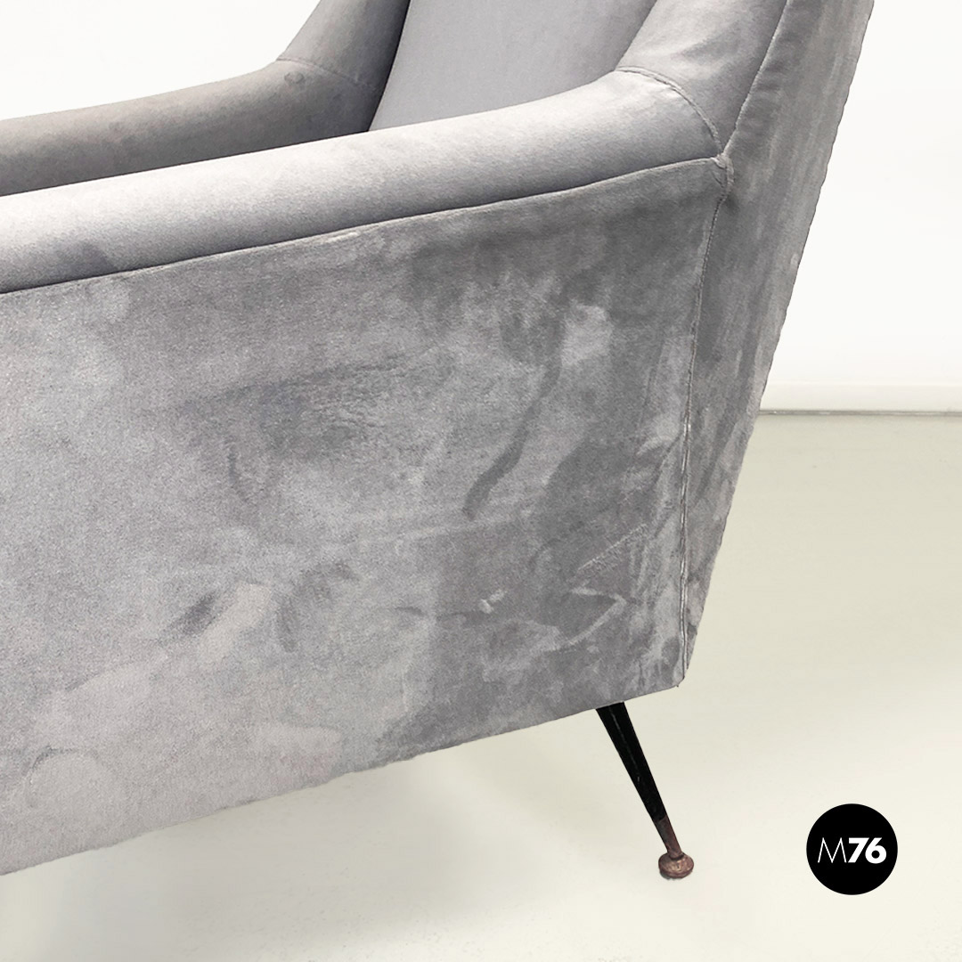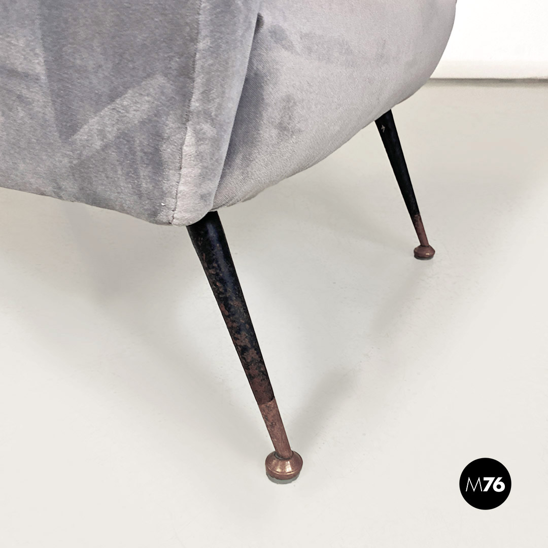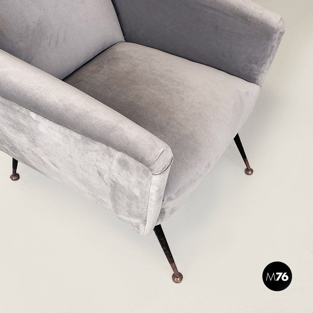 Poltrona in velluto grigio e metallo, 1960 ca.