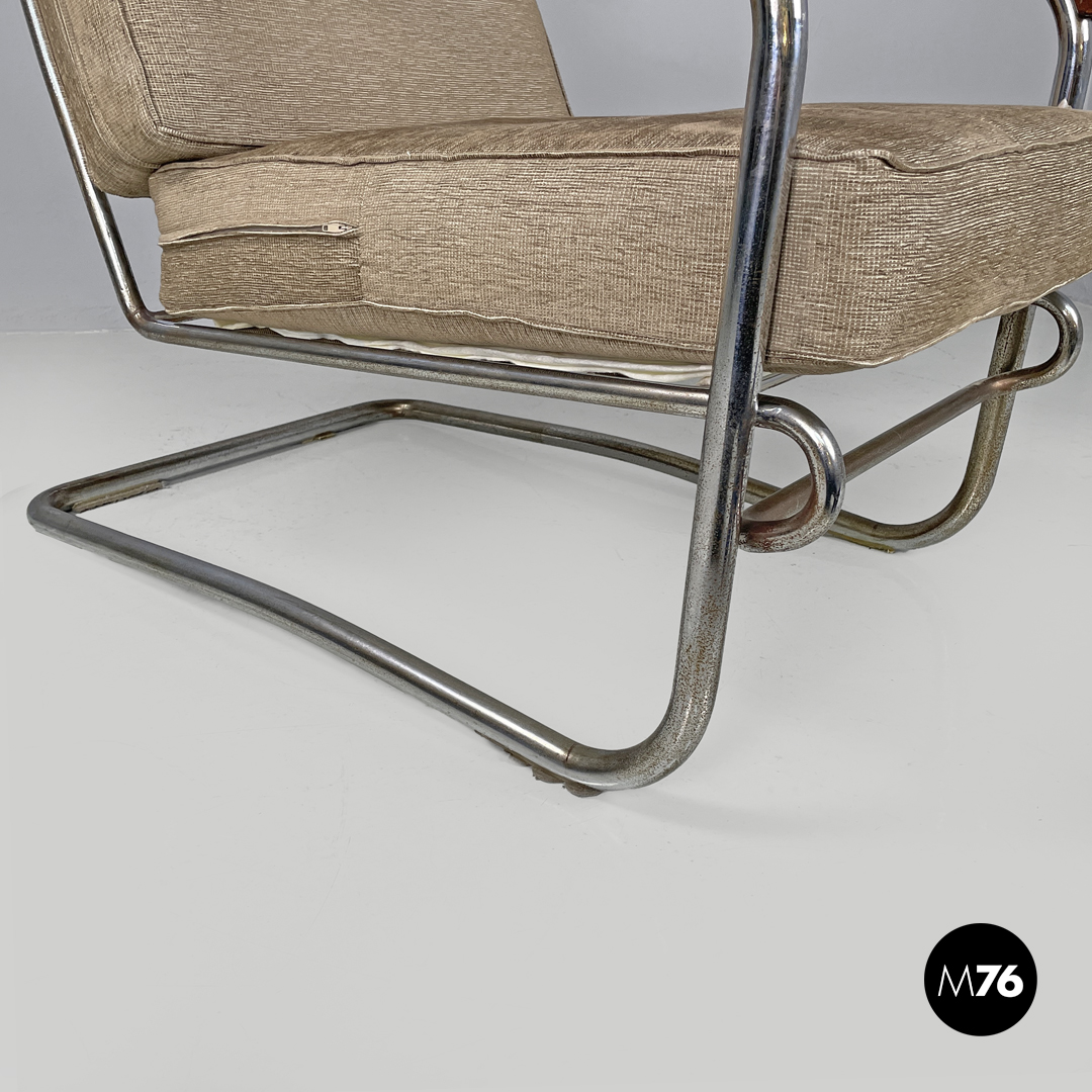 Poltrona in tessuto marrone chiaro e metallo cromato, 1940 ca.