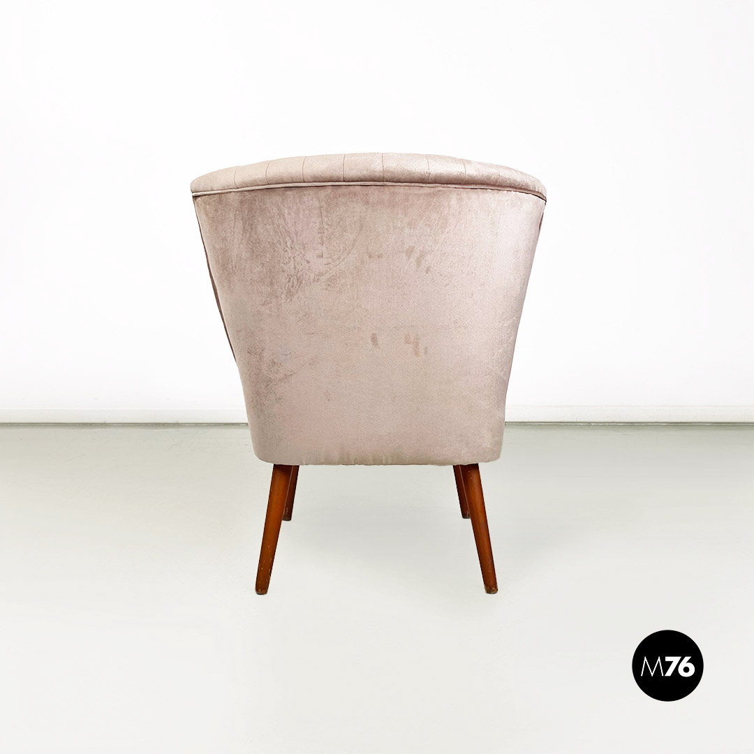 Poltrona in velluto rosa pastello e legno, 1960 ca.