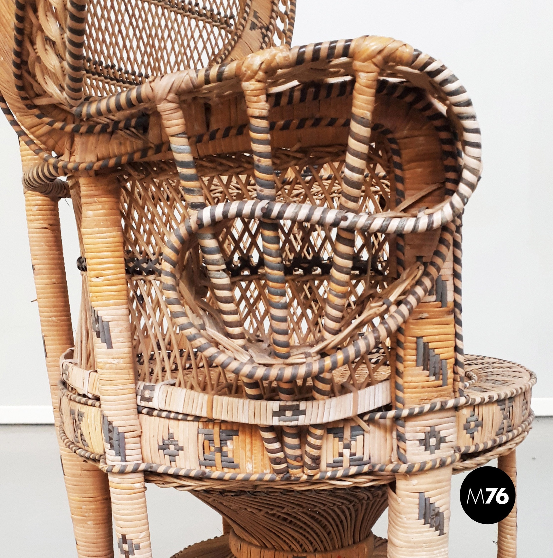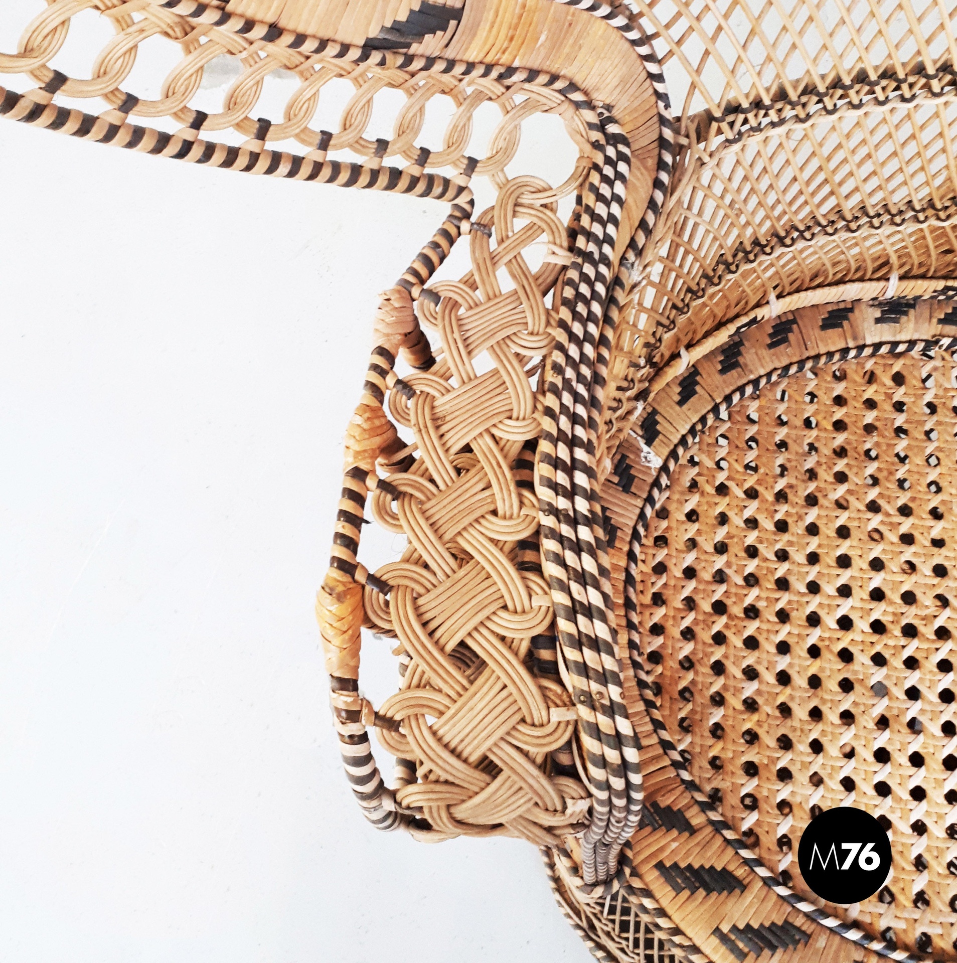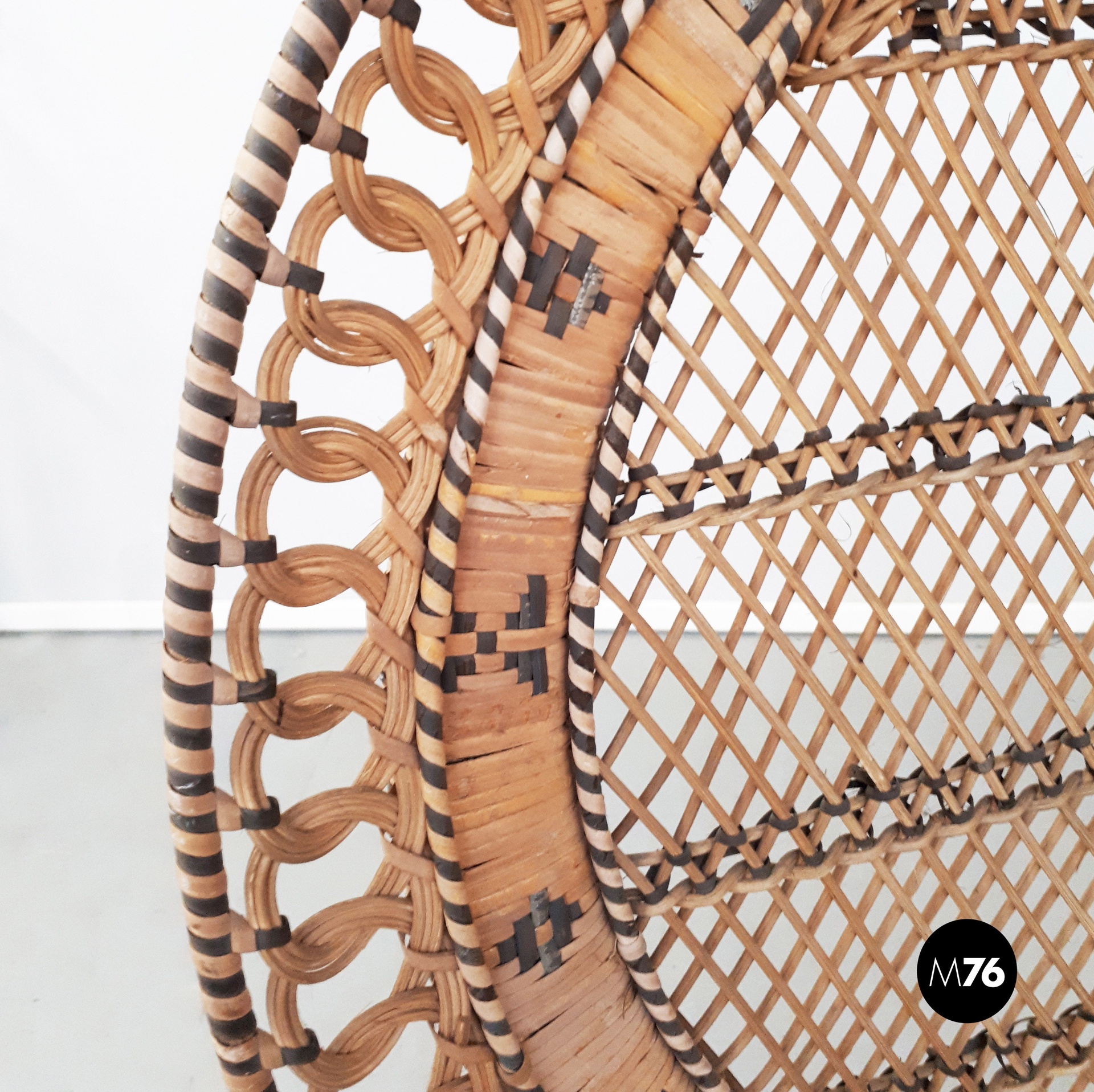 Poltrona Pavone in rattan, 1970 ca.